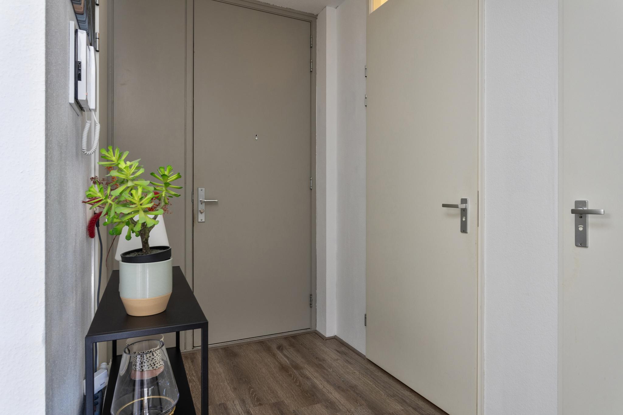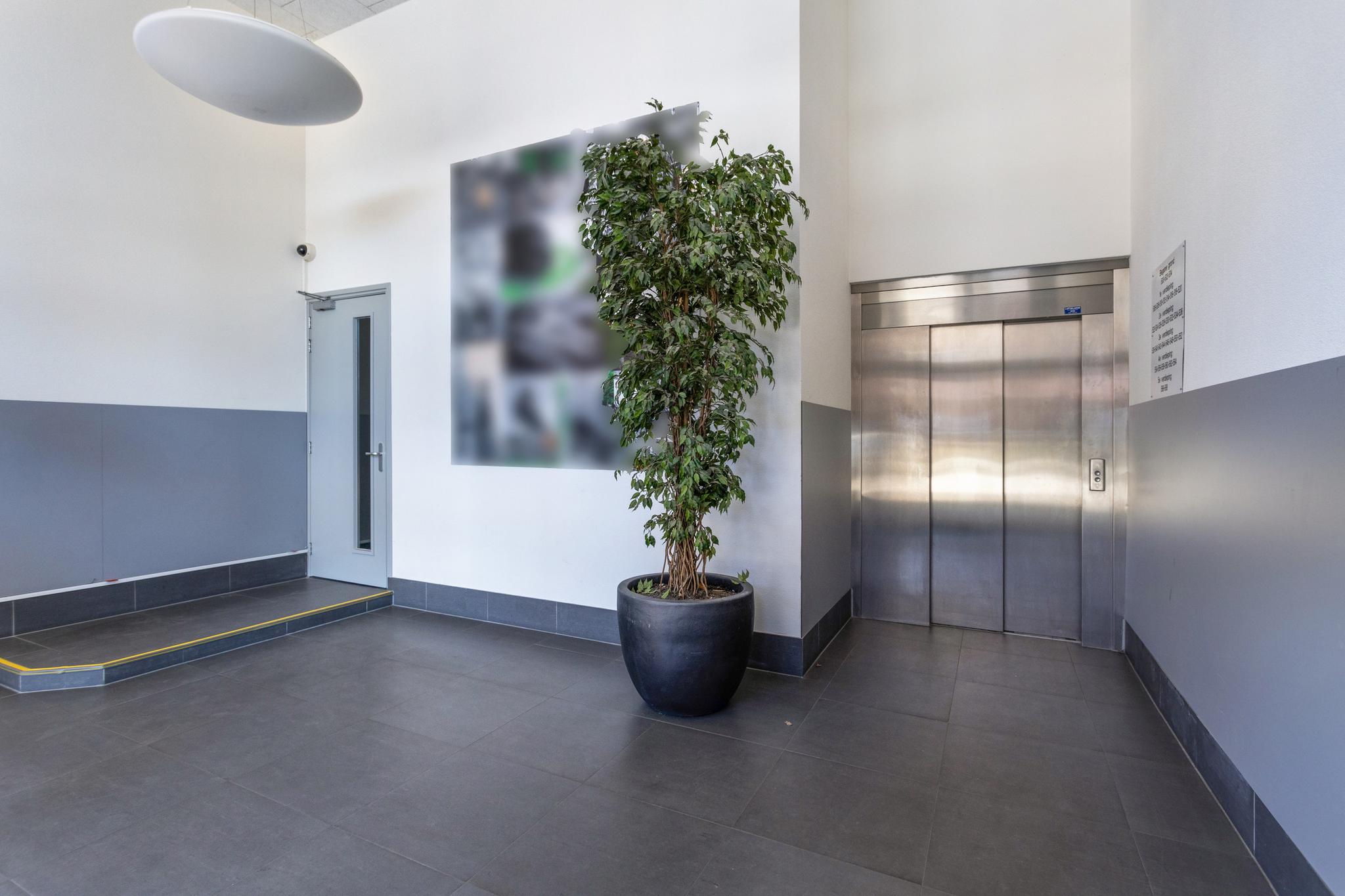 We komen het appartementencomplex binnen via het gezamenlijke entree. Hier bevindt zich het bellentableau met een videofooninstallatie en de brievenbussen. Vanuit deze centrale hal hebben we toegang tot het trappenhuis en de liften. Vanuit hier kunnen we de kelder bereiken alwaar zich een berging bevinden. De centrale hal is royaal en middels de lift zijn de verdiepingen te bereiken.