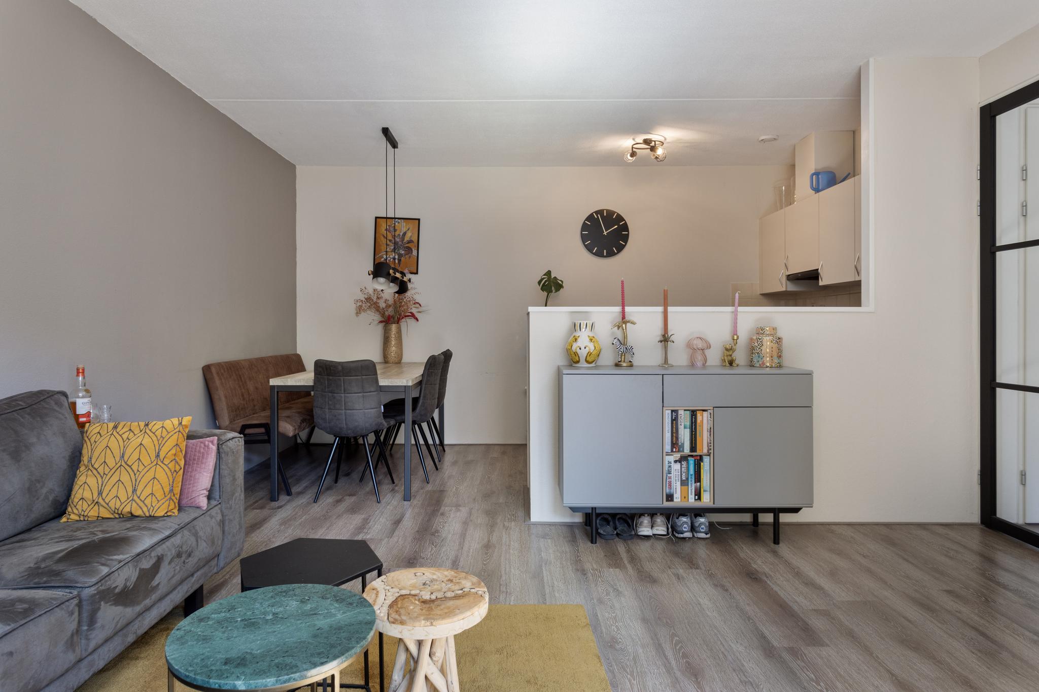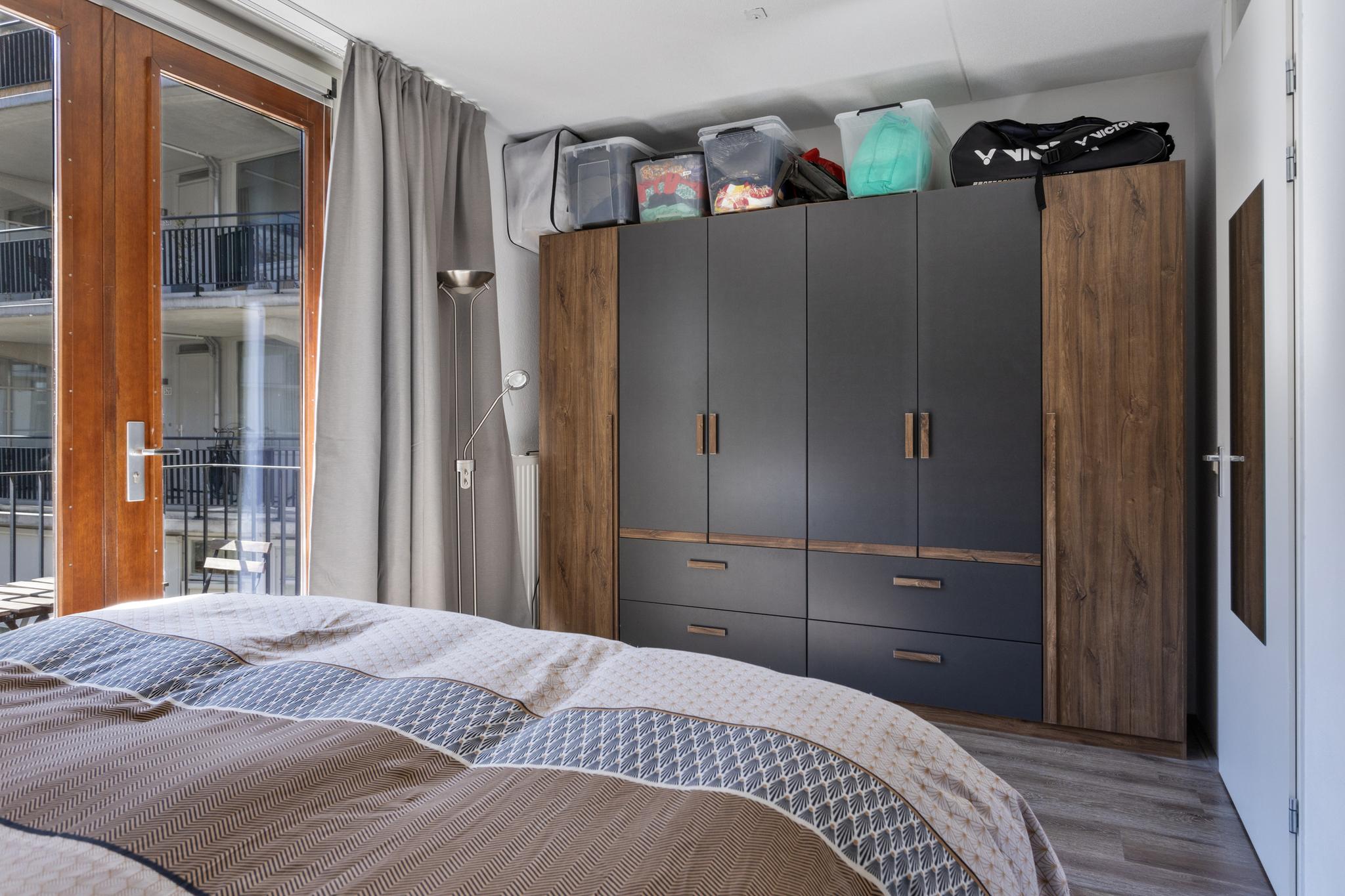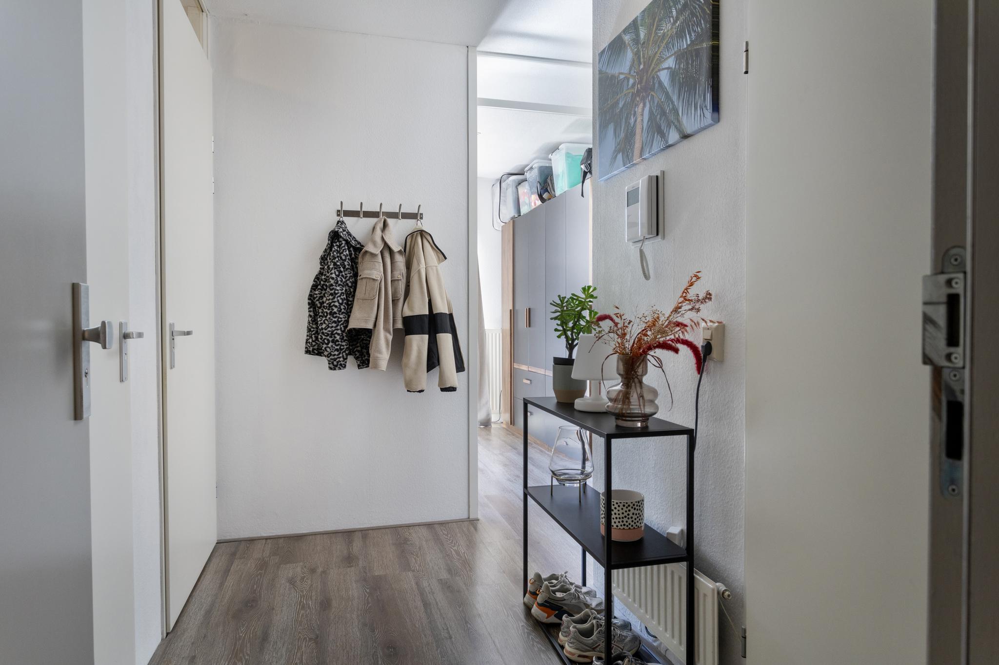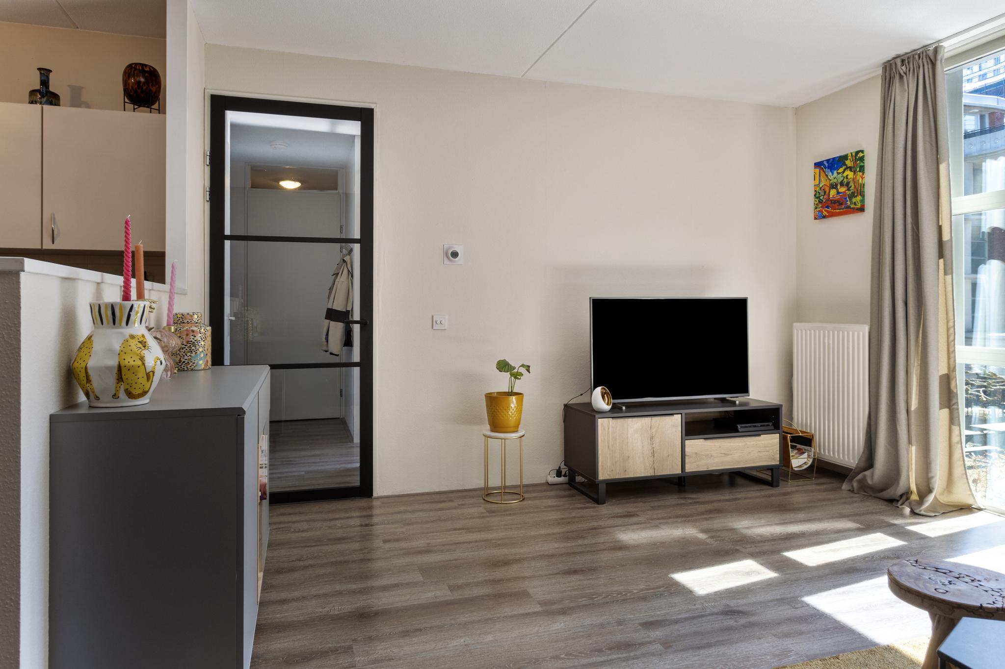 Het appartement betreft een zeer goed en modern afgewerkt 2-kamerappartement. De totale woonoppervlakte bedraagt circa 59 m2 en een balkon van circa 3 m2. Achter de voordeur komen we allereerst in de hal met meterkast, toilet met fonteintje en berging met de aansluitingen ten behoeve van de wasapparatuur. Aan het einde van de hal is de woonkamer gelegen. Vanuit de woonkamer kunnen we het balkon bereiken. De open keuken beschikt over een inductie kookplaat en afzuigkap.