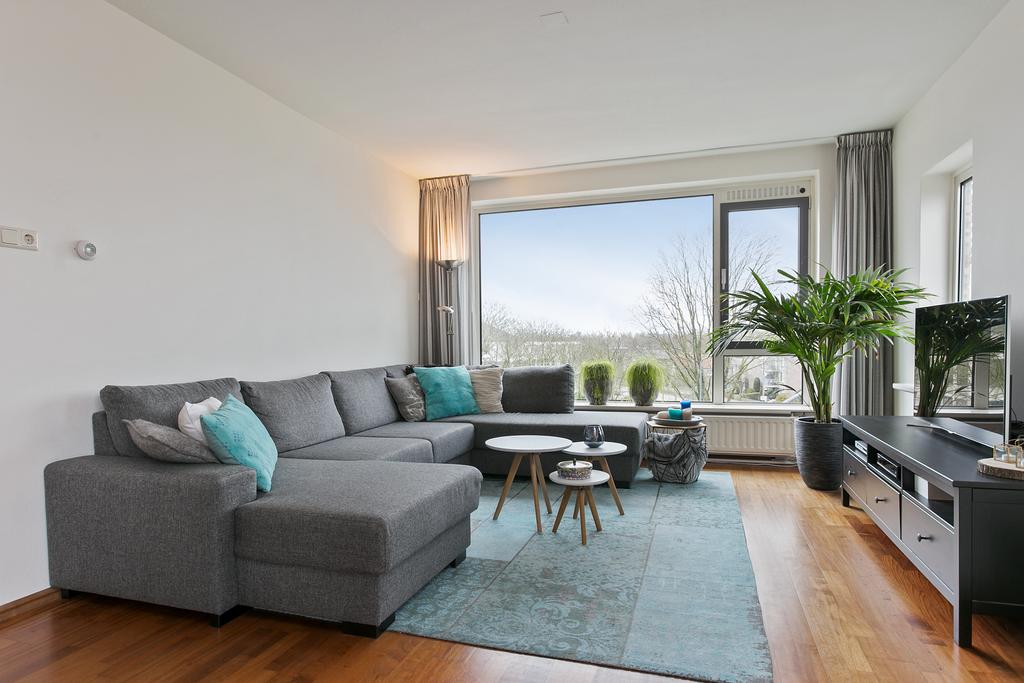 Hal/entree met parketvloer doorgelegd in de gang, woonkamer en slaapkamers, meterkast, vernieuwde toiletruimte en toegang tot 2 slaapkamers, een royale badkamer (voorheen slaapkamer), dichte keuken en een riante woonkamer. Deze lichte woonkamer is maar liefst 34 m² groot en biedt ruim plaats aan een riante zithoek en eethoek. Er is door de ligging op de derde verdieping een fantastisch uitzicht door de grote raampartijen. De badkamer is ruim van afmeting en beschikt over een ligbad, douchecabine met thermostaatkraan en wastafelmeubel. Tevens bevinden zich hier de aansluitpunten voor de wasapparatuur.