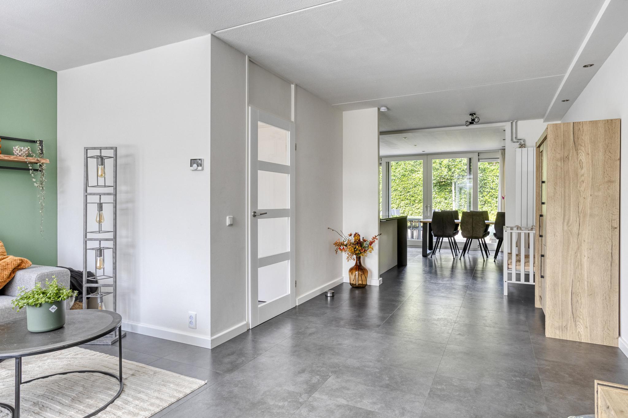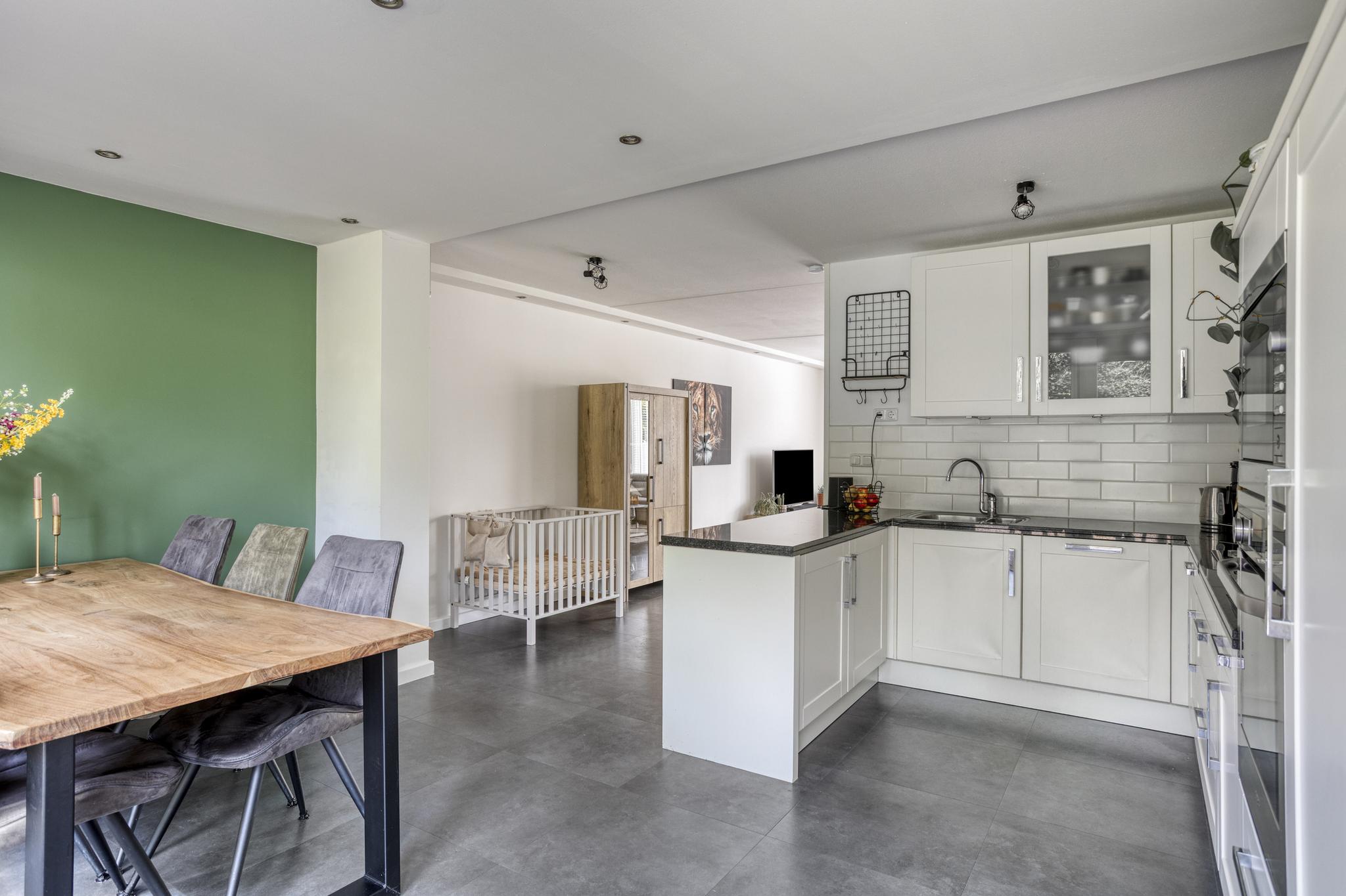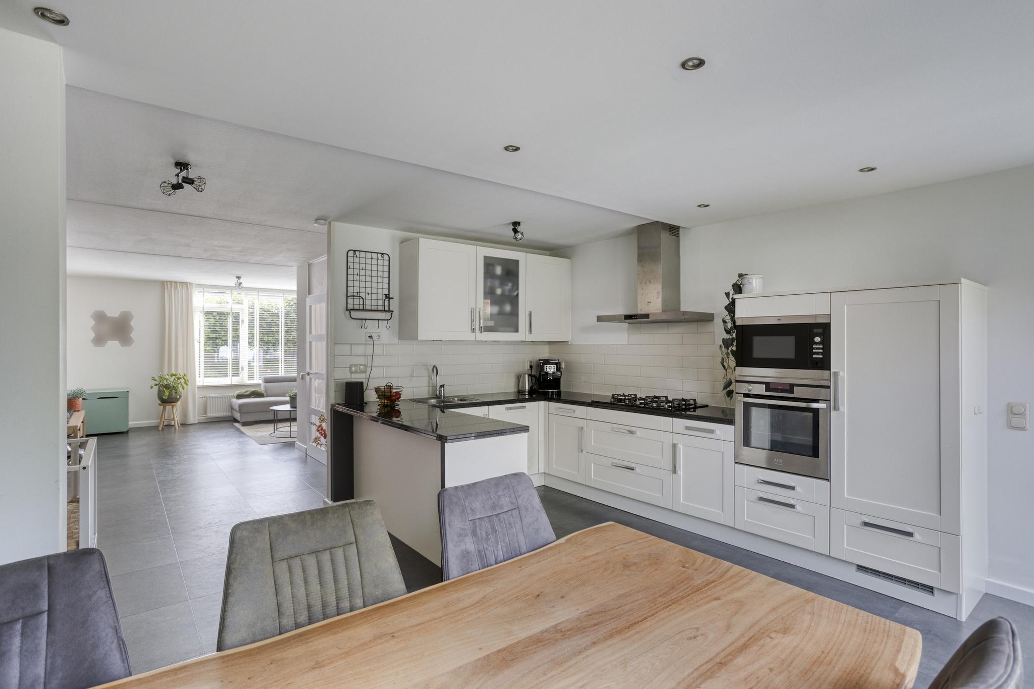Bij aankomst parkeer je de auto moeiteloos op de eigen oprit, geen stress met zoeken naar een plekje. Via de voordeur stap je binnen in de nette entreehal waar je toegang hebt tot de meterkast, het toilet, de trap naar de eerste verdieping en natuurlijk de woonkamer. De woonkamer is ruim en ingedeeld in een comfortabel zitgedeelte aan de voorzijde en een woonkeuken aan de achterzijde. Dankzij de grote raampartijen komt er volop daglicht naar binnen wat zorgt voor een open en uitnodigende sfeer die meteen prettig aanvoelt. In de woonkeuken is er genoeg ruimte voor een royale eettafel om met het hele gezin aan te dineren. De keuken is voorzien van gaskookplaat, afzuigkap, oven, magnetron, koel-vriescombinatie en vaatwasser. Vanuit de woonkeuken leiden dubbele schuifdeuren je direct naar de zonnige achtertuin. Heerlijk op warme dagen wanneer binnen en buiten naadloos in elkaar overlopen. Aangrenzend aan de keuken ligt nog een praktische bijkeuken met aansluitingen voor wasmachine en wasdroger. Hier heb je ook toegang tot zowel de tuin als de garage, ideaal voor extra gemak en opbergruimte.