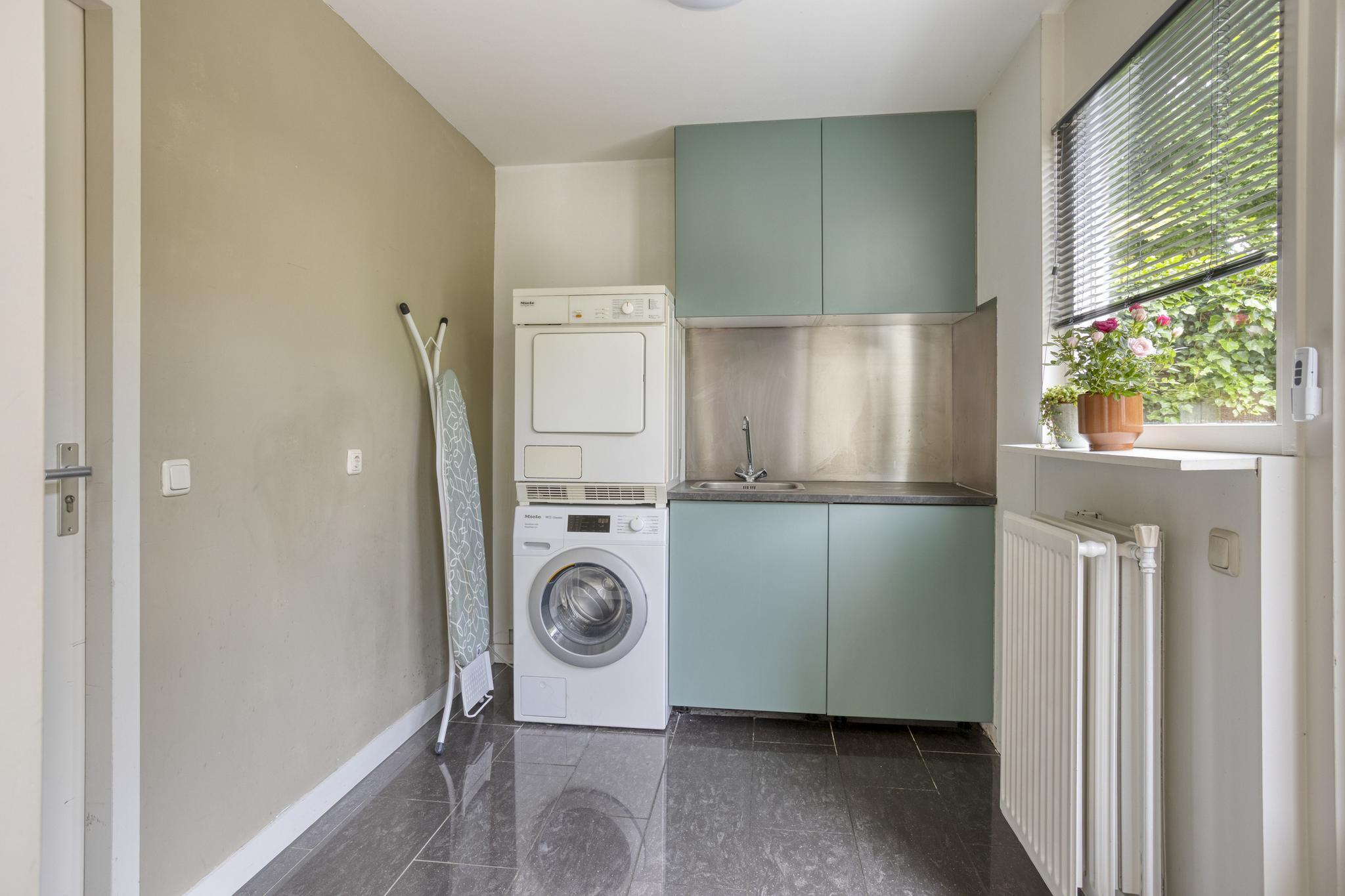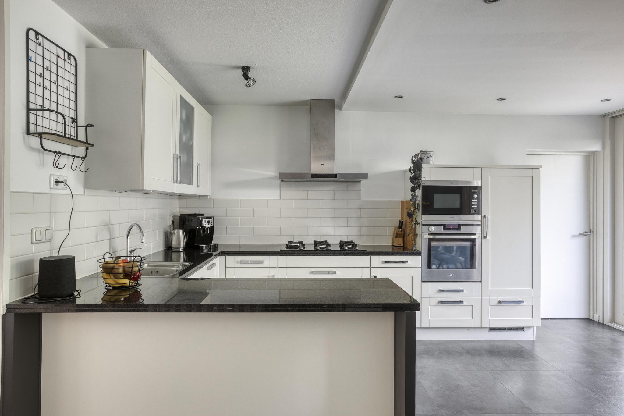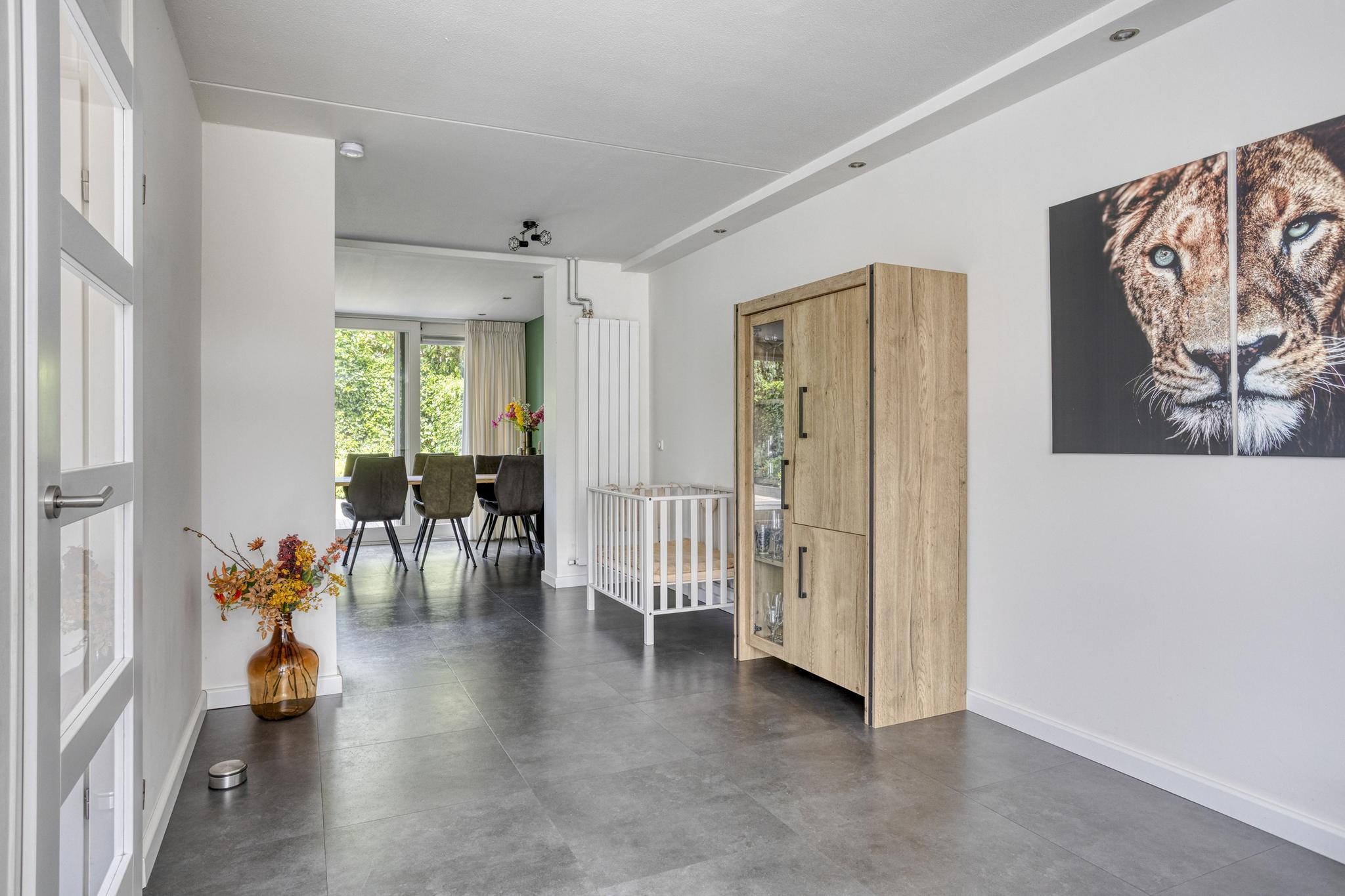 Bij aankomst parkeer je de auto moeiteloos op de eigen oprit, geen stress met zoeken naar een plekje. Via de voordeur stap je binnen in de nette entreehal waar je toegang hebt tot de meterkast, het toilet, de trap naar de eerste verdieping en natuurlijk de woonkamer. De woonkamer is ruim en ingedeeld in een comfortabel zitgedeelte aan de voorzijde en een woonkeuken aan de achterzijde. Dankzij de grote raampartijen komt er volop daglicht naar binnen wat zorgt voor een open en uitnodigende sfeer die meteen prettig aanvoelt. In de woonkeuken is er genoeg ruimte voor een royale eettafel om met het hele gezin aan te dineren. De keuken is voorzien van gaskookplaat, afzuigkap, oven, magnetron, koel-vriescombinatie en vaatwasser. Vanuit de woonkeuken leiden dubbele schuifdeuren je direct naar de zonnige achtertuin. Heerlijk op warme dagen wanneer binnen en buiten naadloos in elkaar overlopen. Aangrenzend aan de keuken ligt nog een praktische bijkeuken met aansluitingen voor wasmachine en wasdroger. Hier heb je ook toegang tot zowel de tuin als de garage, ideaal voor extra gemak en opbergruimte.