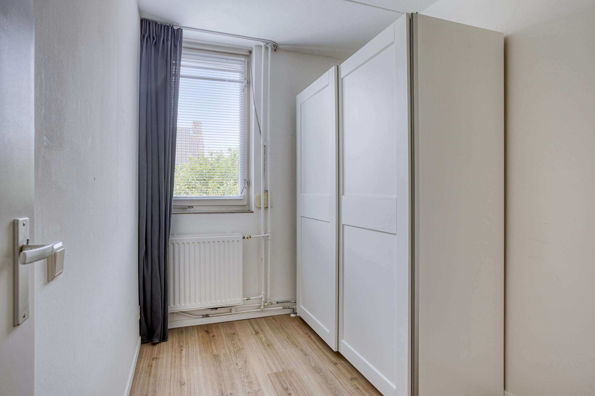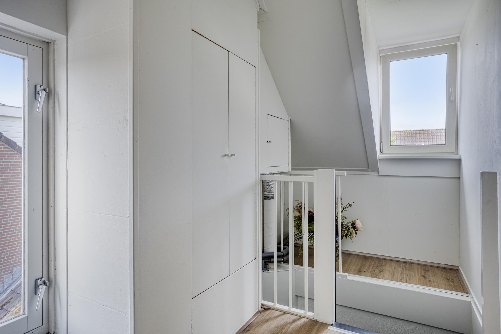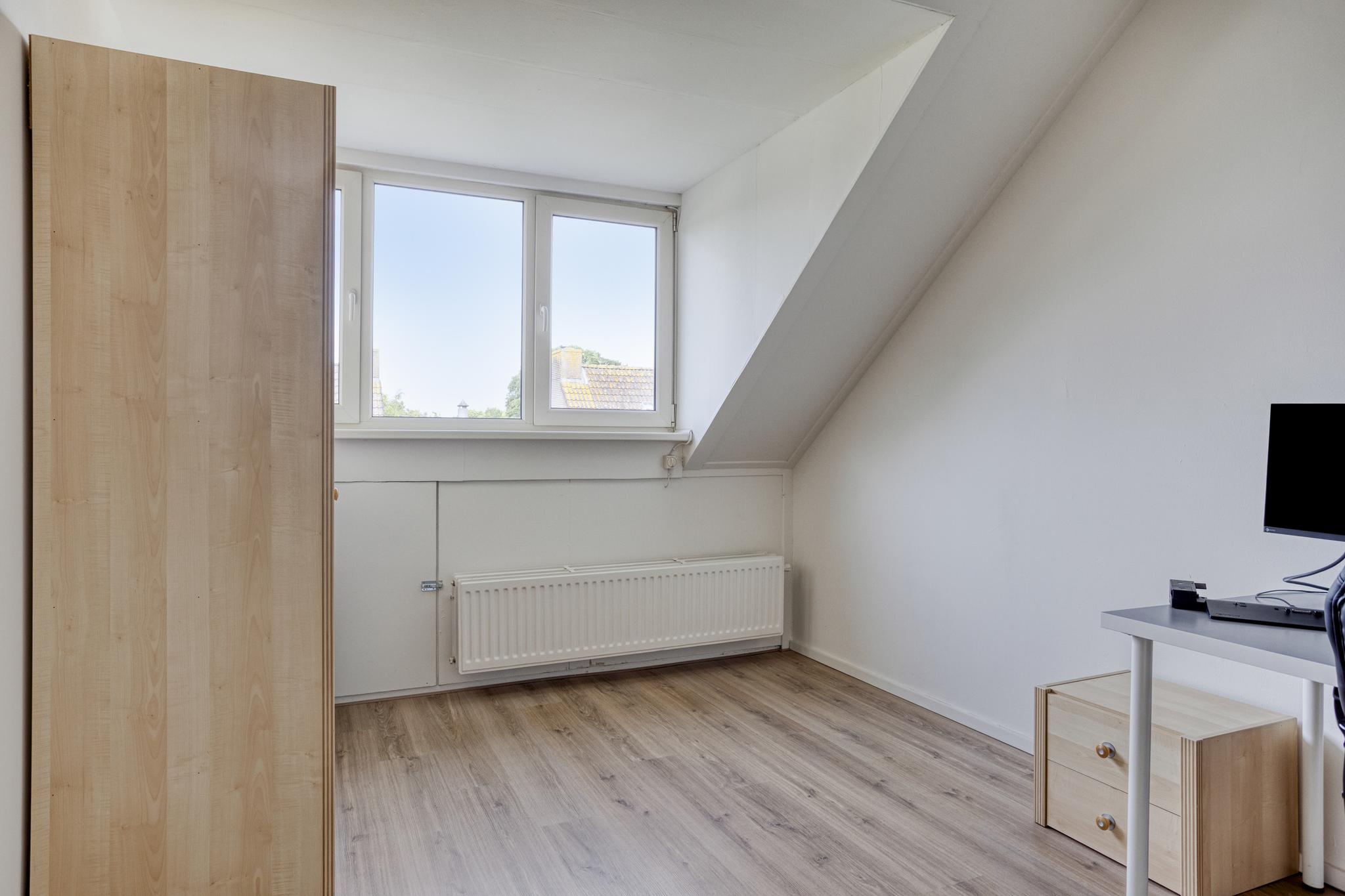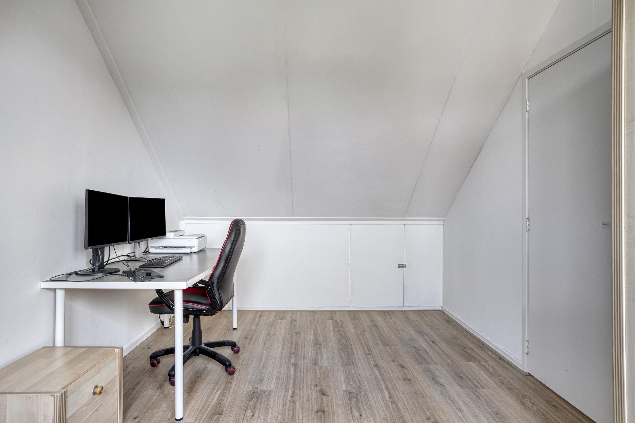 De tweede verdieping bereik je via de vaste trap. Boven kom je uit op de overloop waar de cv-ketel netjes in een kast is weggewerkt waardoor die uit het zicht is maar toch goed bereikbaar. De vierde slaapkamer die dankzij de dakkapel licht en ruim aanvoelt biedt voldoende plek voor een comfortabel tweepersoonsbed en eventuele andere meubels. Of je nu op zoek bent naar een rustige thuiswerkplek, een fijne logeerkamer of een volwaardige slaapkamer deze kamer biedt alle vrijheid om het in te richten zoals jij dat wilt.