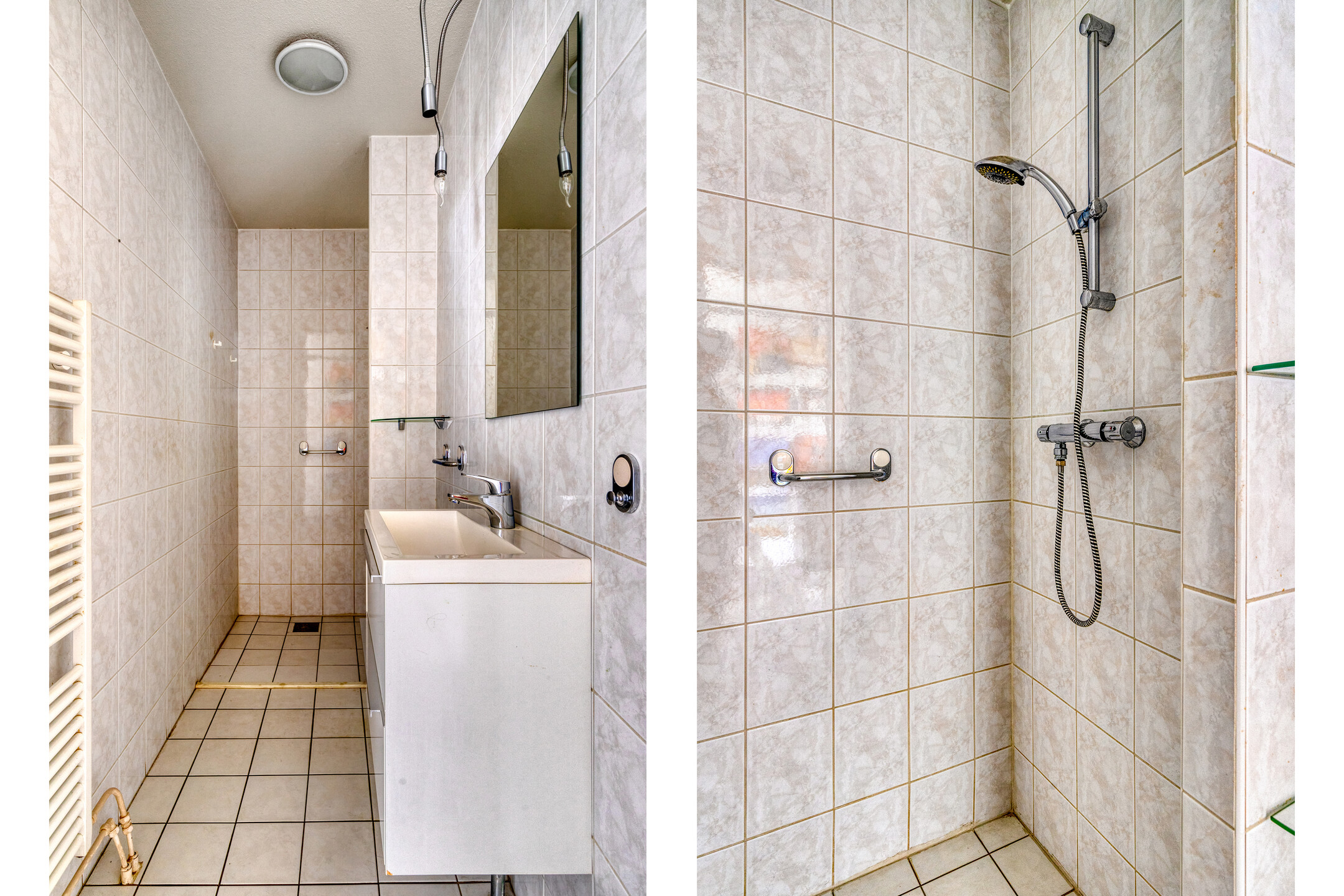 Deze badkamer is ingericht met een ligbad, douche, wastafelmeubel en een toilet. De andere slaapkamer kan gebruik maken van een 2e badkamer met douche en badmeubel. Tenslotte is er nog een gastentoilet.