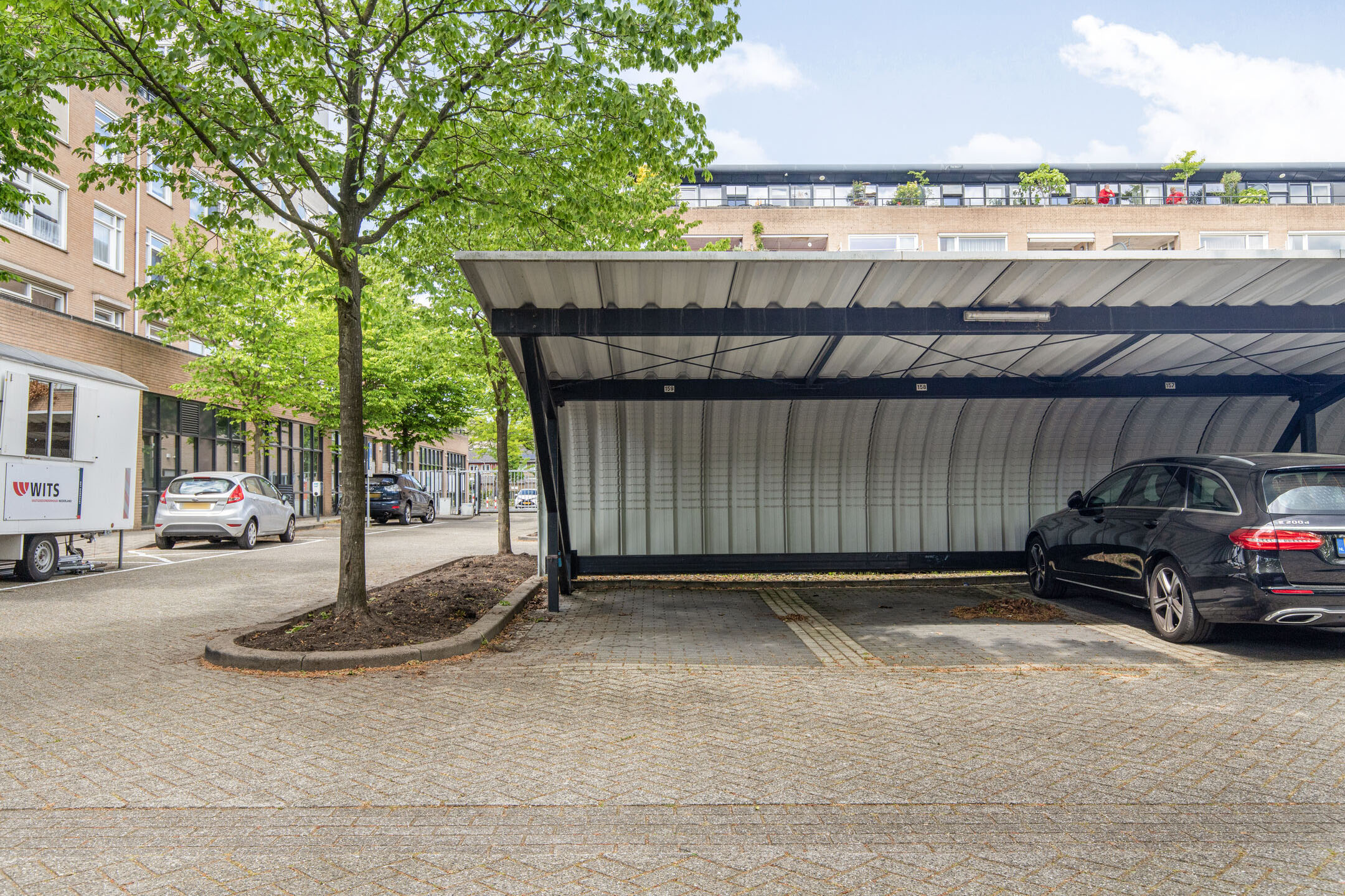 Op de begane grond is de gezamenlijke, nette entree met brievenbussen, automatische deur en videofoon-installatie. Via de lift of trap is er toegang tot het appartement op de 4e verdieping. De carports zijn gelegen aan de achterzijde van het complex, waarvan één vaste parkeerplaats behoort tot het appartement. Het afgesloten terrein is op afstand te openen met afstandbediening. Op het terrein is een elektrische laadpaal aanwezig.
