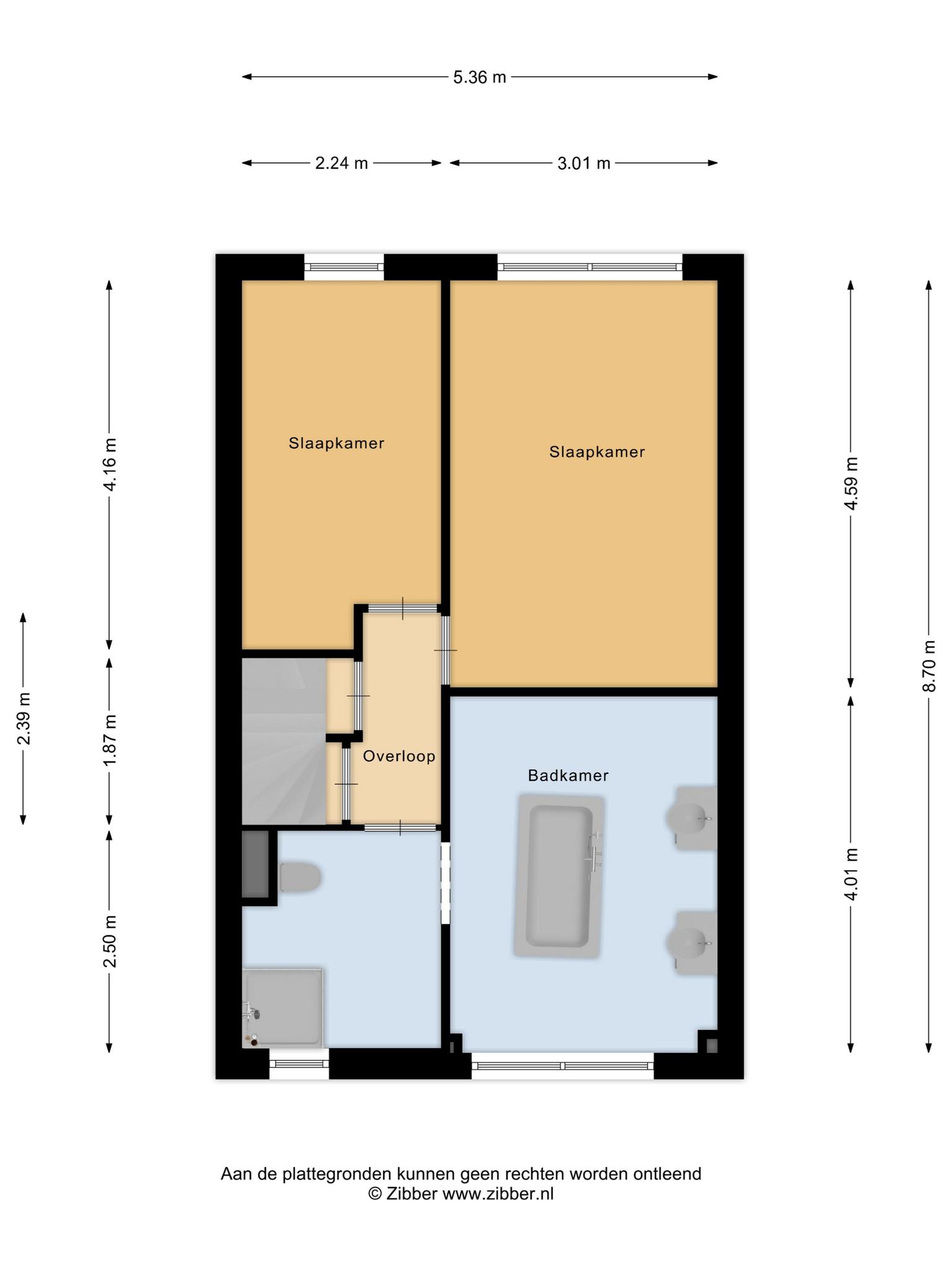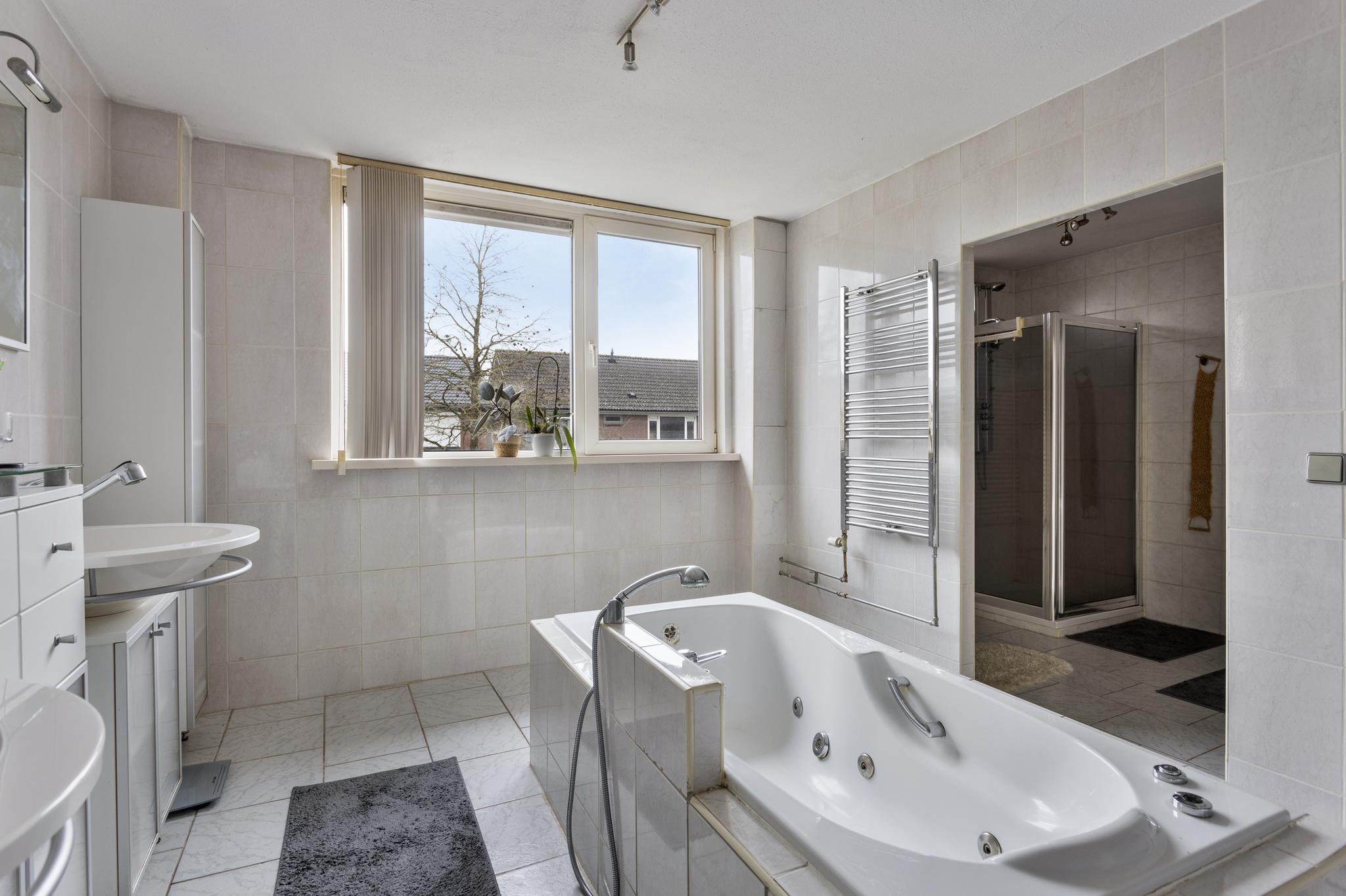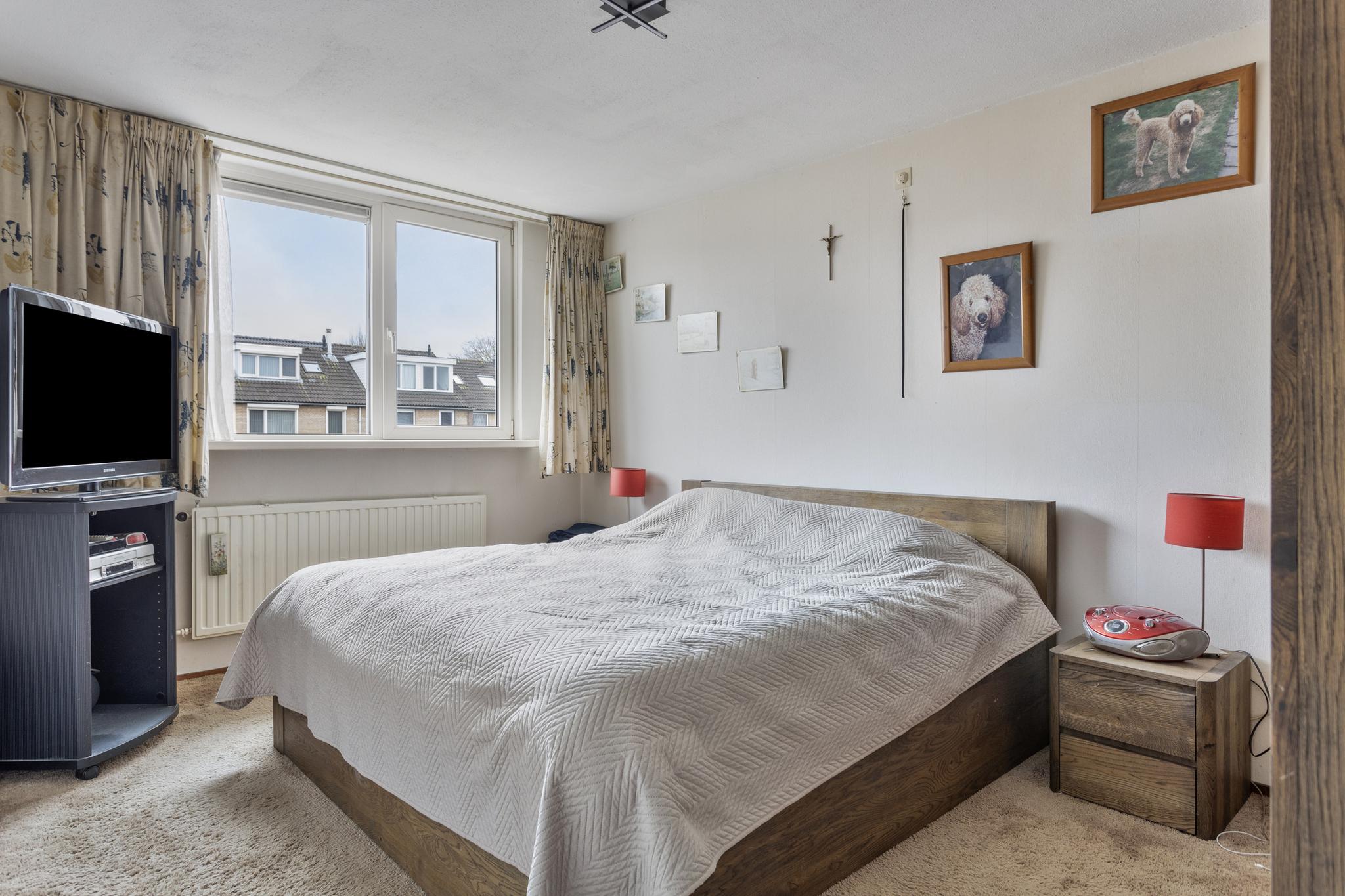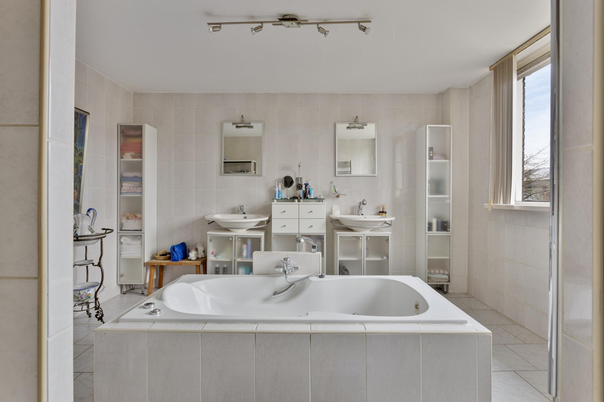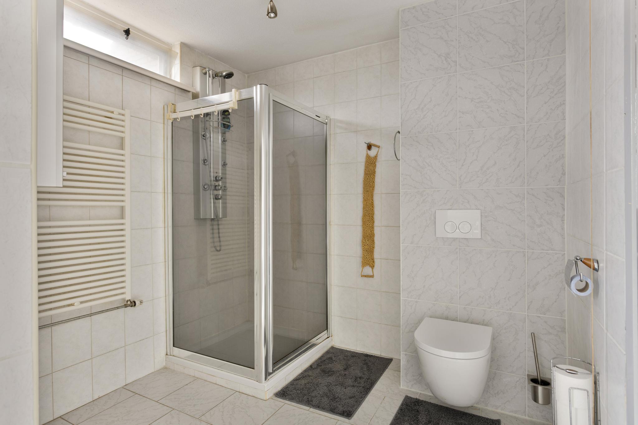 De eerste verdieping is te bereiken via de trap in de woonkamer die je uitkomt op de overloop. Op deze eerste verdieping vind je twee fijne slaapkamers. De ruime hoofdslaapkamer biedt genoeg plek voor een groot tweepersoonsbed en een kast. De tweede slaapkamer is veelzijdig in te richten; ideaal als kantoor, inloopkast of een extra slaapruimte. De grote badkamer is een echt pluspunt, met een douche, ligbad, dubbele wastafel en toilet – perfect om te ontspannen of je dag te beginnen.