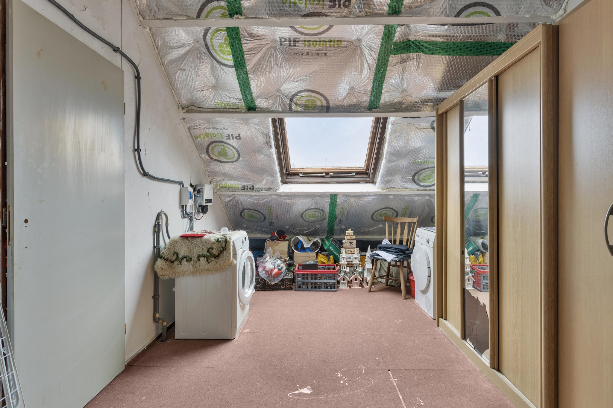 De tweede verdieping is bereikbaar via een vaste trap en wordt momenteel gebruikt als bergruimte. Deze ruime verdieping biedt echter volop mogelijkheden om er een tweede slaapkamer van te maken, ideaal voor een extra kinderkamer of werkruimte. Daarnaast vind je hier de wasmachine, wasdroger en CV-ketel. Kortom, een veelzijdige verdieping met veel potentieel!