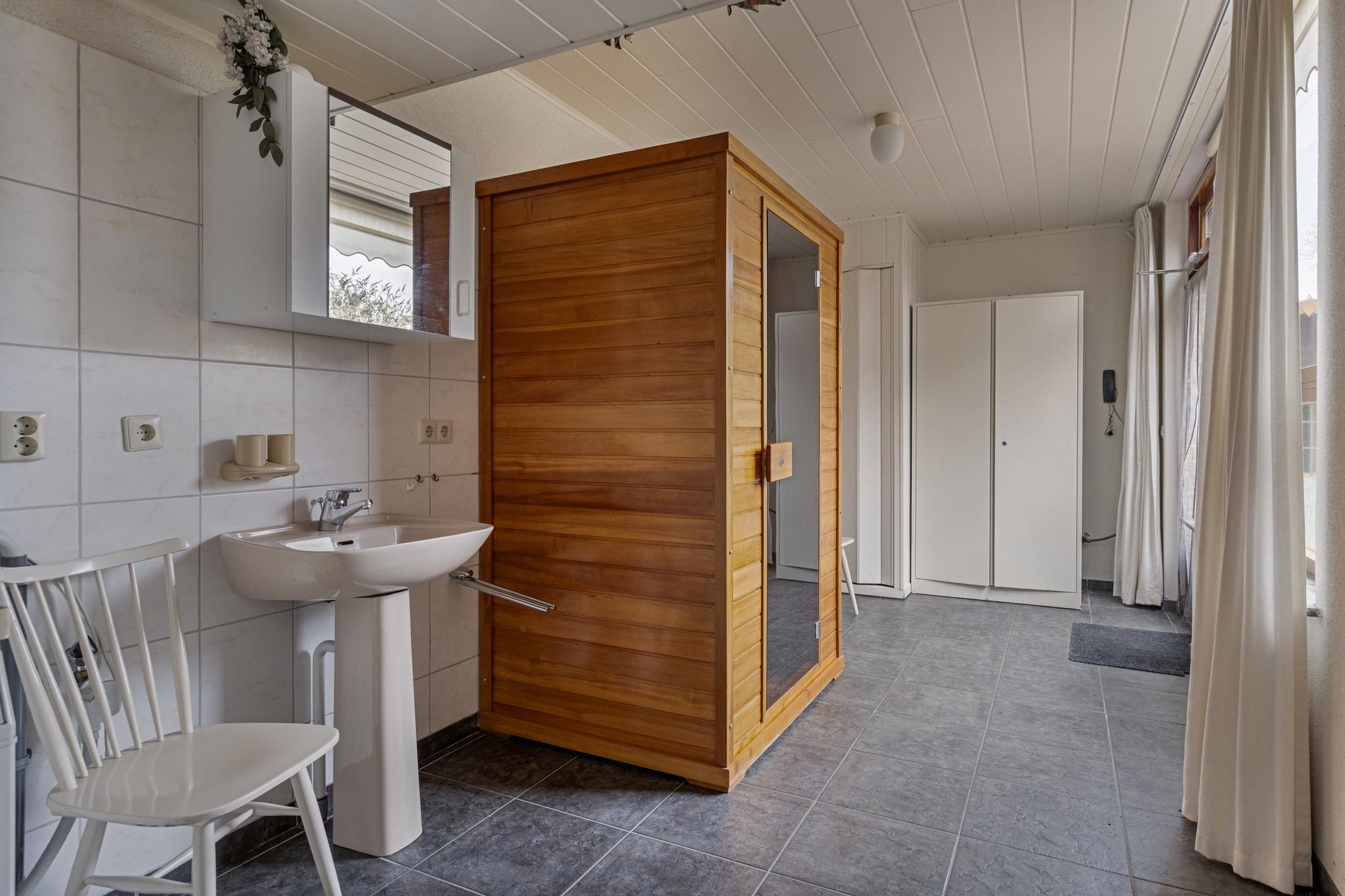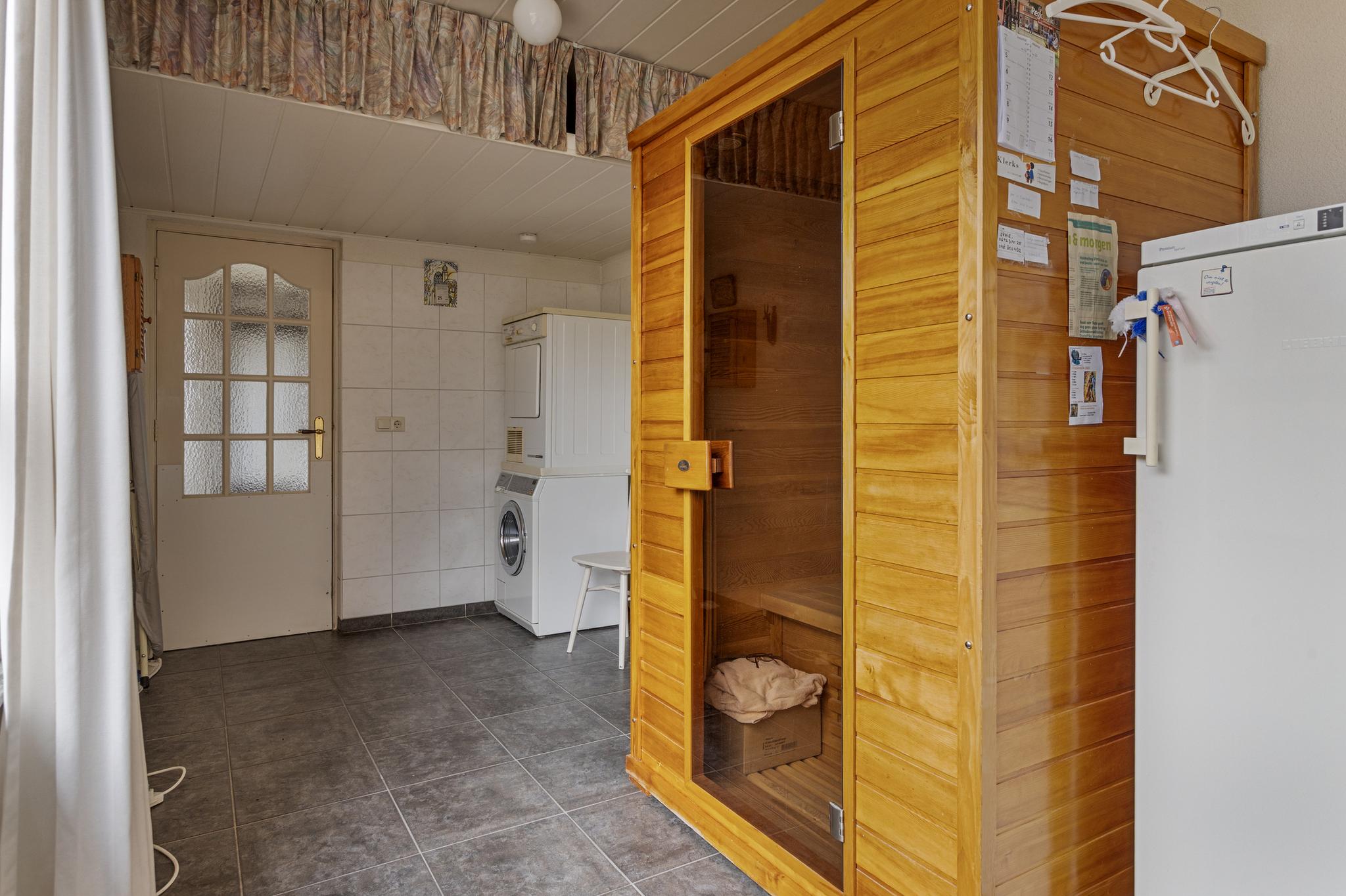 Je betreedt de woning via de entreehal, waar je direct toegang hebt tot de meterkast, het toilet, de trap naar de eerste verdieping en een handige kelderkast onder de trap voor extra opbergruimte. De ruime woonkamer biedt volop mogelijkheden voor een gezellig zitgedeelte en een eettafel, ideaal voor het hele gezin. Dankzij de grote raampartijen komt er veel natuurlijk licht binnen, waardoor de ruimte een lichte en open uitstraling krijgt. De schuifpui in de woonkamer zorgt voor een directe verbinding met de tuin, perfect voor een zomerse ochtend of een avondborrel buiten. Aan de achterzijde van de woning is in 2005 een aanbouw geplaatst, waarin de keuken en bijkeuken zich bevinden. De keuken is voorzien van diverse inbouwapparatuur, terwijl de bijkeuken ruimte biedt voor de wasmachine, wasdroger en de CV-ketel uit 2018, plus een heerlijke infrarood sauna voor extra ontspanning. De bijkeuken is ook nog om te bouwen tot slaapkamer en badkamer, zodat er een levensloopbestendig programma op de begane grond gecreëerd kan worden. Verder is de gehele benedenverdieping voorzien van vloerwarming wat leidt tot comfortabele koelte in de zomer en warmte in de winter.