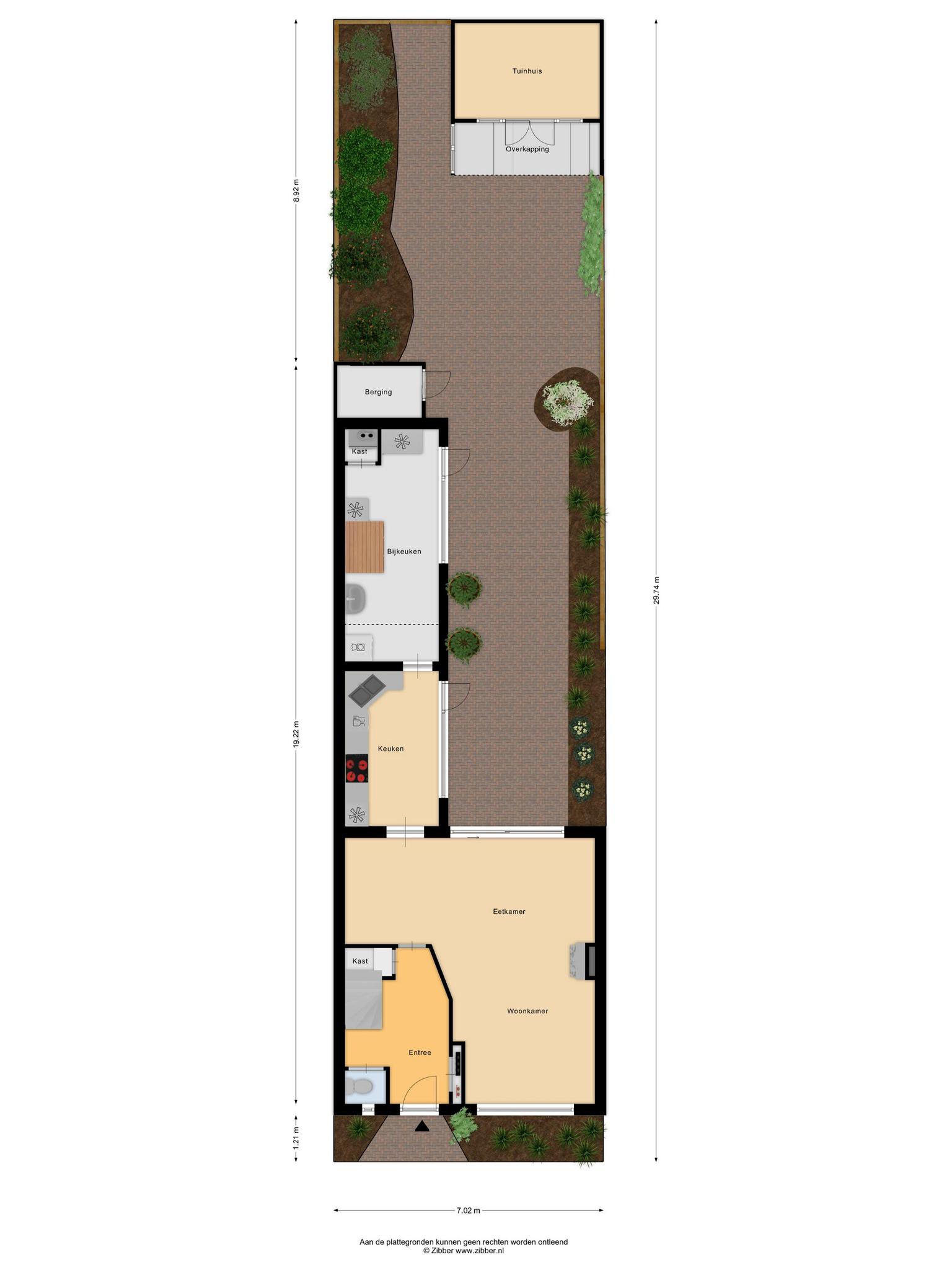 De diepe tuin ligt op het noorden en biedt volop mogelijkheden. Aan de achterzijde van de tuin is een heerlijk zonnig zitgedeelte, perfect om in de zomer te genieten van het buitenleven. Via een achterom is de tuin gemakkelijk bereikbaar, wat extra gemak biedt. In de berging kun je al je gereedschap en fietsen opbergen, terwijl het tuinhuisje aan de achterzijde een fijne extra ruimte biedt voor opslag of een gezellig hoekje. Deze tuin is een fijne plek om te ontspannen en je eigen droomtuin te creëren.