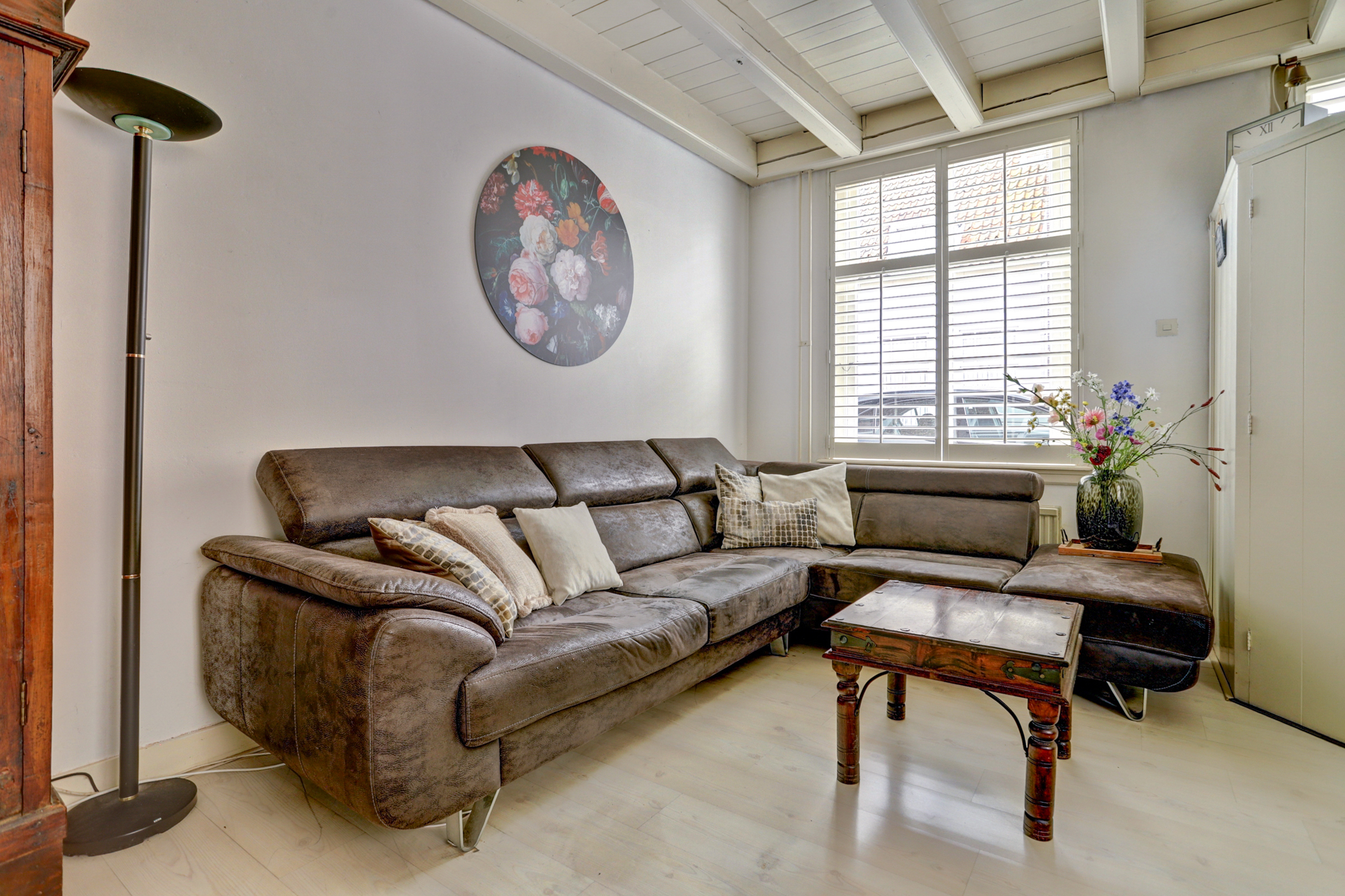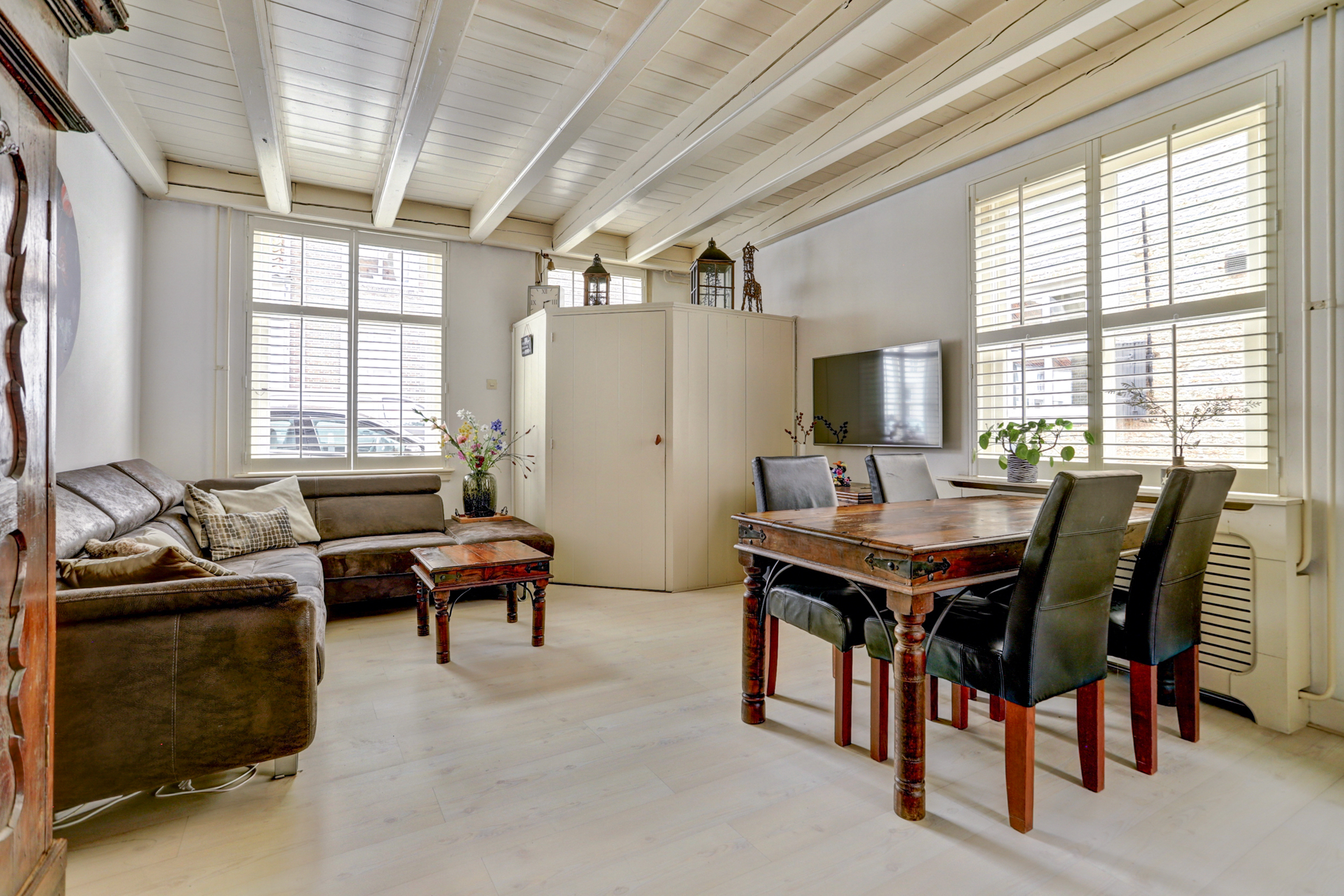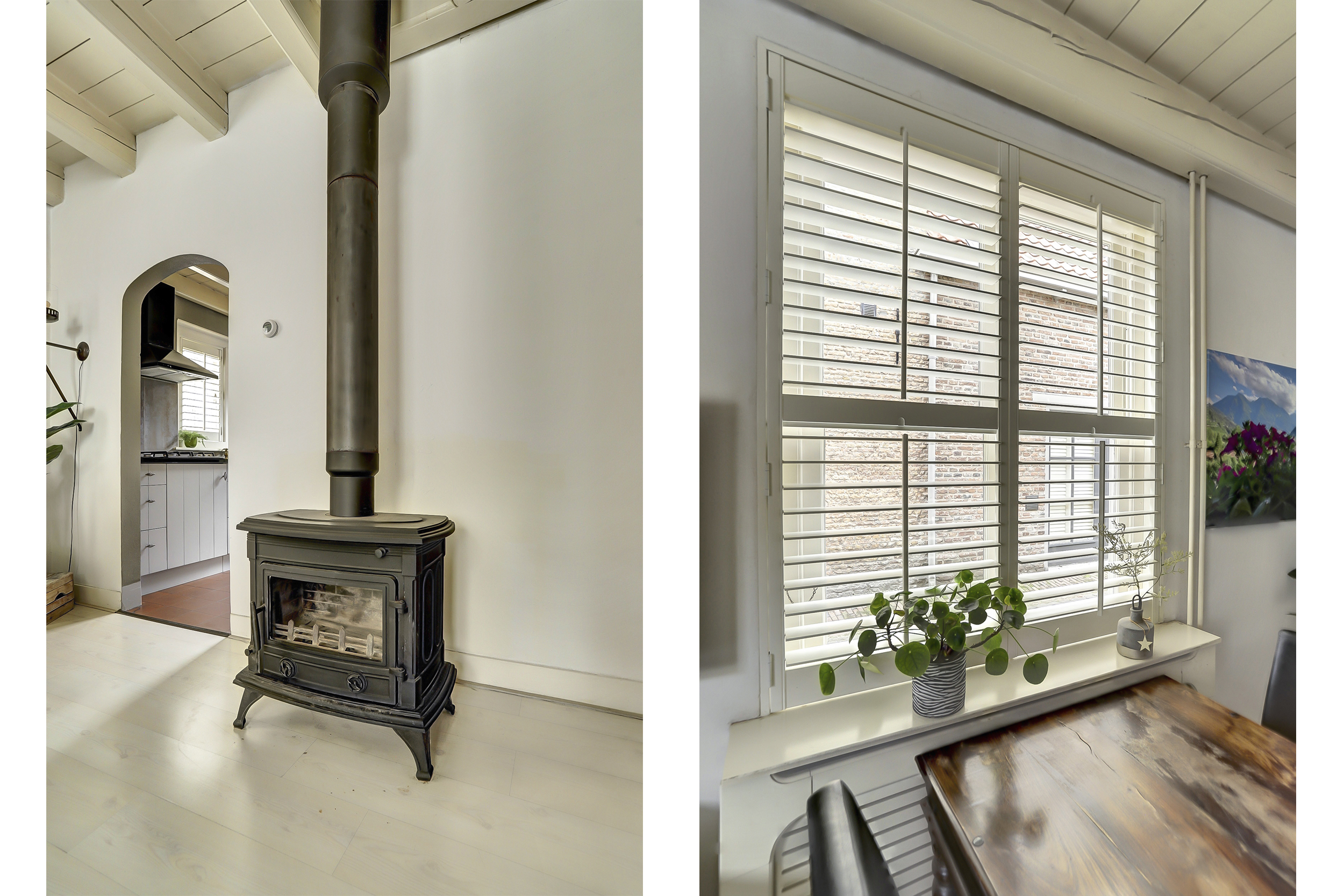 - Houten kozijnen met sfeervolle luiken;