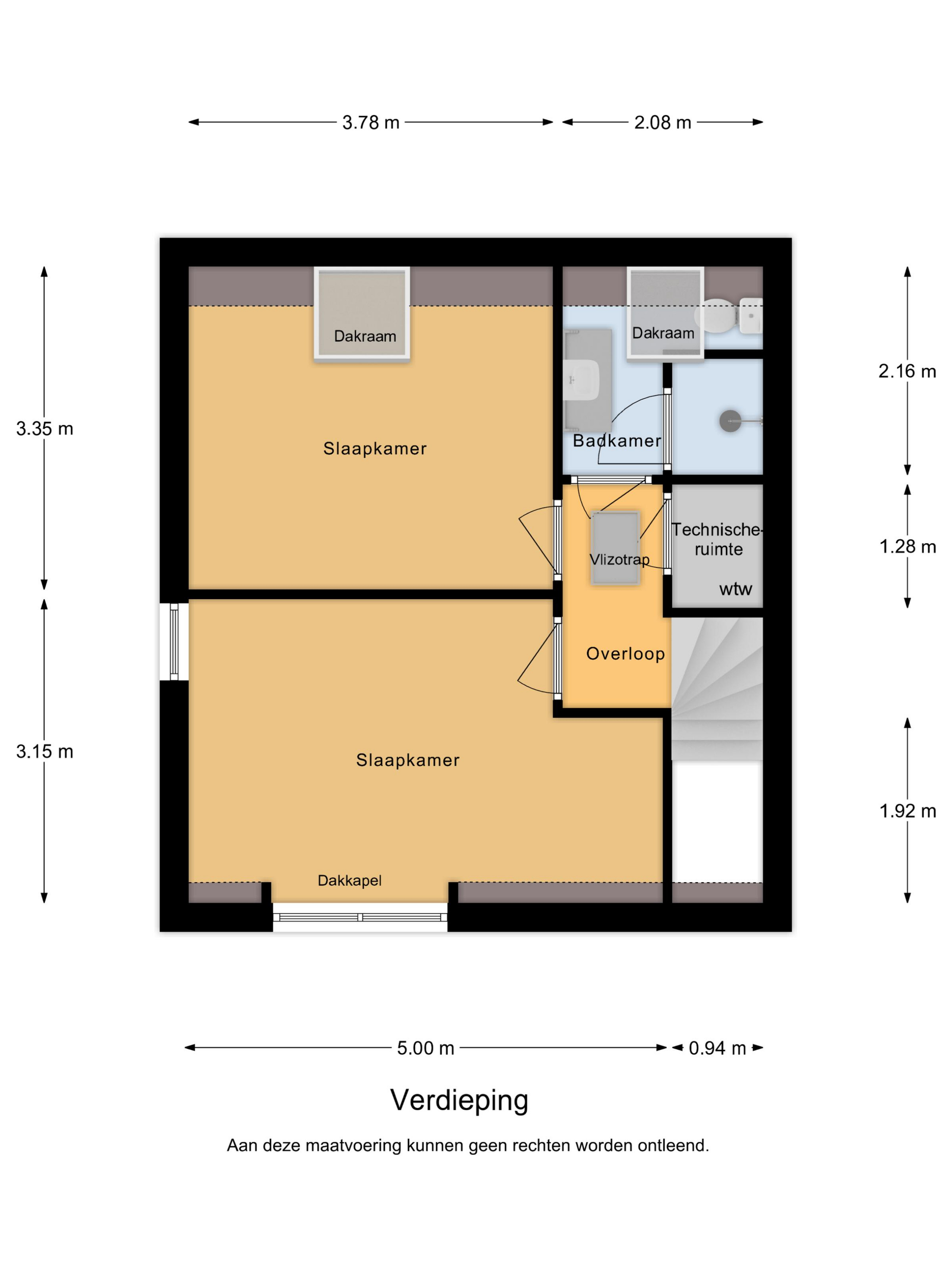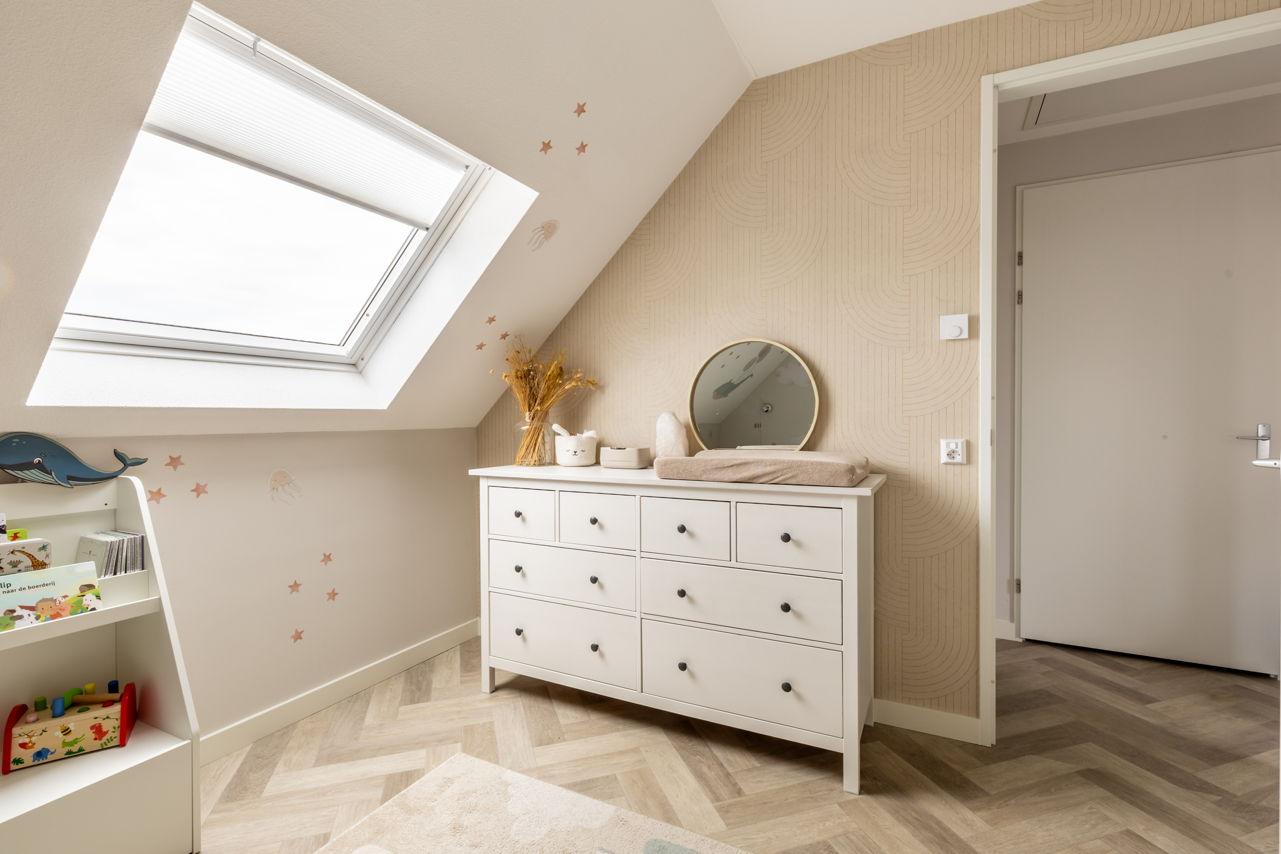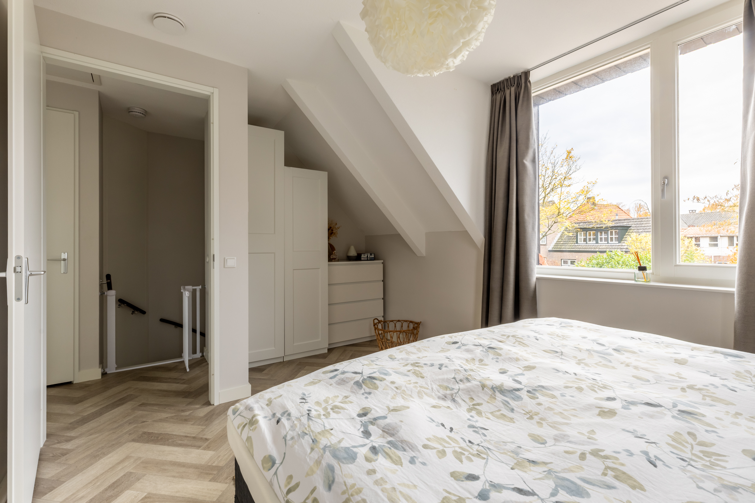 De kamer is praktisch ingedeeld, met ruimte voor een kingsize bed, kasten en een zit- of werkhoekje. Aan de voorzijde bevindt zich de tweede slaapkamer, eveneens ruim en licht. Het grote dakraam laat veel daglicht binnen.