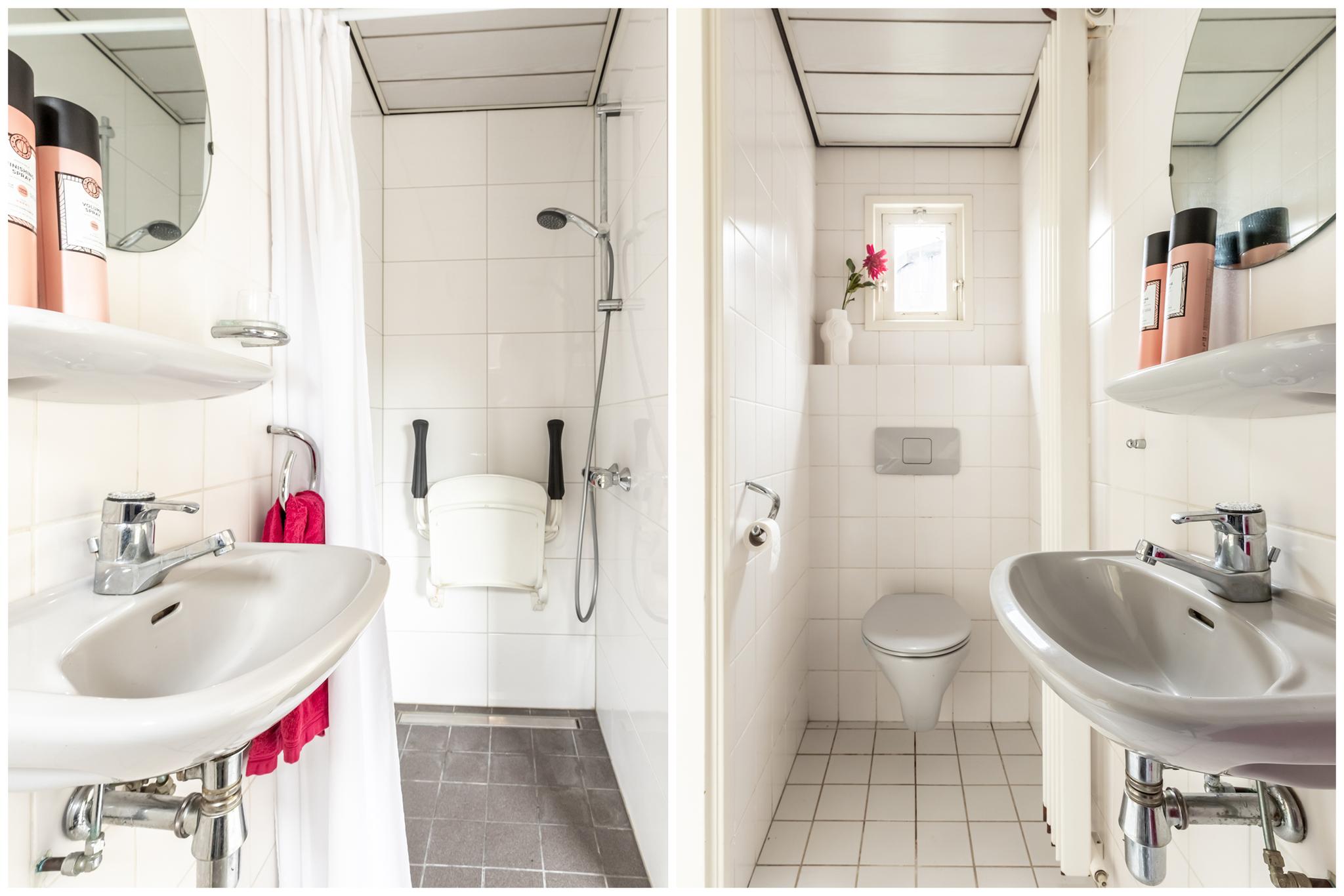 •De badkamer is vanuit de bijkeuken bereikbaar en uitgerust met een inloopdouche, wastafel en een wandtoilet.