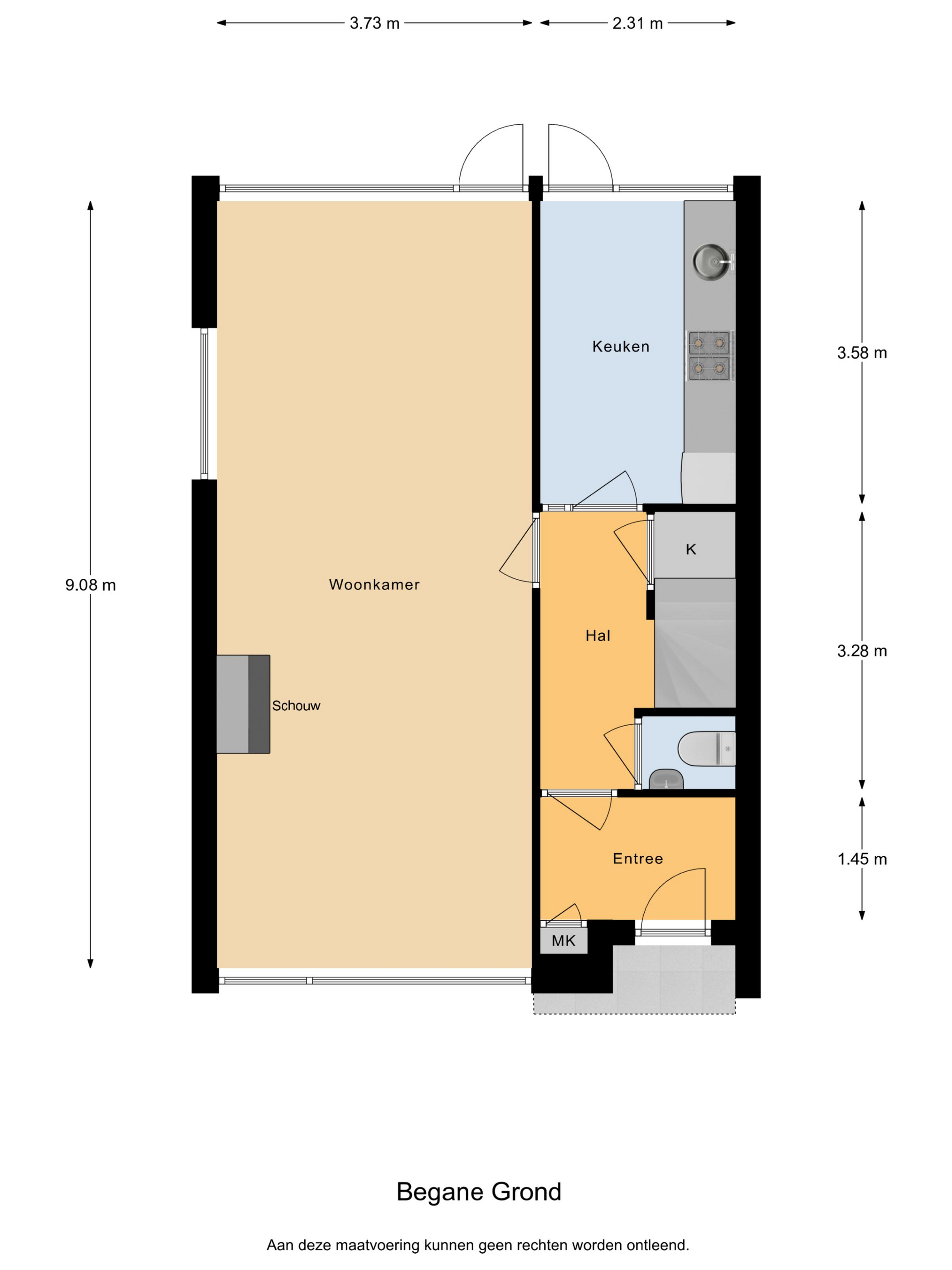 - 56 m² gelegen op het zuidoosten met achterom
