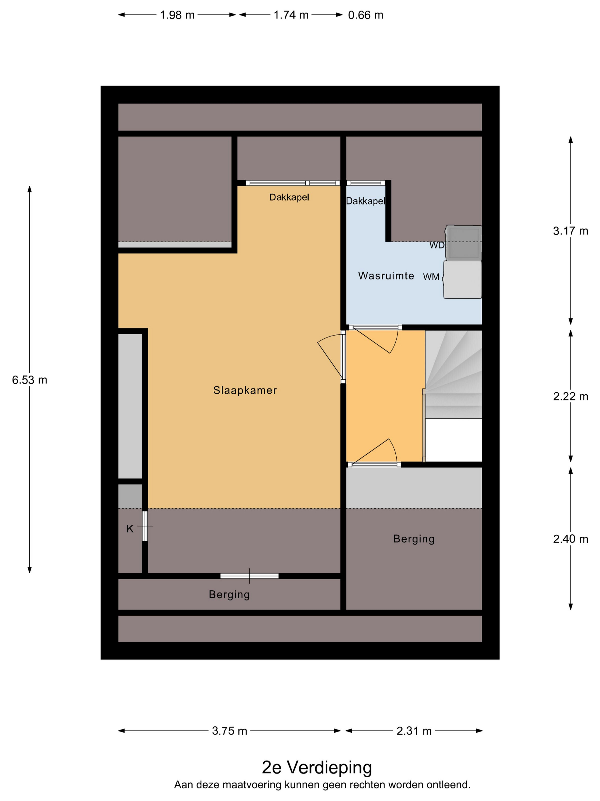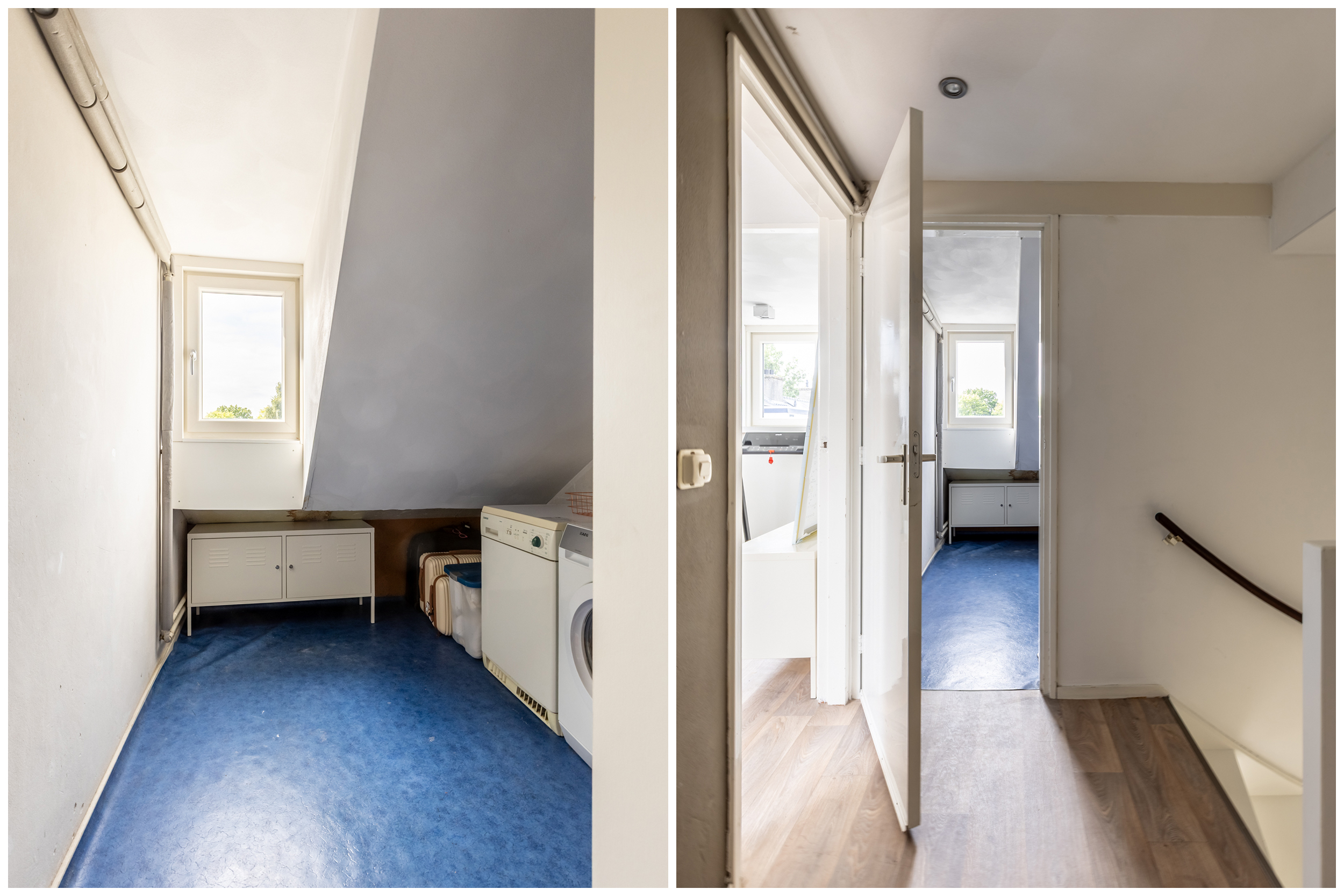 - Dakkapel op zolder, doorlopend over de wasruimte,