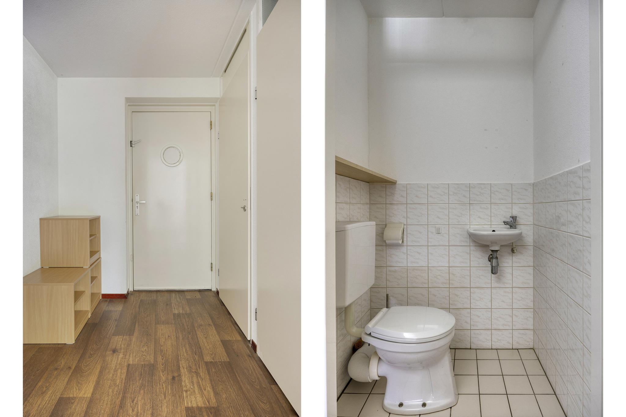 Achter de voordeur bevindt zich de entree met meterkast, cv-kast en garderobe. De entree biedt u toegang tot de woonkamer met eethoek en keuken, twee slaapkamers, de badkamer en de separate toiletruimte.