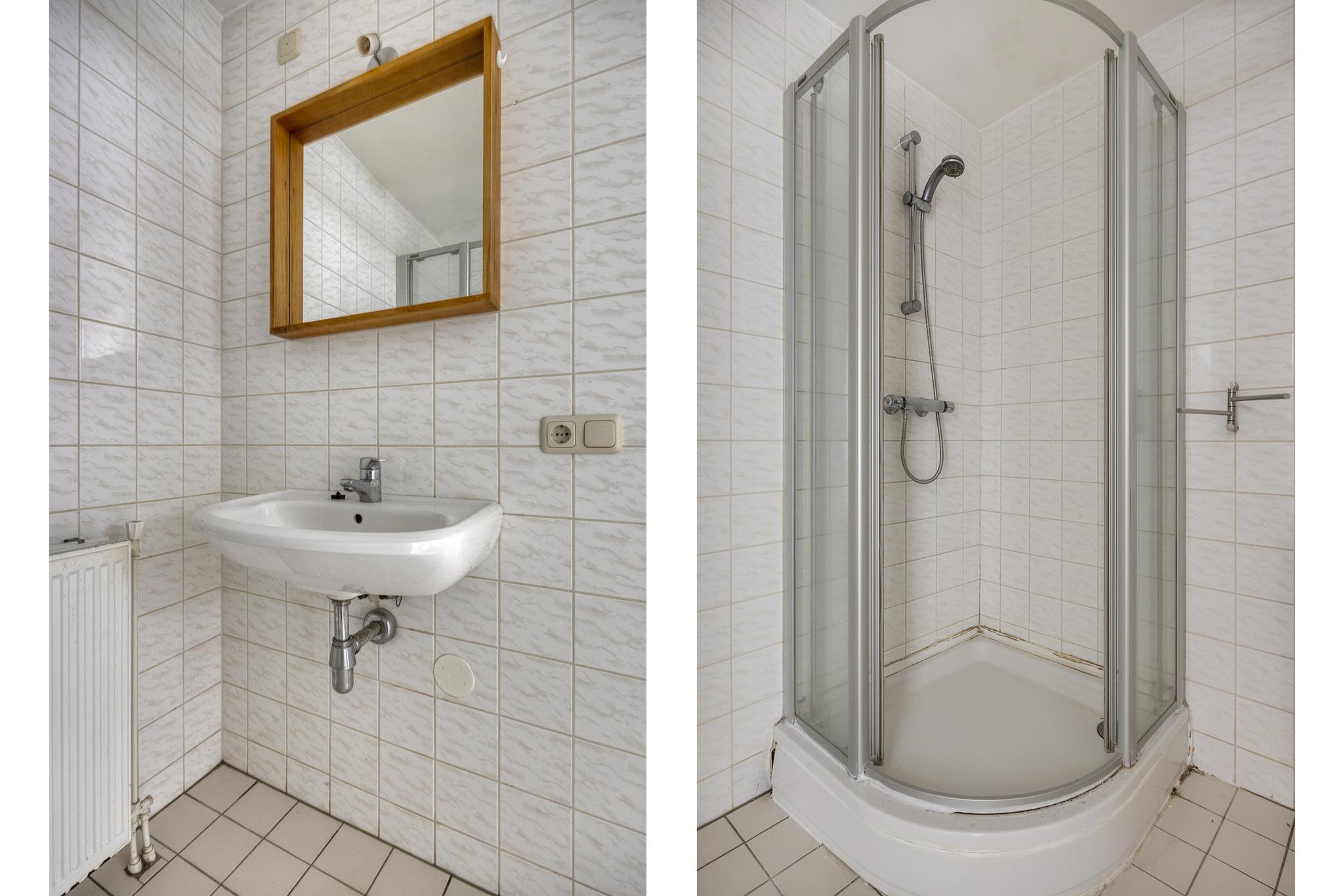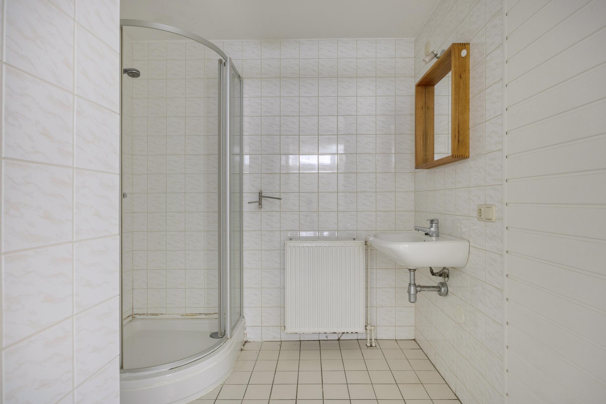 De badkamer, welke is uitgevoerd in een lichte kleurstelling, is voorzien van een douchecabine en wastafel. De badkamer biedt voldoende ruimte voor het plaatsen van een opbergmeubel.