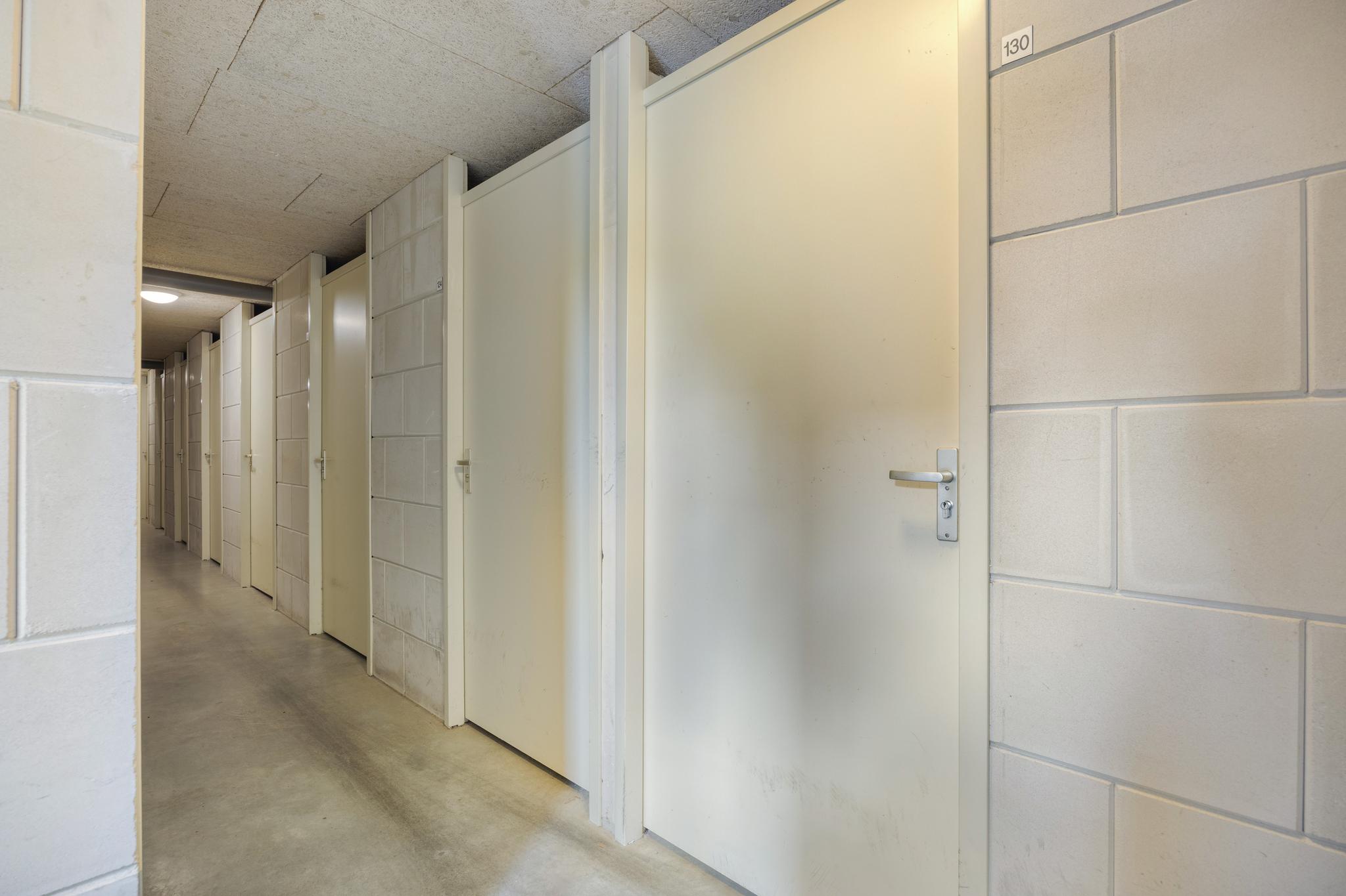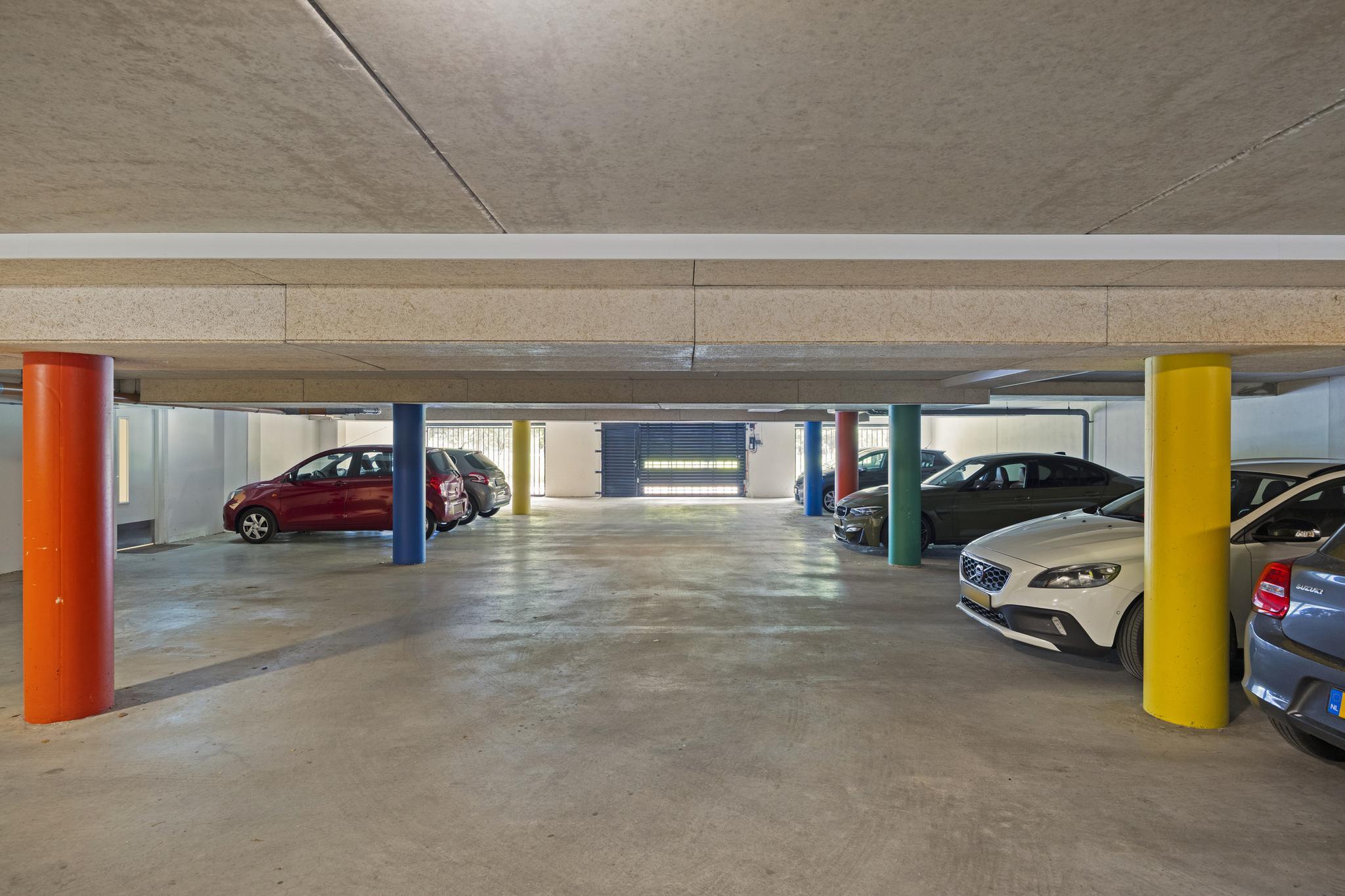 Middels de gemeenschappelijke entree is de, in het souterrain gelegen, parkeergarage bereikbaar. Hier bevinden zich een eigen parkeerplaats en uw praktische eigen berging. Met de auto bereikt u de parkeergarage middels een hellingbaan. De berging biedt met ruim 5 m2 voldoende ruimte voor het stallen van uw fietsen en het bergen van uw spullen. Uw gasten kunnen direct voor het complex parkeren voor een gereduceerd tarief.