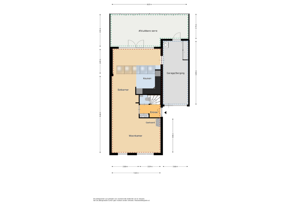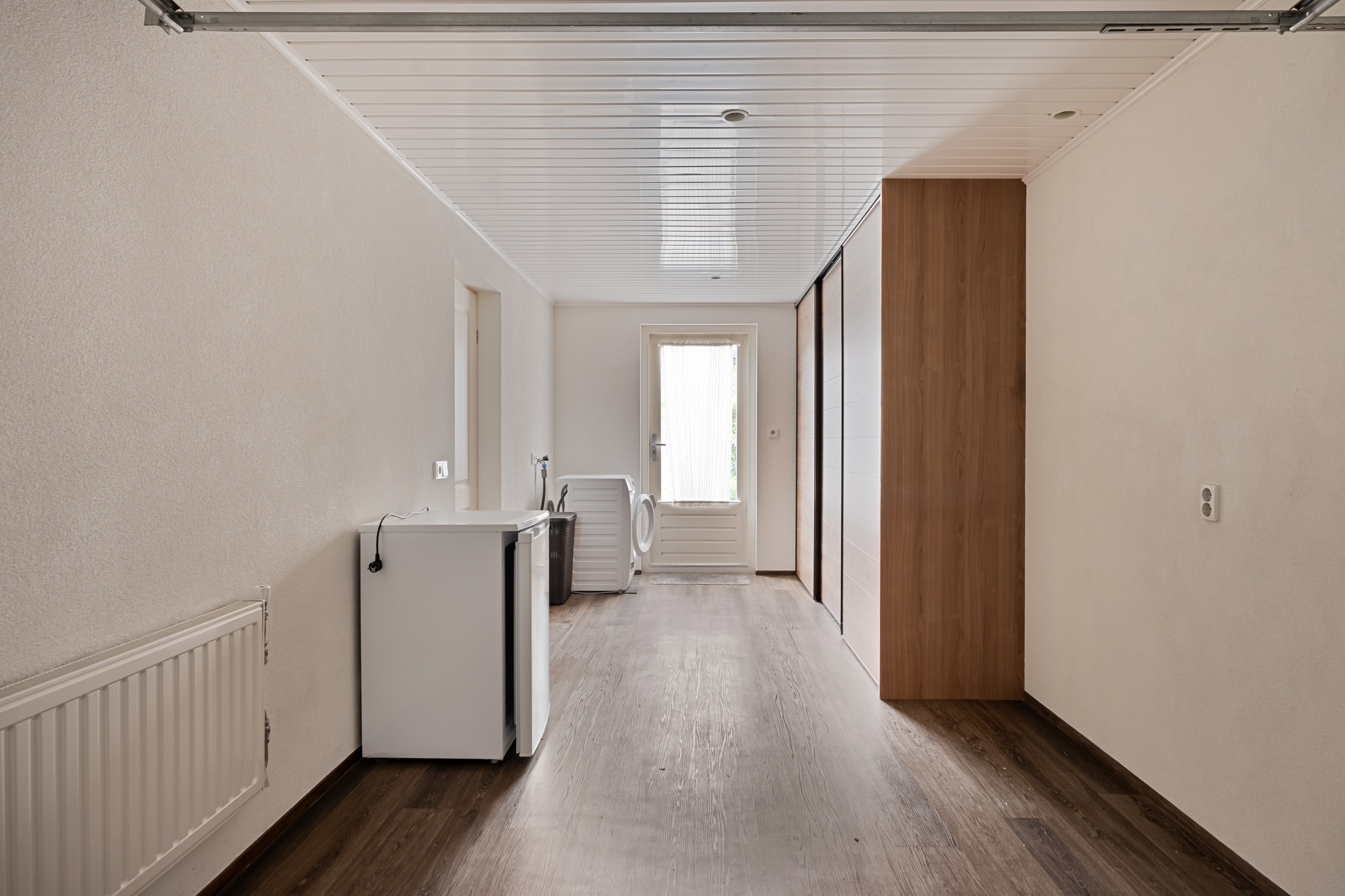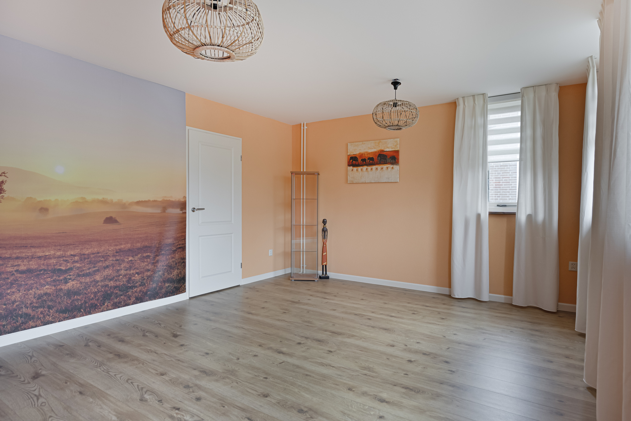 Je parkeert de auto moeiteloos op je eigen oprit waar ruimte genoeg is voor meerdere voertuigen. Via de nette entreehal betreed je de woning. Hier heb je direct toegang tot de meterkast, het toilet met fonteintje, de trap naar de eerste verdieping en de woonkamer. De begane grond is bovendien voorzien van vloerverwarming wat niet alleen heerlijk aanvoelt maar ook zorgt voor een strakke uitstraling zonder radiatoren in het zicht. De royale woonkamer is ingedeeld in een gezellige zithoek en een royale leefkeuken. In de zithoek kun je met gemak een flinke hoekbank kwijt plus een fauteuil. De sfeervolle gashaard voegt net dat beetje extra gezelligheid toe, perfect voor een knusse avond. Aan de voorzijde zorgen elektrische rolluiken voor een gevoel van privacy en comfort. Aan de achterzijde zorgt de aanbouw voor een heerlijk ruime leefkeuken met veel lichtinval dankzij de stijlvolle lichtstraat. De keuken is voorzien van een gaskookplaat, afzuigkap, combi-oven, koelkast en vaatwasser. Er is meer dan genoeg plek voor een eettafel waar je met het hele gezin aan kunt zitten. Via de openslaande deuren in de keuken stap je zo de ruime serre in, een heerlijke plek die je volledig kunt afsluiten. 's Ochtends met een kop koffie of 's avonds met een goed boek, hier kom je helemaal tot rust. Grenzend aan de keuken vind je de garage. De garage is voorzien van ingebouwde kasten en aansluiting voor de wasmachine.