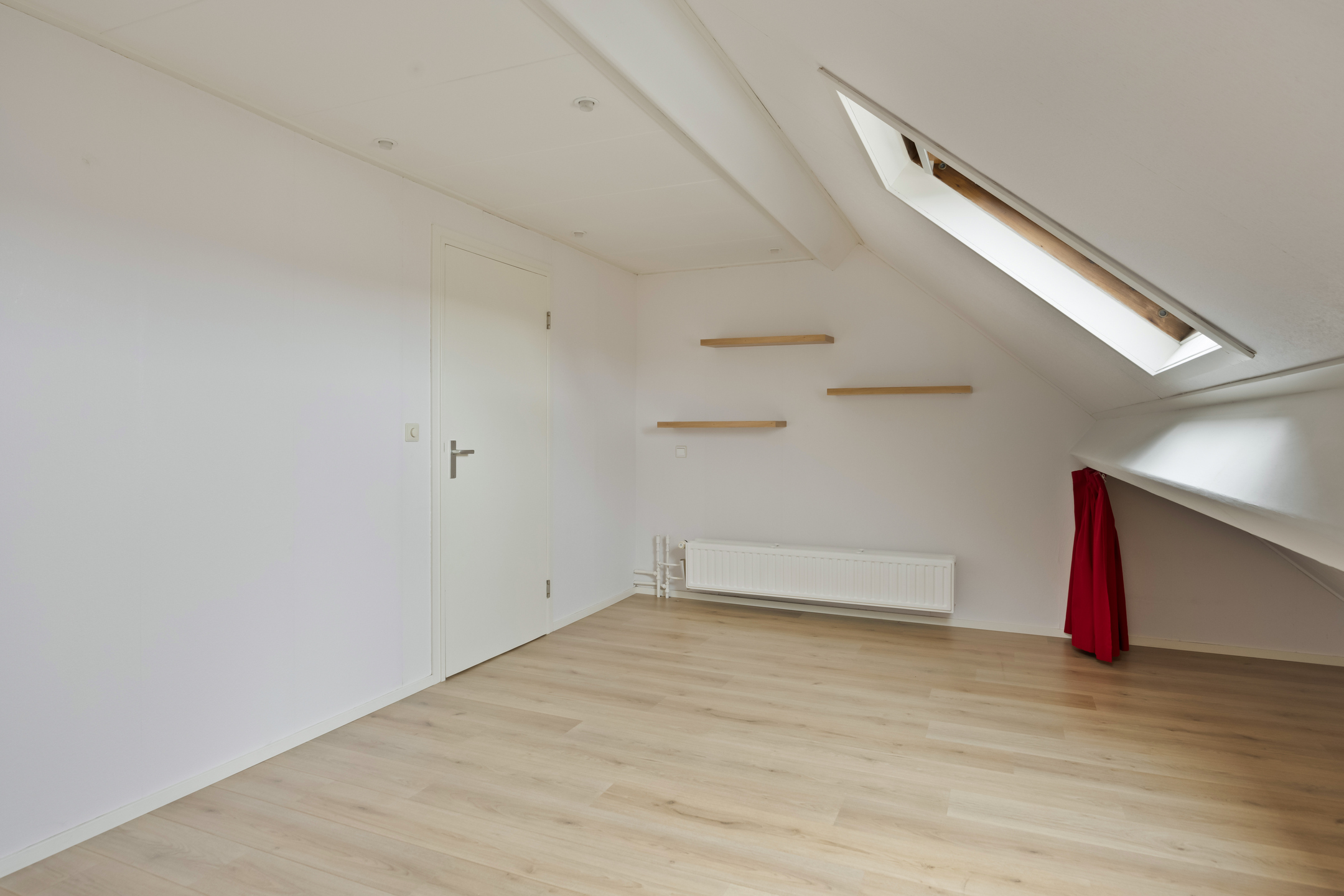 Via de overloop op de tweede verdieping kun je naar de zolder. Een ideale plek om al je seizoensspullen, koffers, kerstdecoratie en andere zaken netjes en uit het zicht op te bergen.