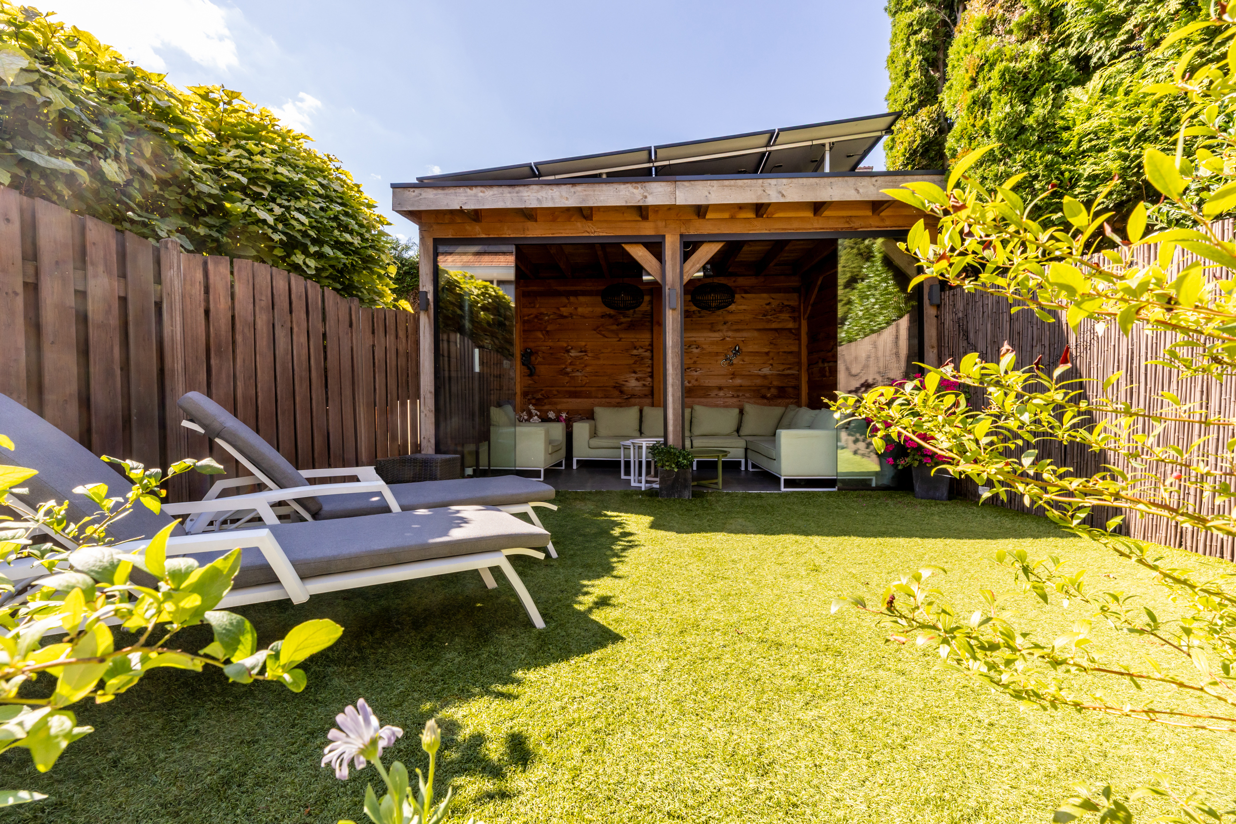 - Grote tuin op het westen (ca. 15 meter diep) met gezellige overkapping;