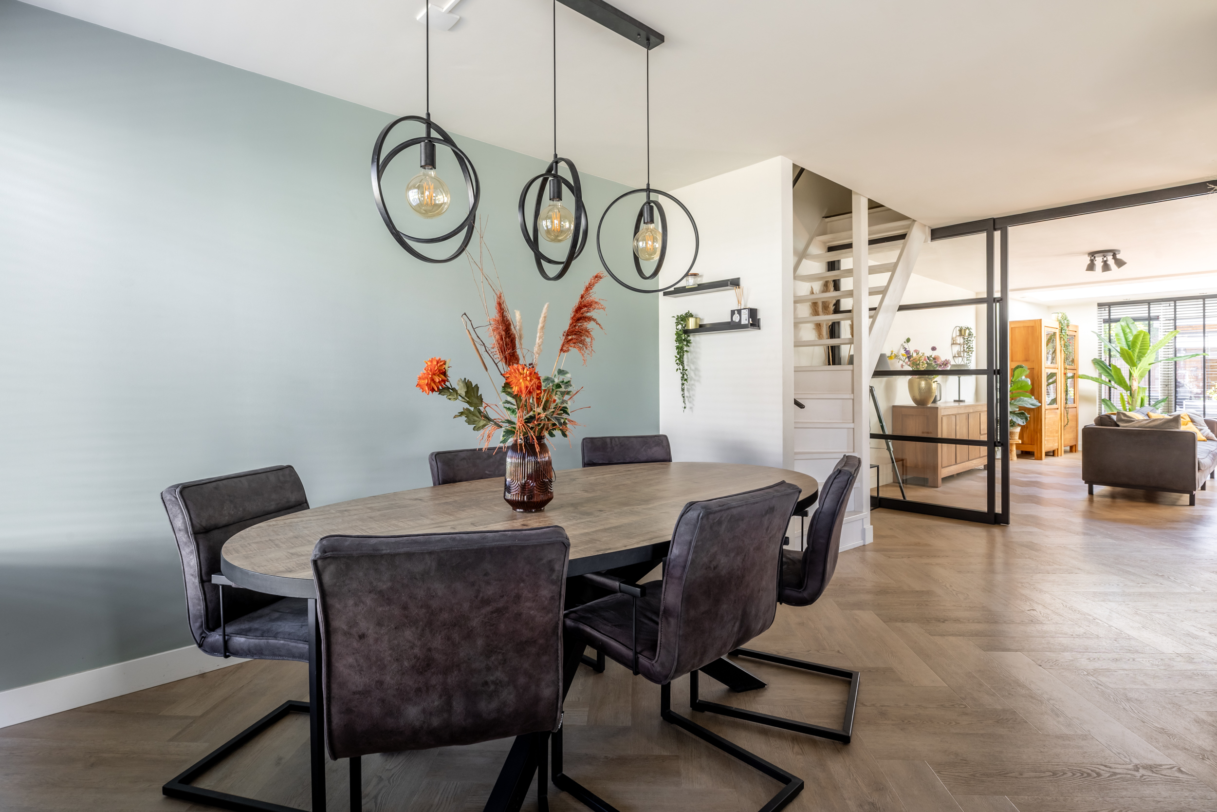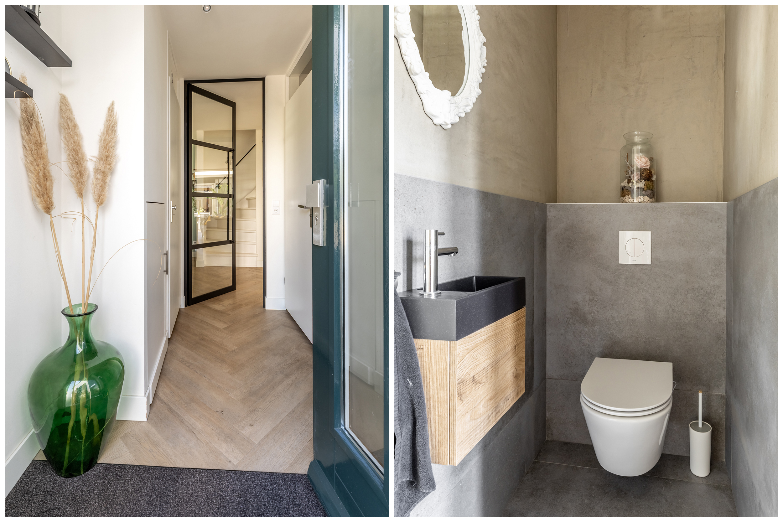 Parkeer uw auto eenvoudig op de oprit en betreed de woning via de entreehal. Vanuit de hal is er toegang tot de meterkast, het toilet en de royale leefruimte. Aan de voorzijde van de woning bevindt zich de moderne keuken uit 2019, compleet met inbouwapparatuur zoals een vaatwasser, koelkast, inductiekookplaat (2022), combi-oven (2022), bakoven (2022) en een ingebouwd koffiezetapparaat. Aan de achterzijde ligt de ruime woonkamer die dankzij de dubbele tuindeuren en de lichtstraat geniet van veel natuurlijk licht. Hier is meer dan genoeg ruimte voor een gezellige zithoek. De woonkamer is zelfs voorzien van een airco, voor een prettig binnenklimaat. De gehele begane grond is voorzien van een PVC-vloer met vloerverwarming, beiden gelegd in 2021, voor extra comfort. Tussen de keuken en de woonkamer bevindt zich de trap naar de eerste verdieping met daaronder een praktische trapkast.