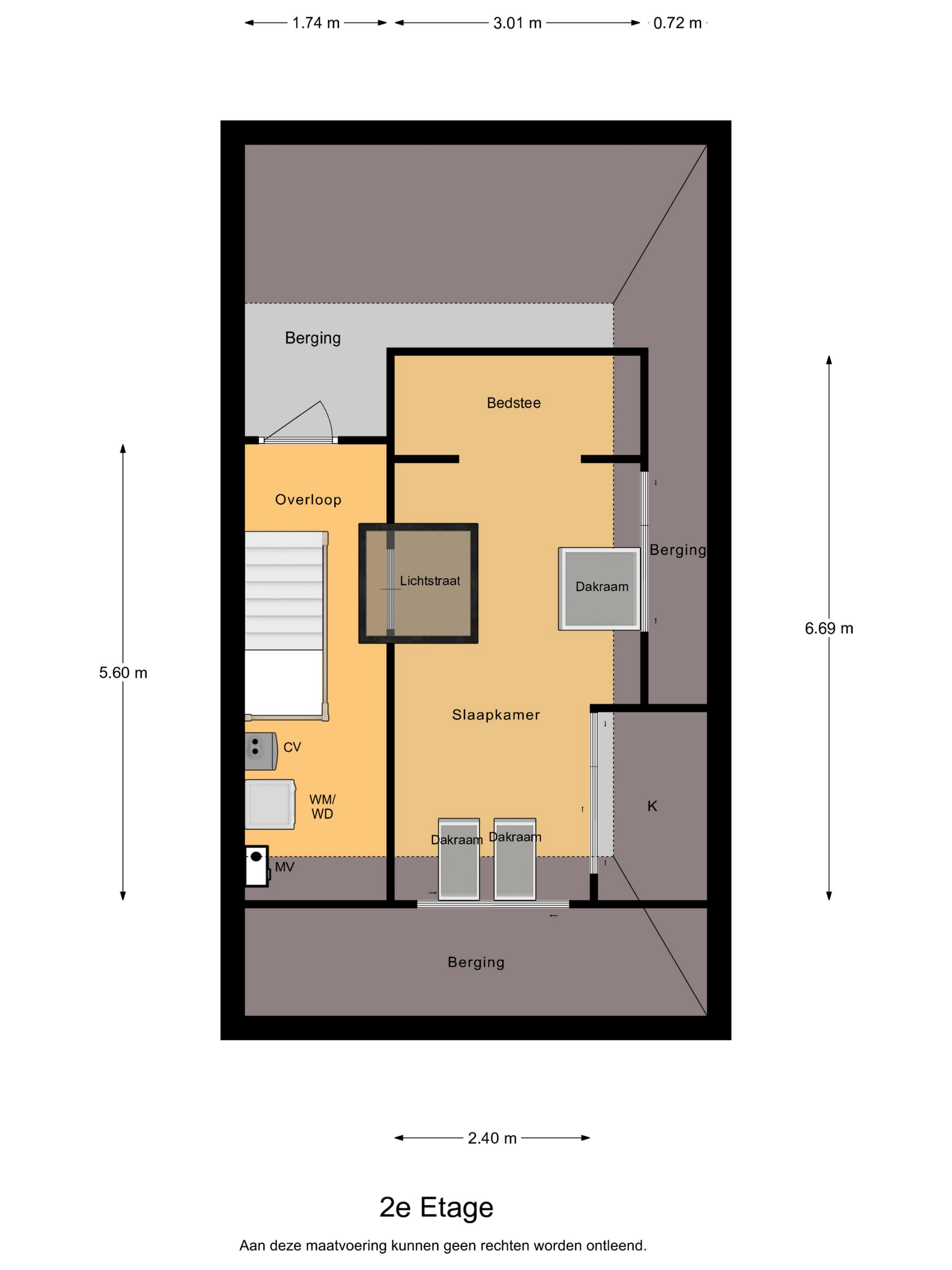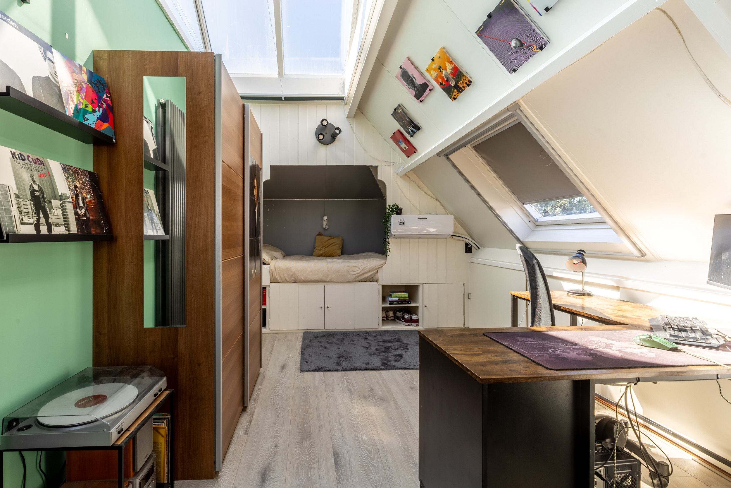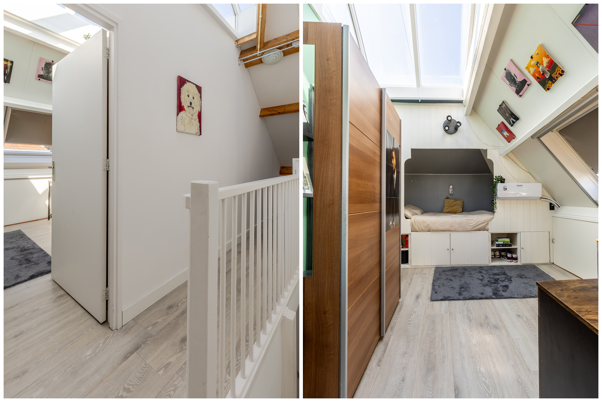 De tweede verdieping bereikt u via een vaste trap. Hier bevindt zich een grote vierde slaapkamer, voorzien van een sfeervolle bedstee, airco en voldoende lichtinval dankzij de dakramen en de lichtstraat. Achter de knieschotten is extra bergruimte aanwezig, ideaal voor het opbergen van spullen die u niet dagelijks nodig heeft. Op de overloop vindt u de opstelplaats voor de cv-ketel, de wasmachine en de droger. Tot slot is er nog een aparte berging beschikbaar, perfect voor het opbergen van seizoensgebonden spullen zoals kerstdecoratie of koffers.