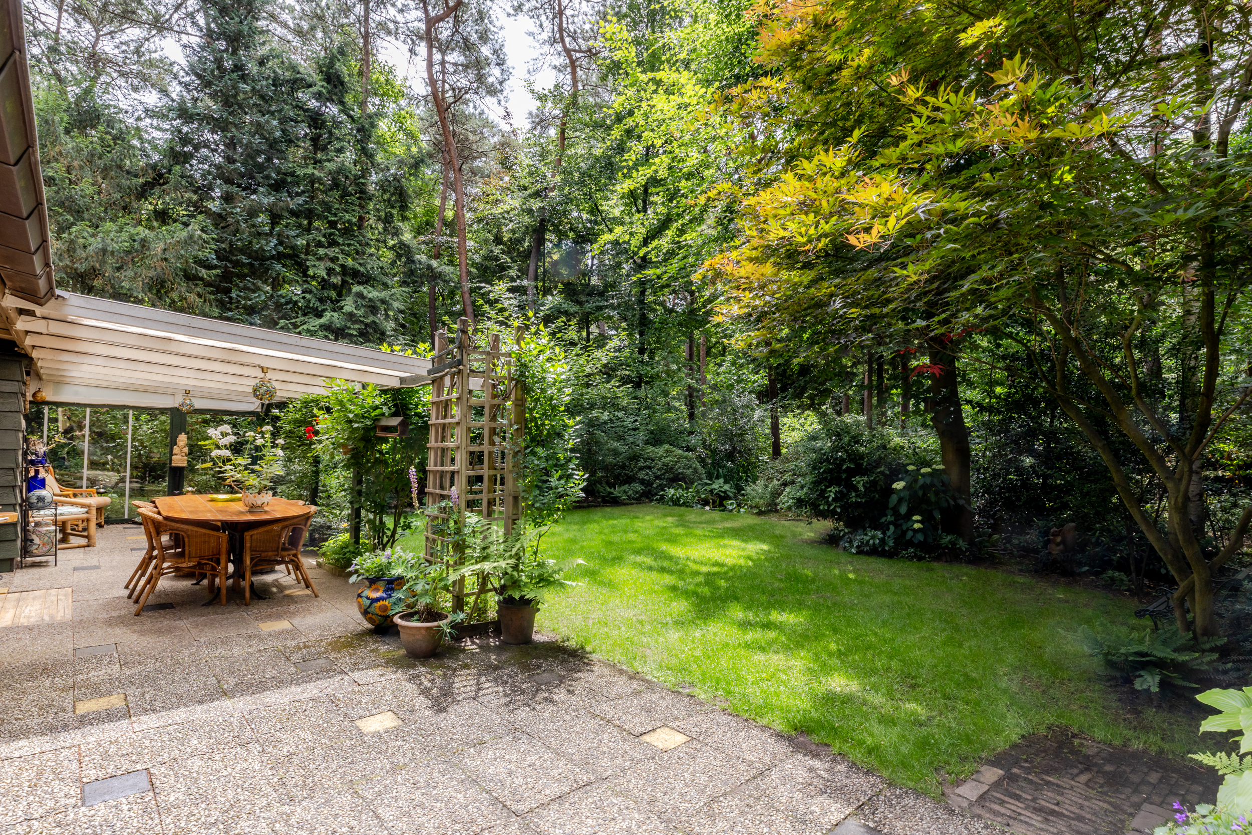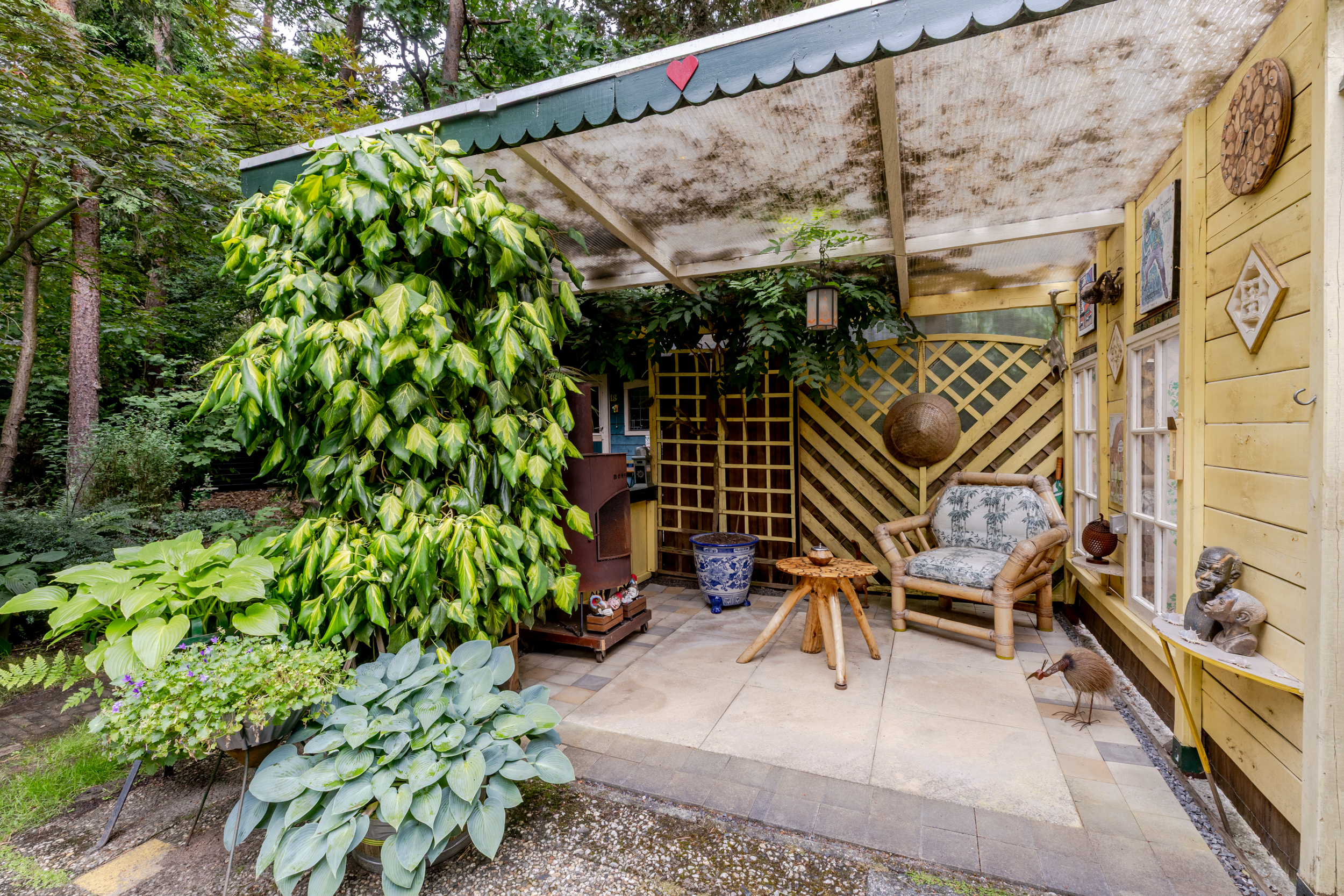De tuin van Spechtbos 18 is een heerlijke, groene oase met volop privacy en sfeer. Midden in het groen staat een charmante, vrijstaande berging die zich uitstekend leent als atelier, tuinhuis of extra opslagruimte. Grenzend aan het huis vind je een gezellige overkapping met zitgedeelte. De tuin is zorgvuldig aangelegd met een combinatie van bestrating en groen, en heeft een natuurlijke overgang naar het bosrijke achtergebied.