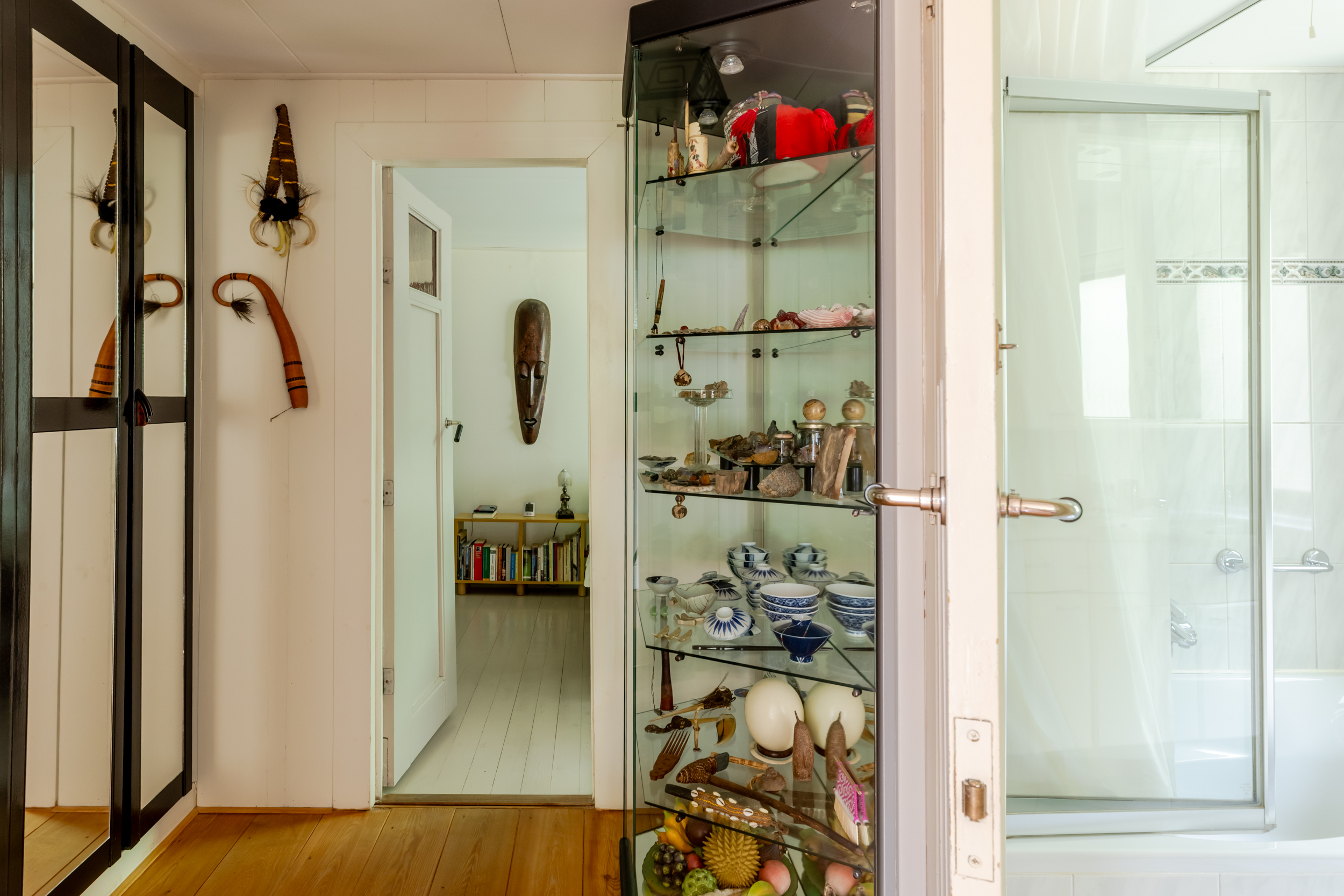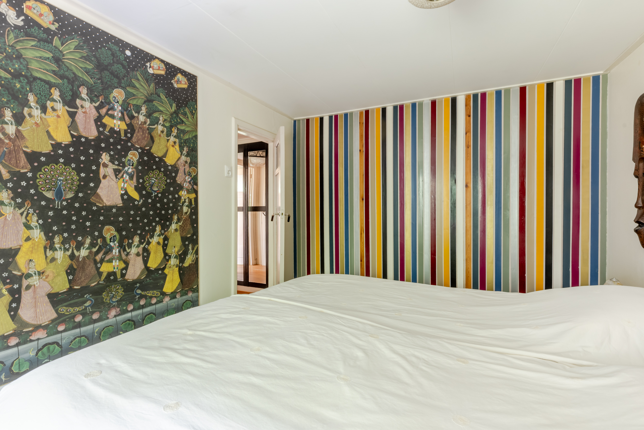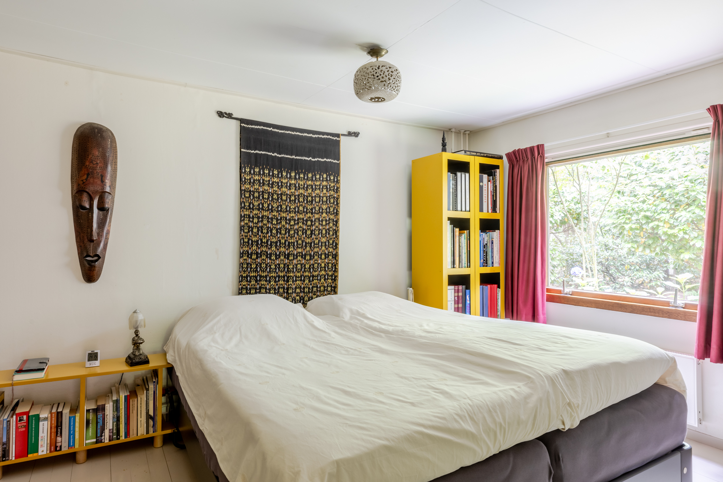 Vanuit deze hal loop je direct door naar de slaapkamer. Deze is ruim opgezet en biedt uitzicht op de achtertuin. De sfeer is er kalm en beschut, wat zorgt voor een perfecte plek om tot rust te komen.