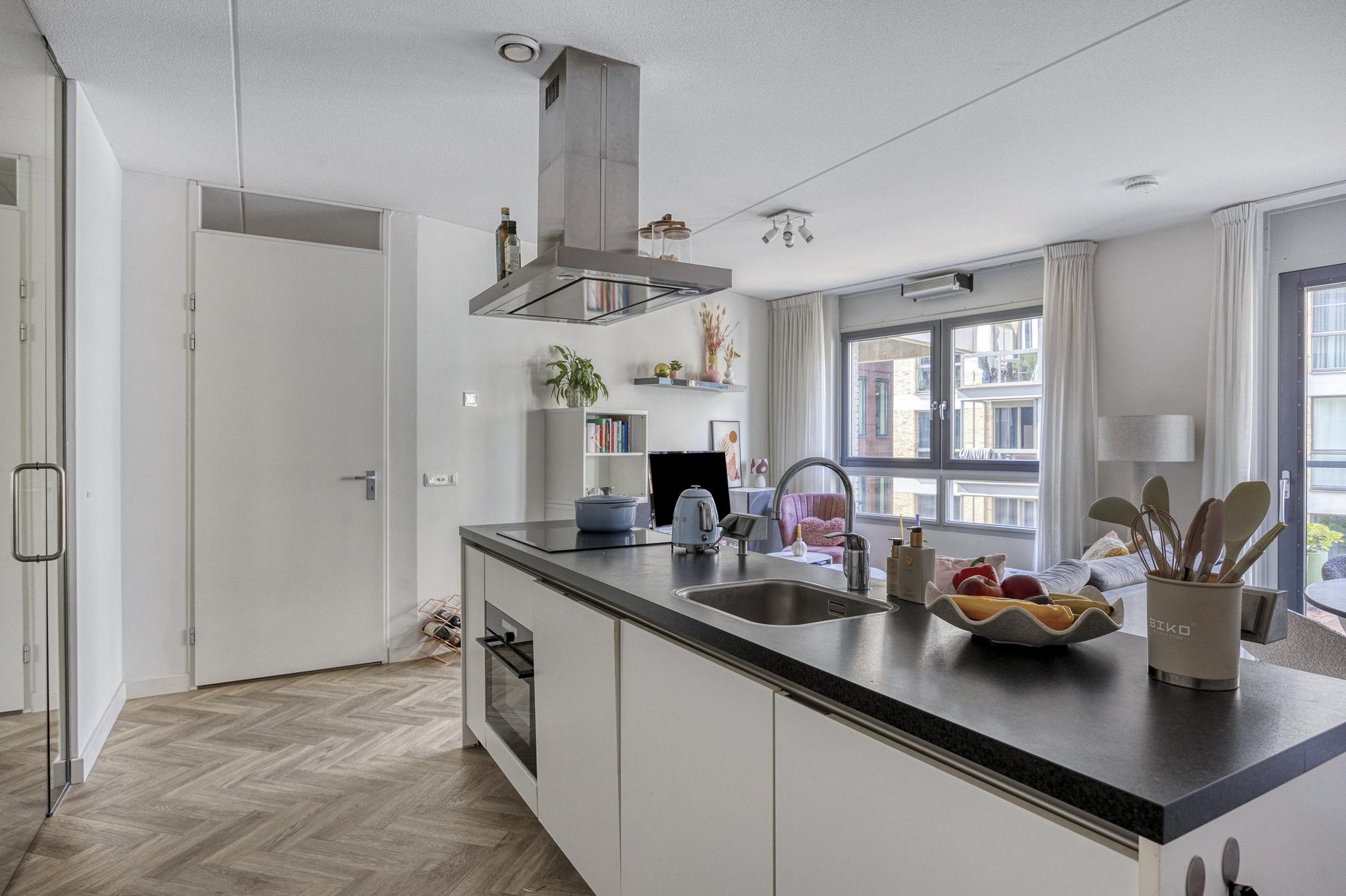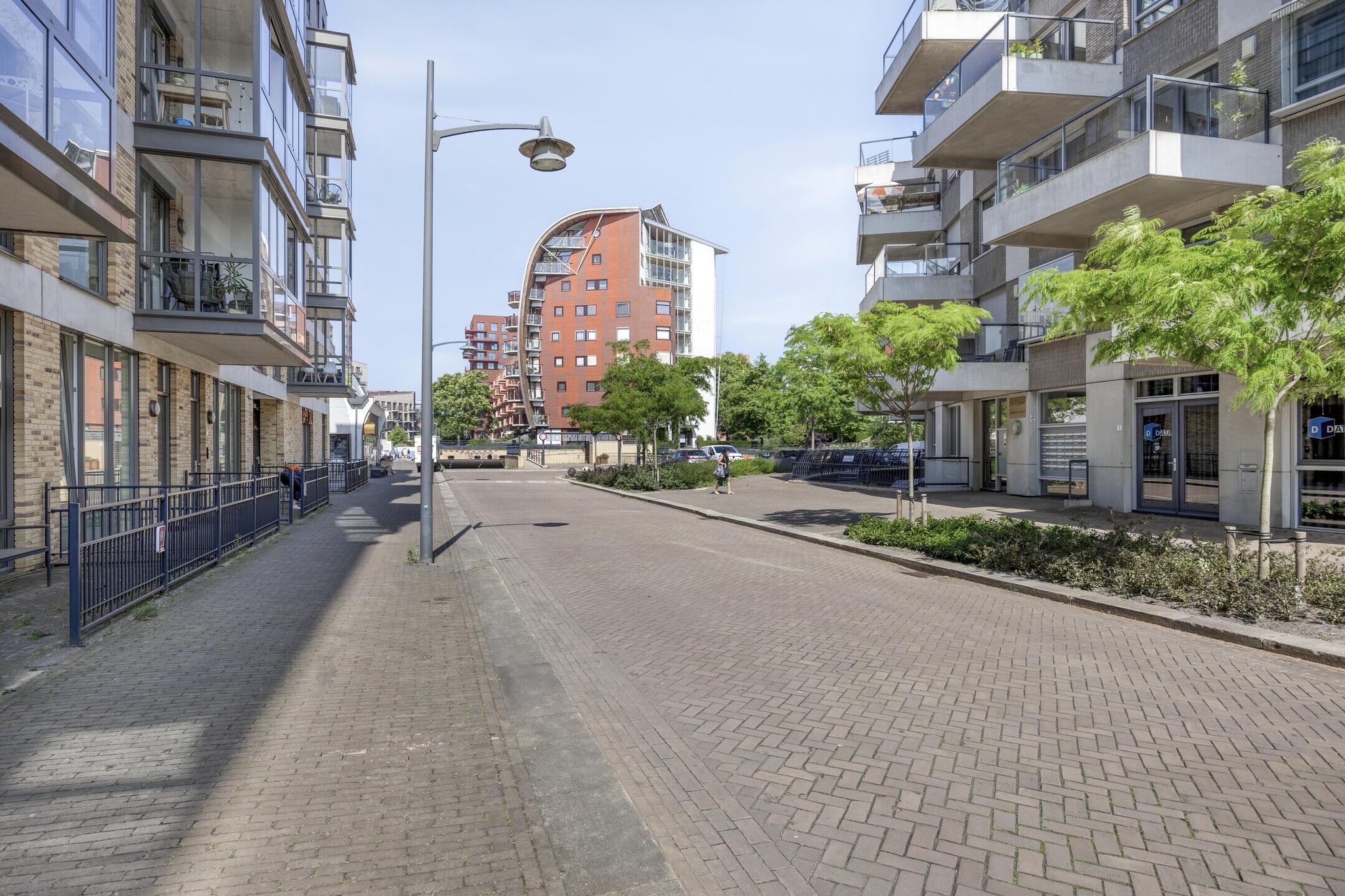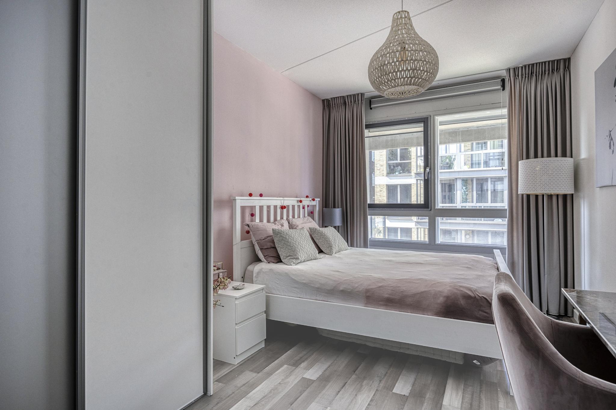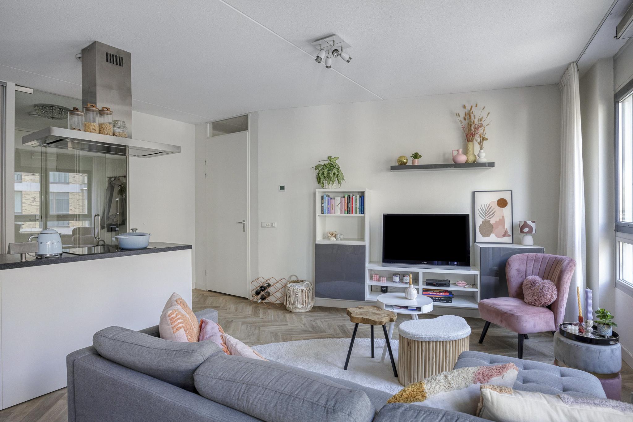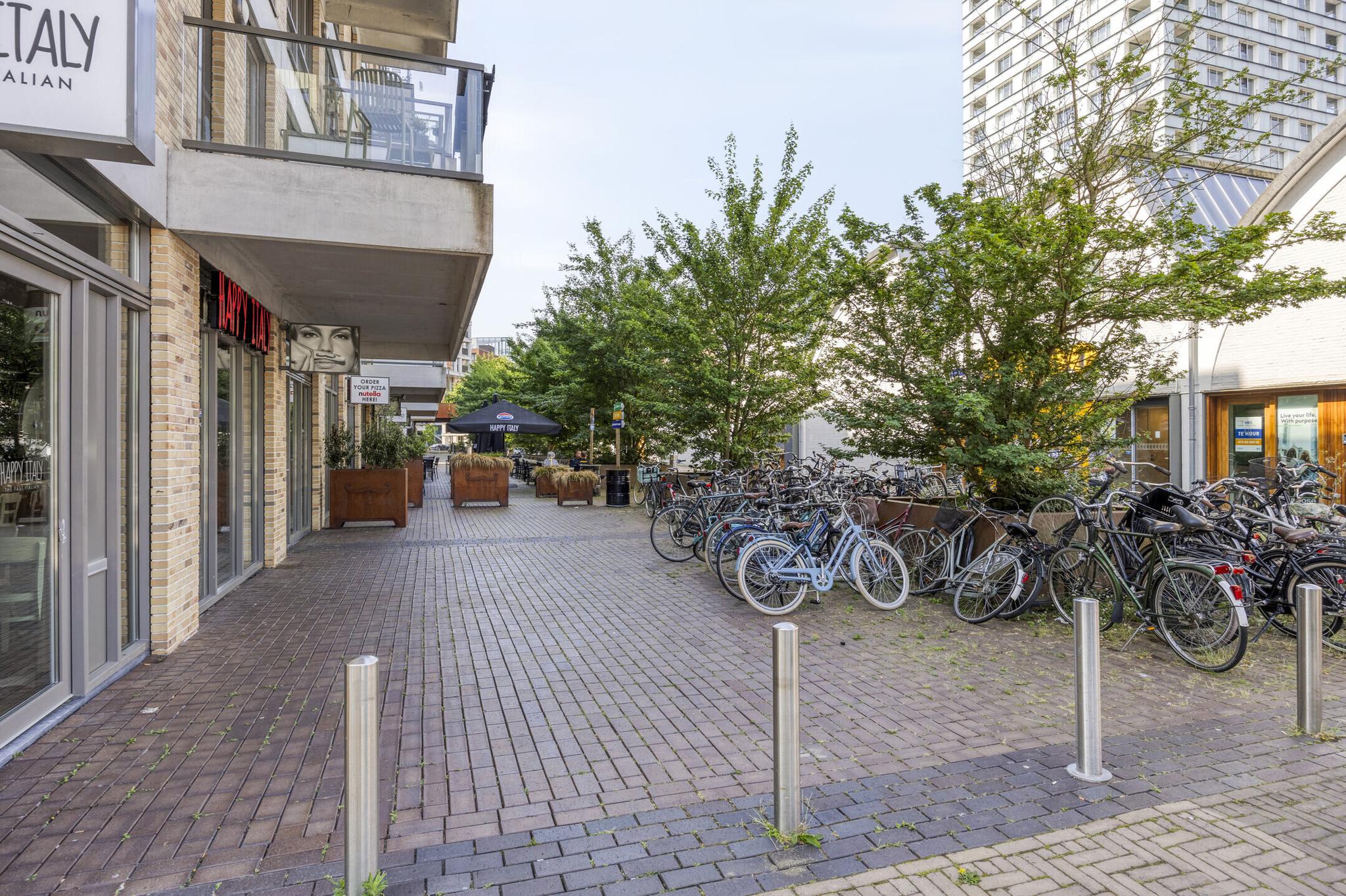 Via een schuifpui bereik je het ruime balkon. Door de zuidwestelijke ligging heb je aan zon geen gebrek. Hier heb je een fantastisch zicht over het Paleiskwartier en kun je eindeloos genieten van het stadse leven om je heen.