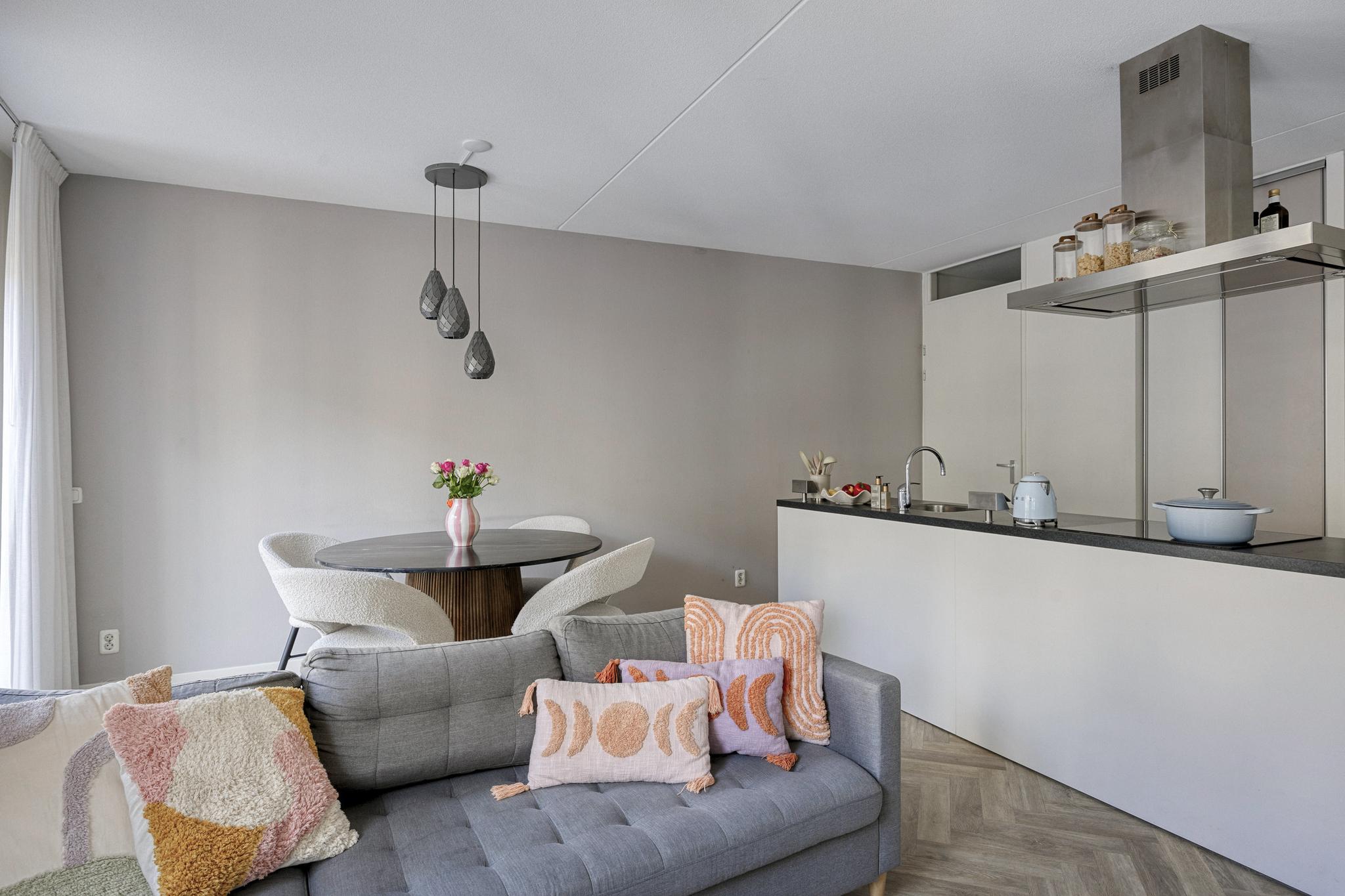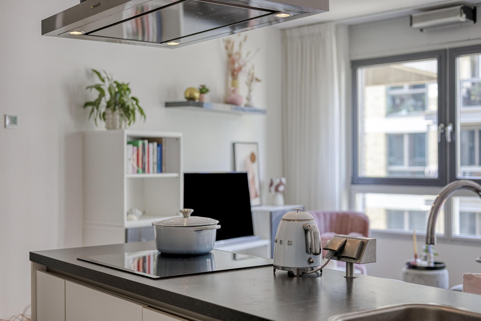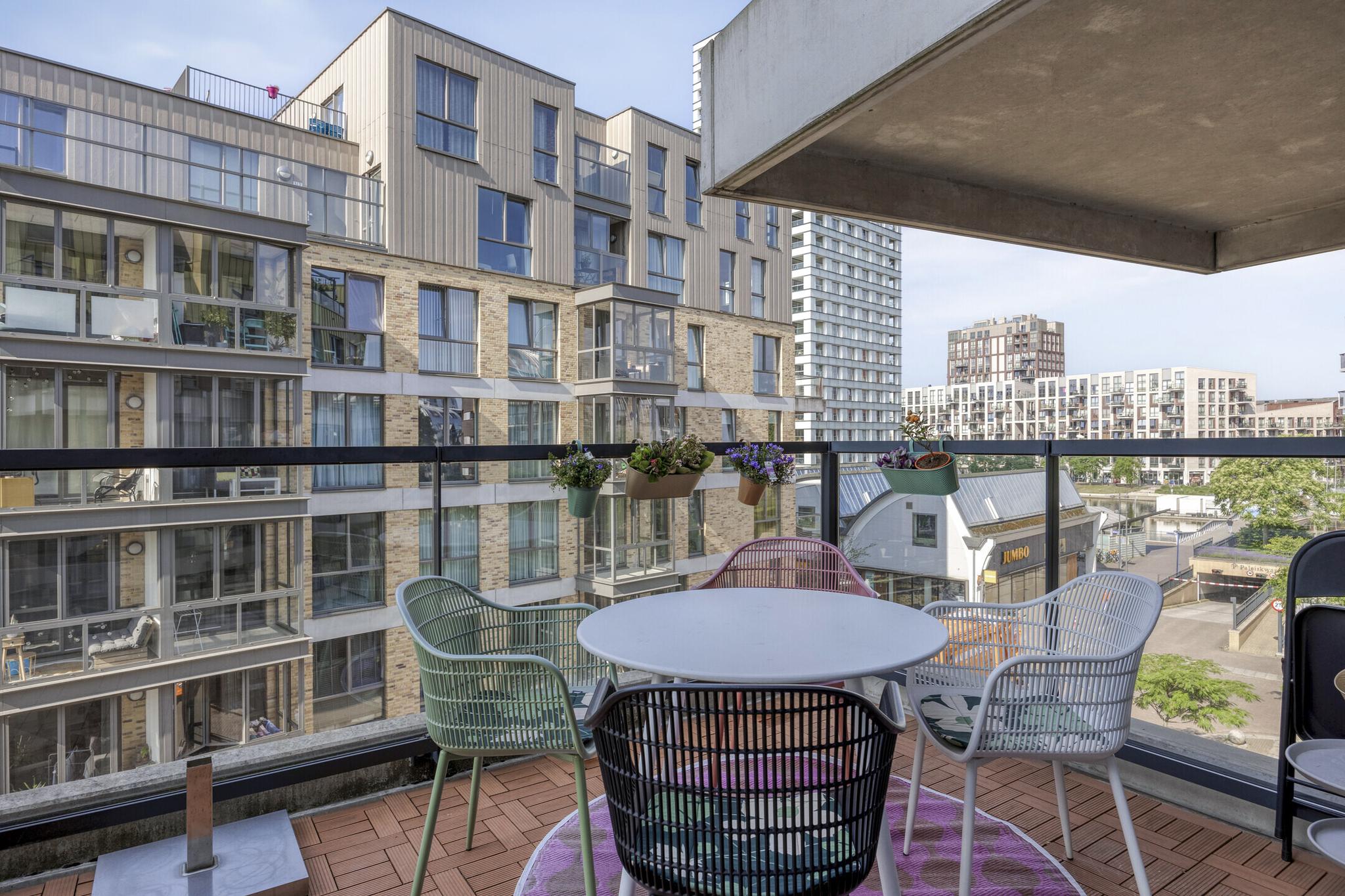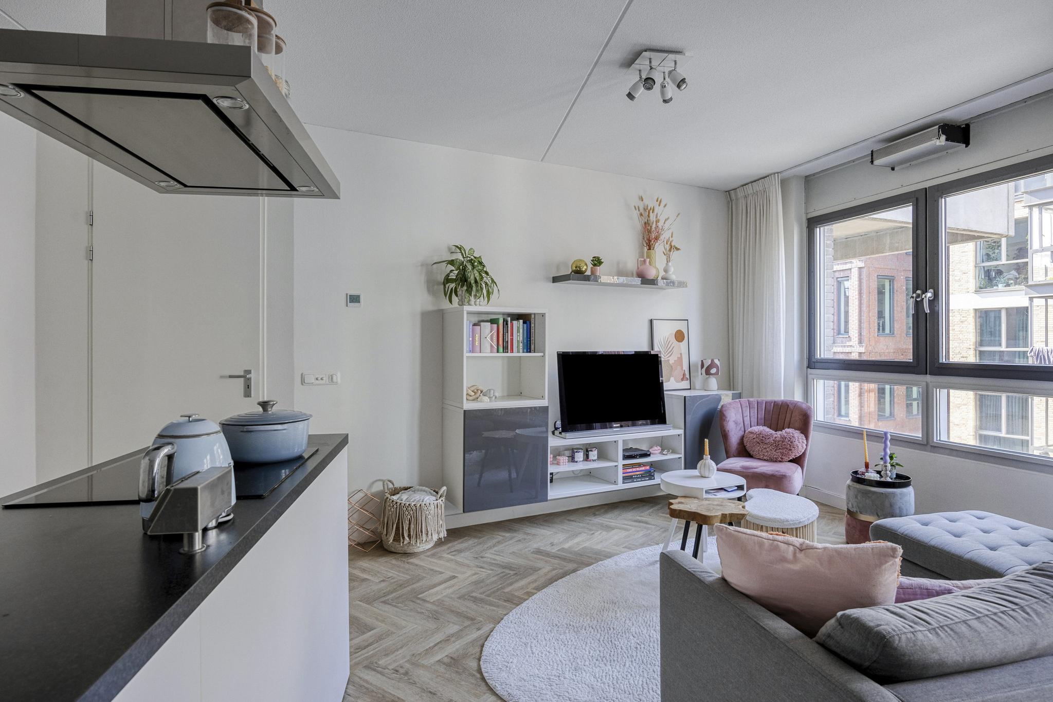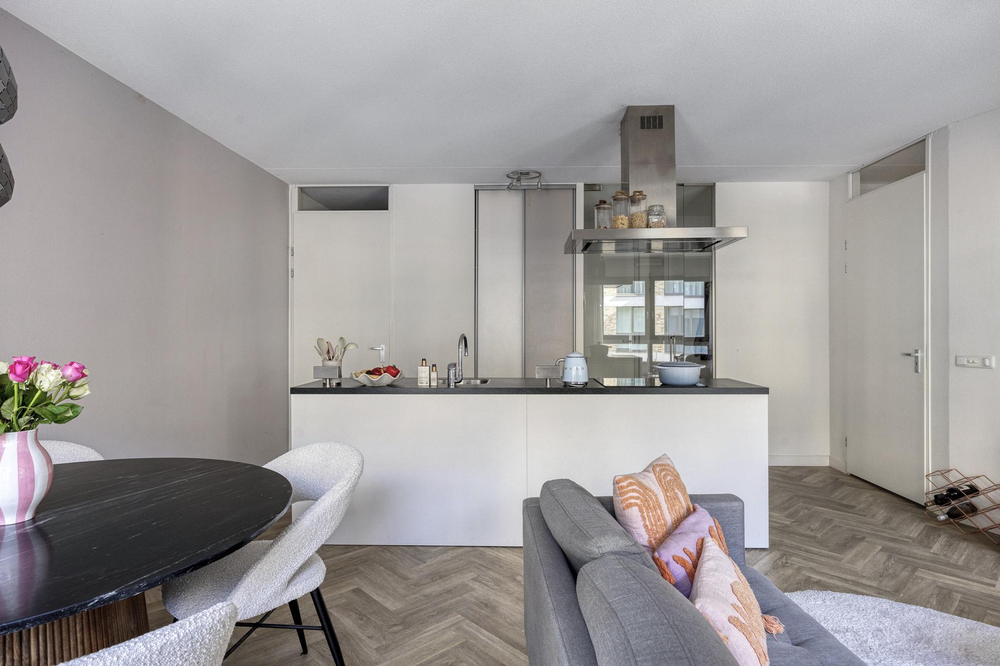 Via een schuifpui bereik je het ruime balkon. Door de zuidwestelijke ligging heb je aan zon geen gebrek. Hier heb je een fantastisch zicht over het Paleiskwartier en kun je eindeloos genieten van het stadse leven om je heen.