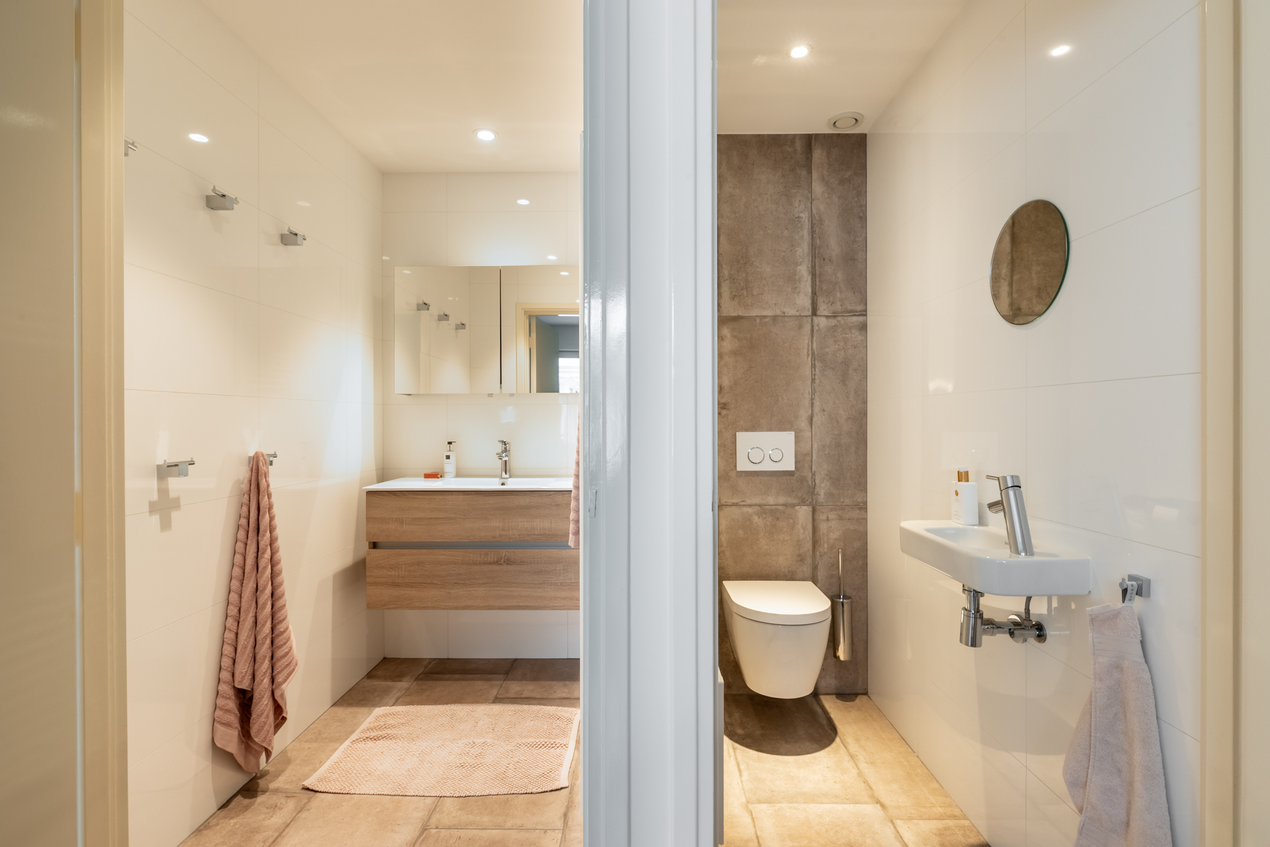 - Toilet, wastafelmeubel, inloopdouche, ligbad, douche, bidet, stoomcabine en dubbele wastafel