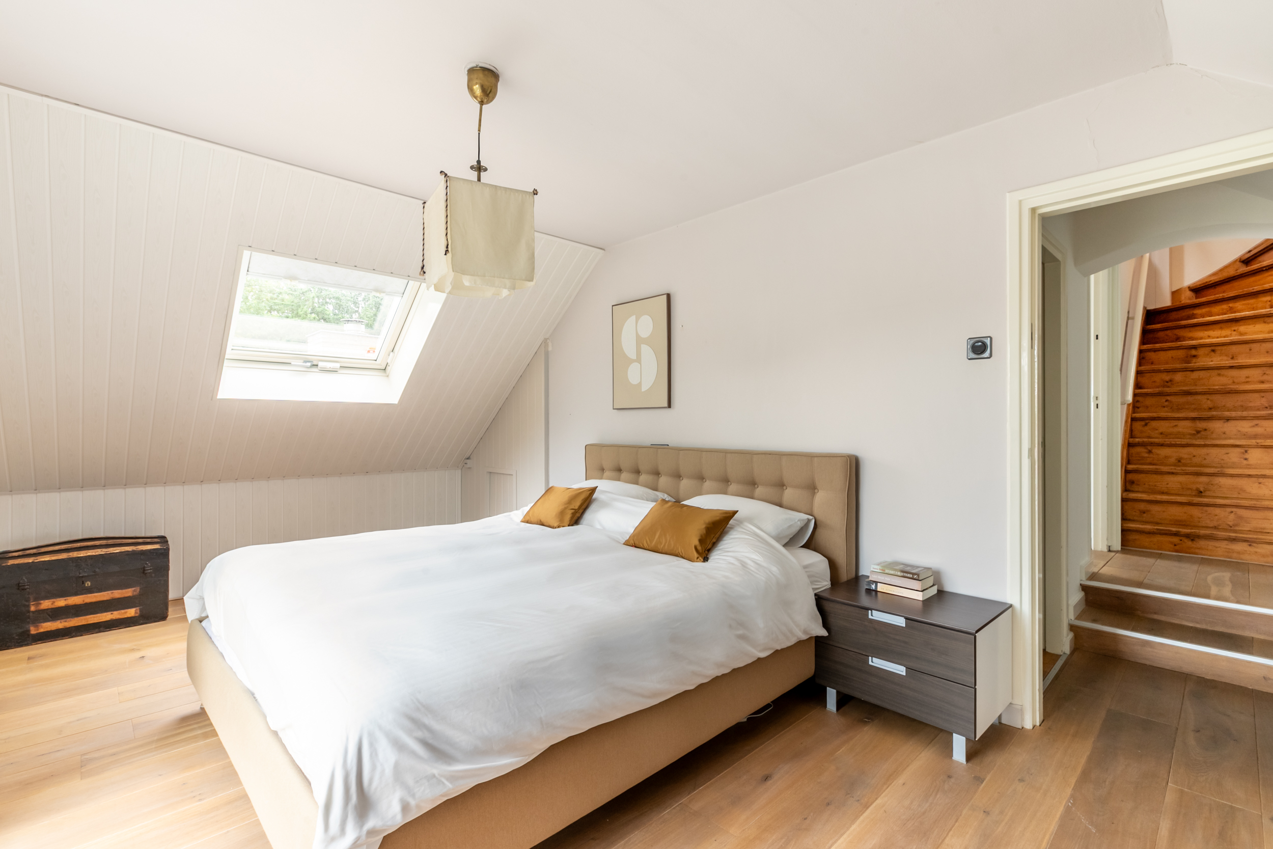 Ruime voorzolder met daglicht en de toegang tot de vierde slaapkamer. Indien gewenst is deze verdieping eenvoudig aan te passen naar een verdieping met vijf of zes (slaap)kamers.
