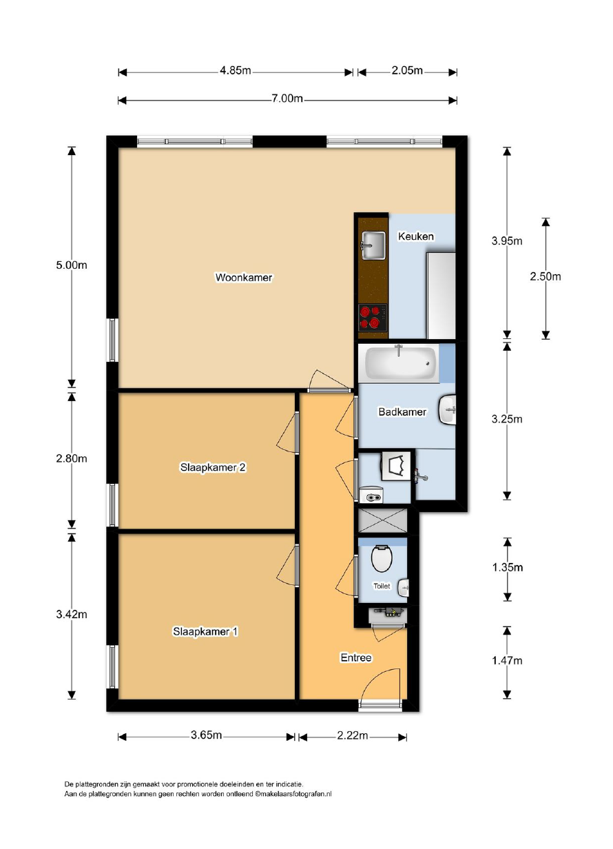 De twee ruime slaapkamers aan de zijkant van de woning bieden voldoende ruimte.