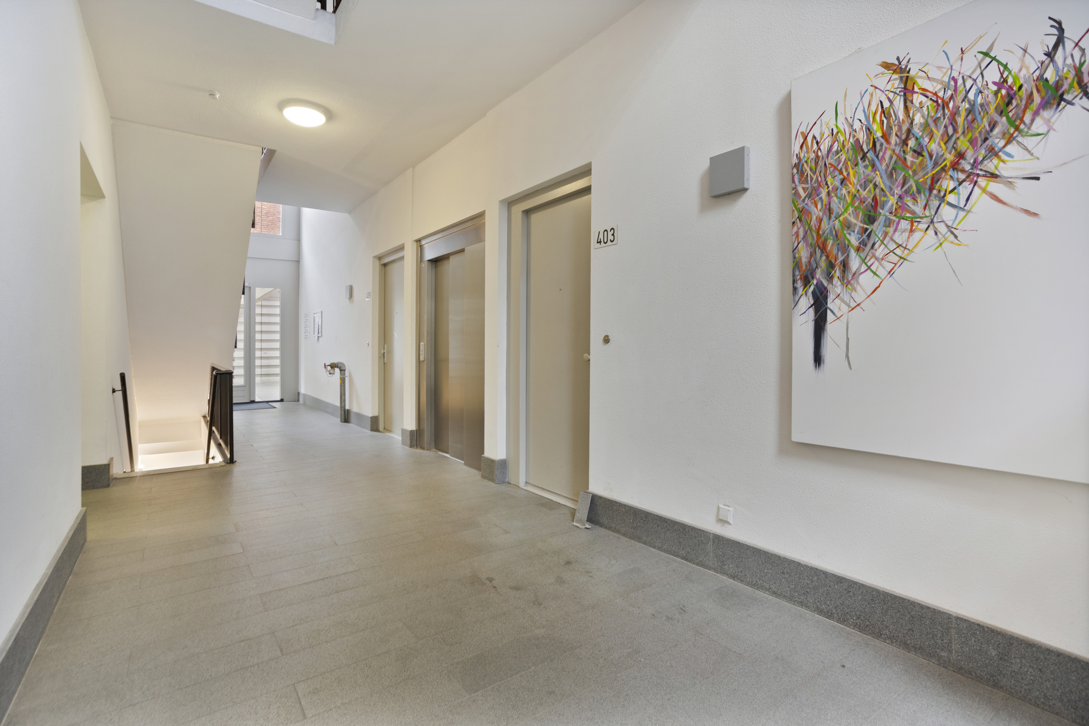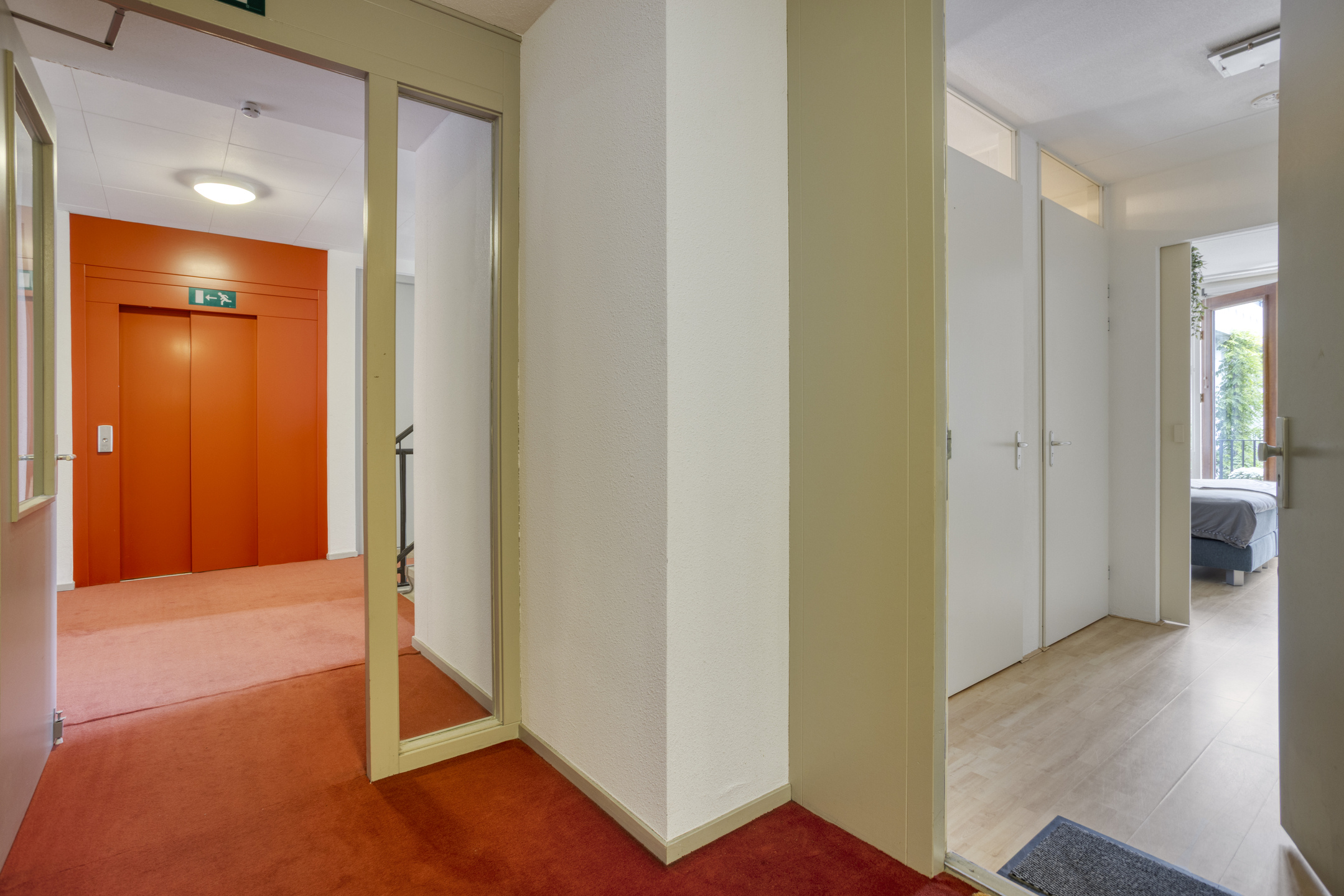 De gezamenlijke entree is voorzien van postbussen, bellentableau en een videofooninstallatie. De centrale hal/entree biedt toegang tot het trappenhuis, de liften en het souterrain. In het souterrain bevindt zich de eigen parkeerplaats. Met de auto bereikt u de parkeergarage middels een hellingbaan en een op afstand bedienbare toegangspoort. Zowel de postbus, berging en de parkeerplaats hebben een ideale ligging ten opzichte van de entree.