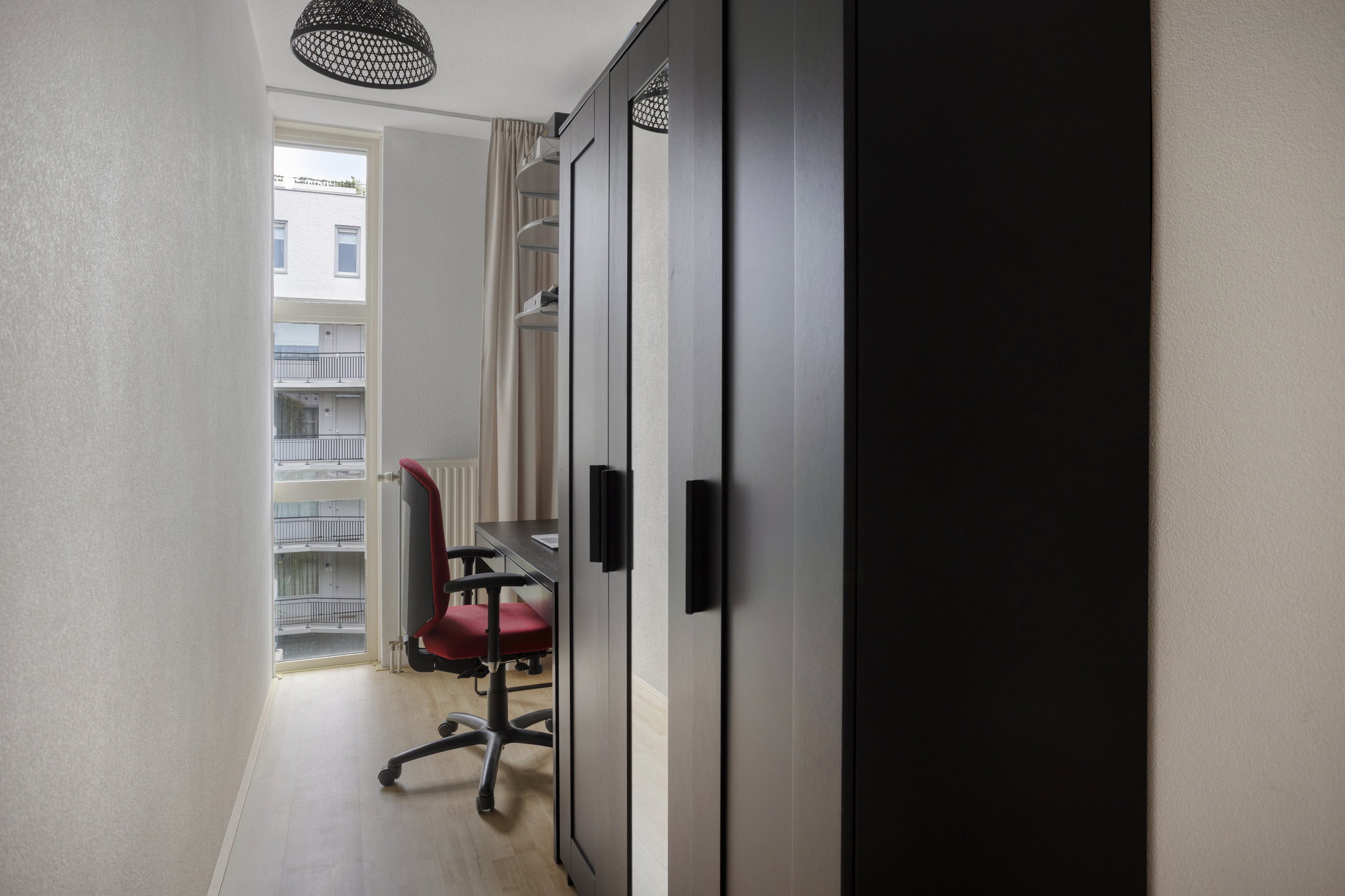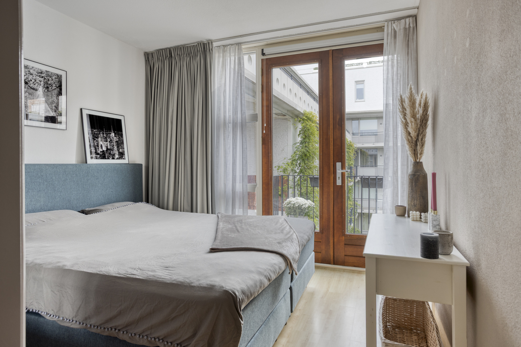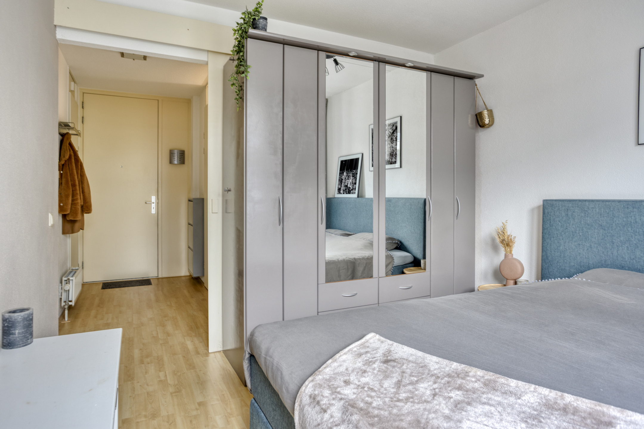De hoofdslaapkamer biedt voldoende ruimte voor het plaatsen van ruim 2-persoons bed en een grote kastenwand. De tweede slaapkamer wordt momenteel gebruikt als werk-/studeerkamer en logeerkamer.