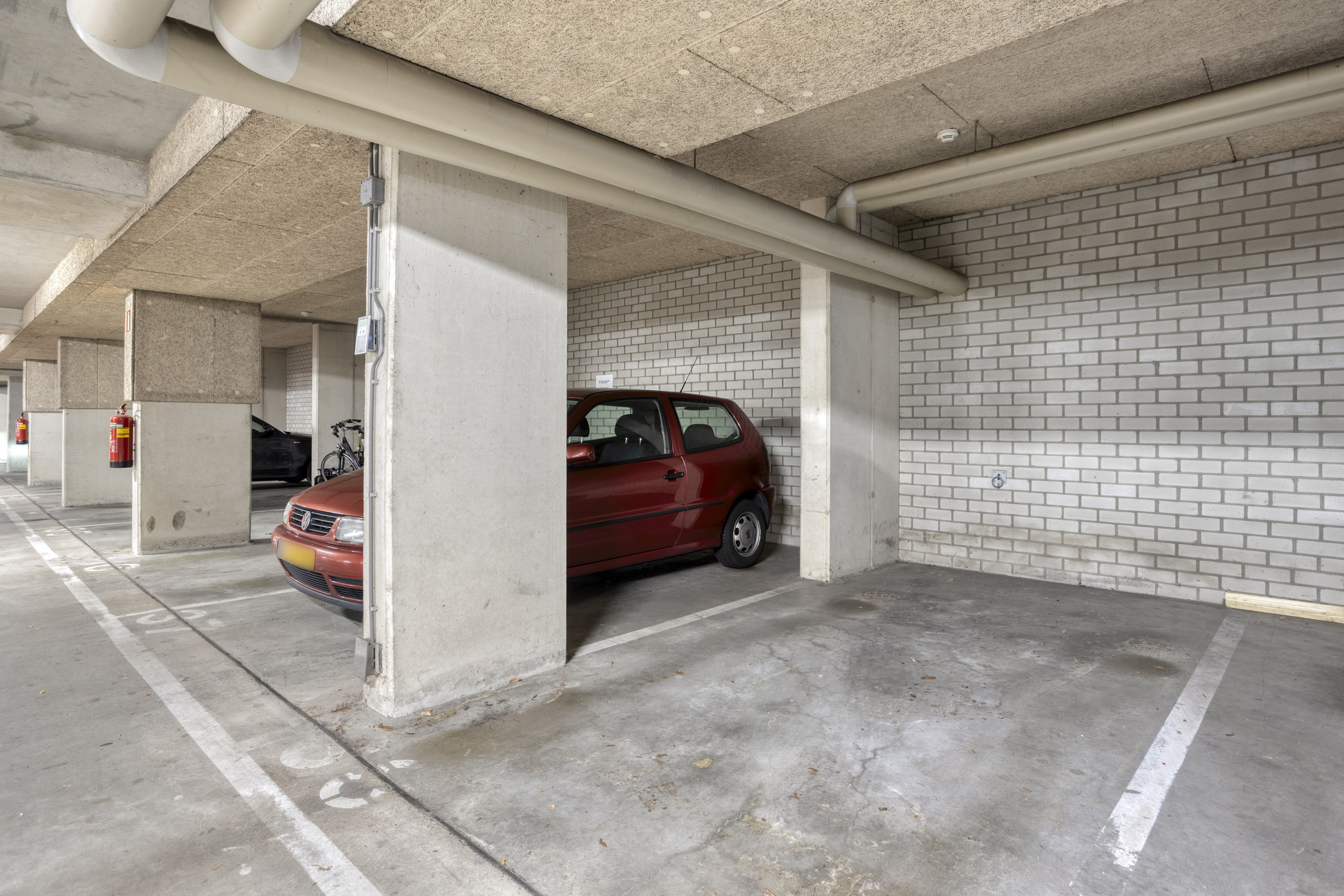 Via de gemeenschappelijke hal/entree is, via het trappenhuis en een lift, het bijbehorende souterrain met parkeerplaatsen en bergingen bereikbaar. Het appartement beschikt over een eigen parkeerplaats en berging in dit souterrain. Met de auto bereikt u de parkeergarage middels een hellingbaan en een op afstand bedienbare toegangspoort.