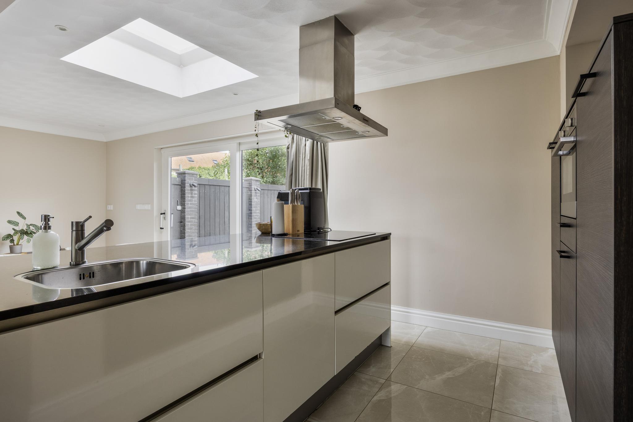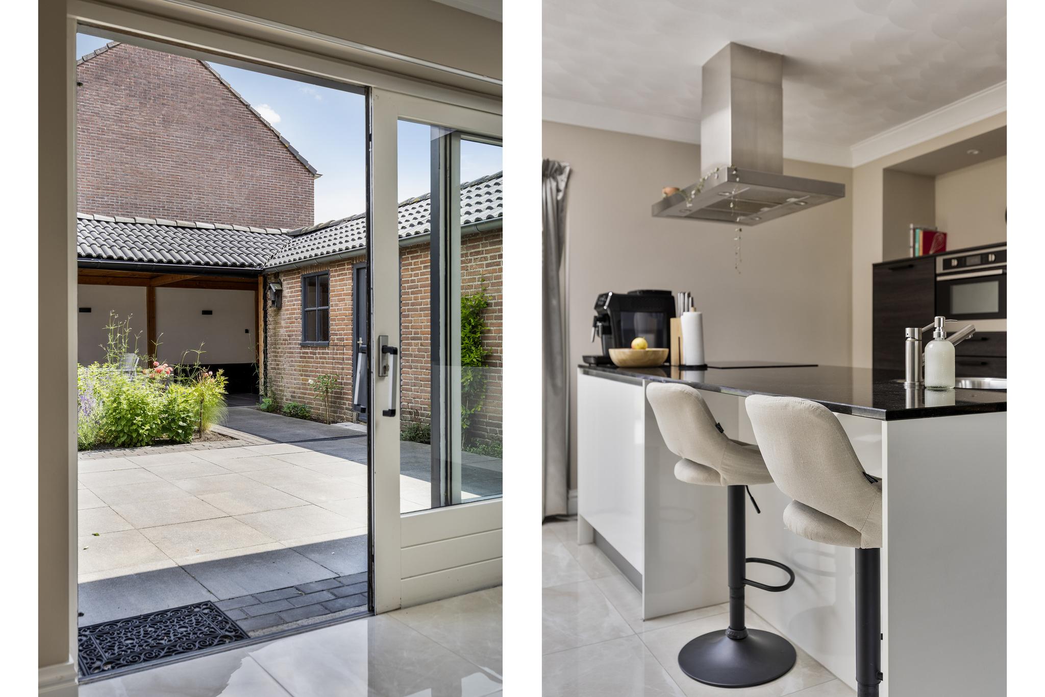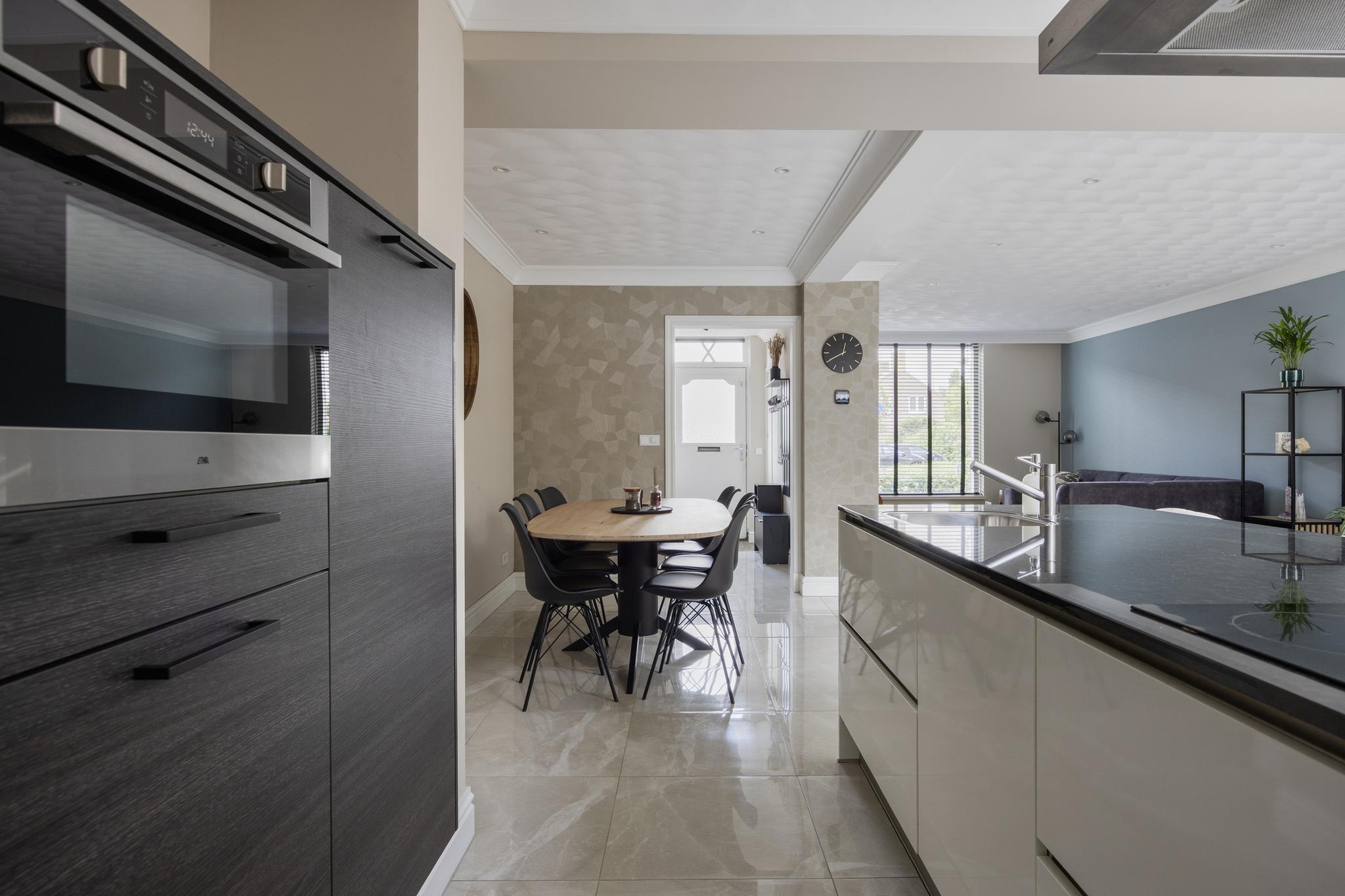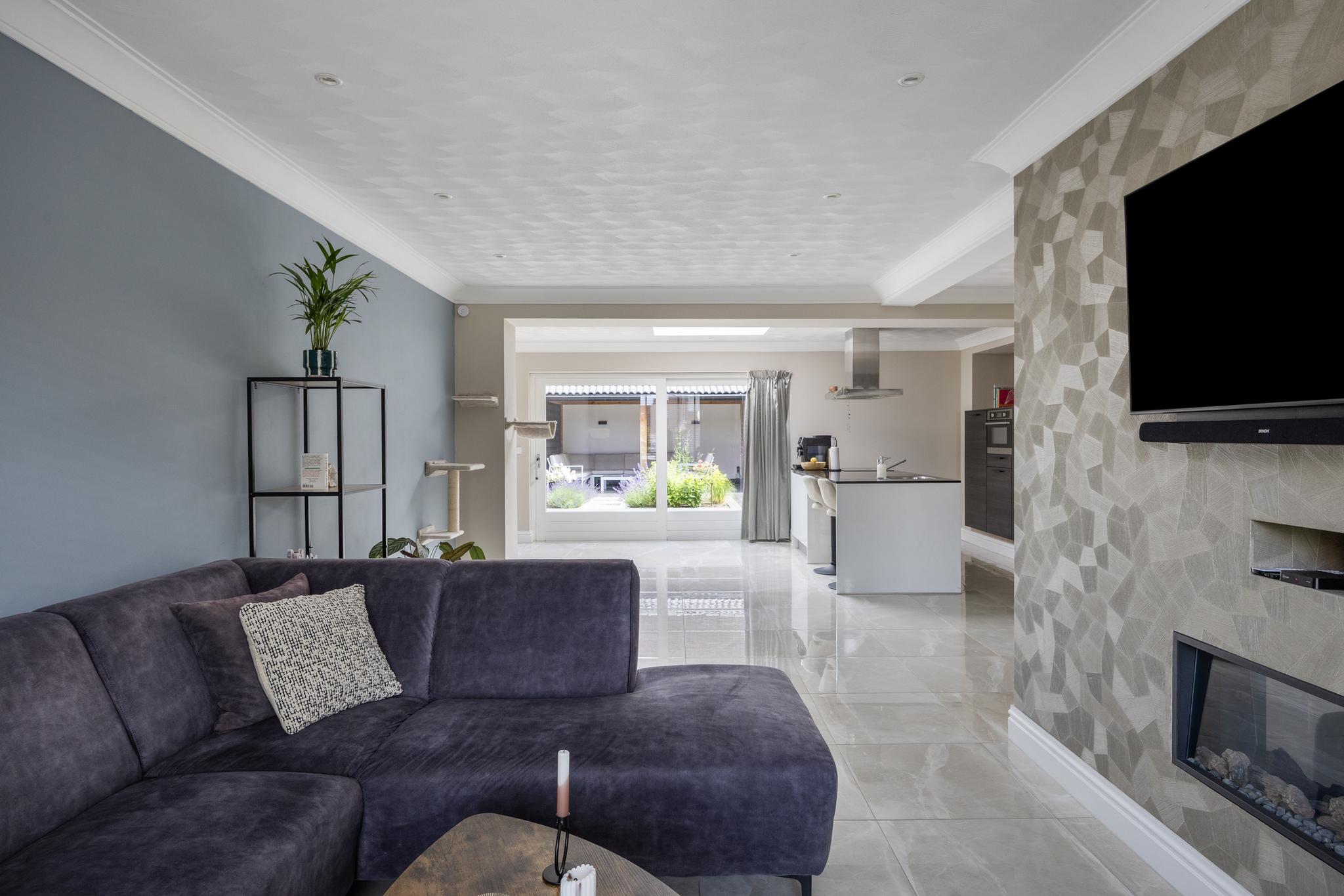 Je komt thuis en rijdt moeiteloos de oprit op waar ruimte genoeg is voor meerdere auto's. Vervolgens stap je binnen via de nette entreehal. Hier tref je direct de meterkast, het toilet, de trap naar de eerste verdieping, een handige trapkast en de toegang tot de living area. Zodra je de living binnenloopt valt je oog meteen op de moderne keuken met royaal kookeiland. Dankzij de lichtstraat boven de keuken baadt deze ruimte in natuurlijk daglicht, een heerlijke plek om te koken en samen te komen. De keuken is volledig uitgerust met een elektrische kookplaat, afzuigkap, combi-oven, koelkast en vaatwasser. Het kookeiland biedt bovendien plek voor een paar barkrukken, zodat je hier niet alleen kookt maar ook borrelt of ontbijt. Naast de keuken is er volop ruimte voor een eettafel en via de brede schuifpui stap je zo de tuin in en haal je buiten naar binnen. Daarnaast is er nog een extra deur naar buiten aan de zijkant van de woning. Loop je verder de hoek om dan wacht daar alle ruimte om een gezellige zithoek te creëren. De grote raampartijen zorgen voor een prettige hoeveelheid lichtinval en de elektrische haard zorgt voor warmte en gezelligheid, ideaal voor knusse avonden. De gehele begane grond is strak afgewerkt en voorzien van vloerverwarming, wat bijdraagt aan het woongenot van deze woning.