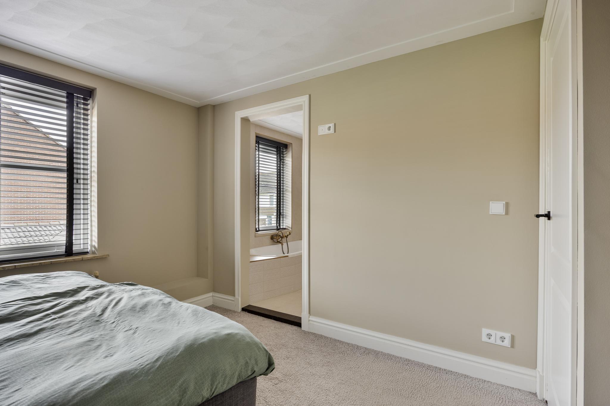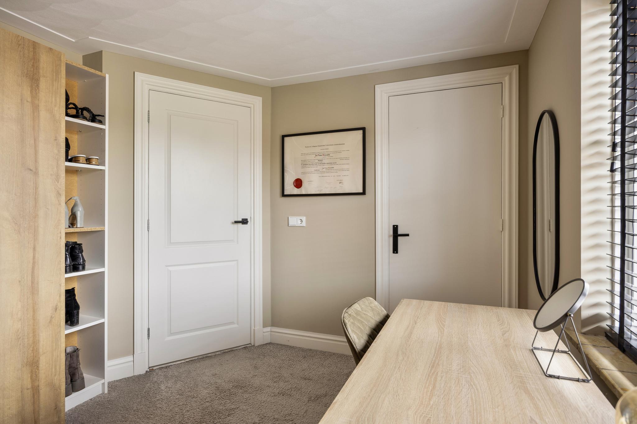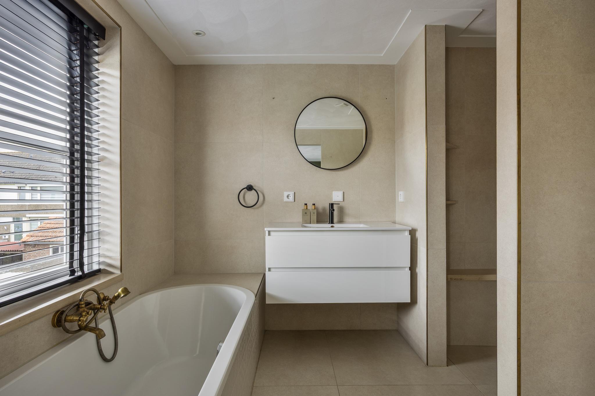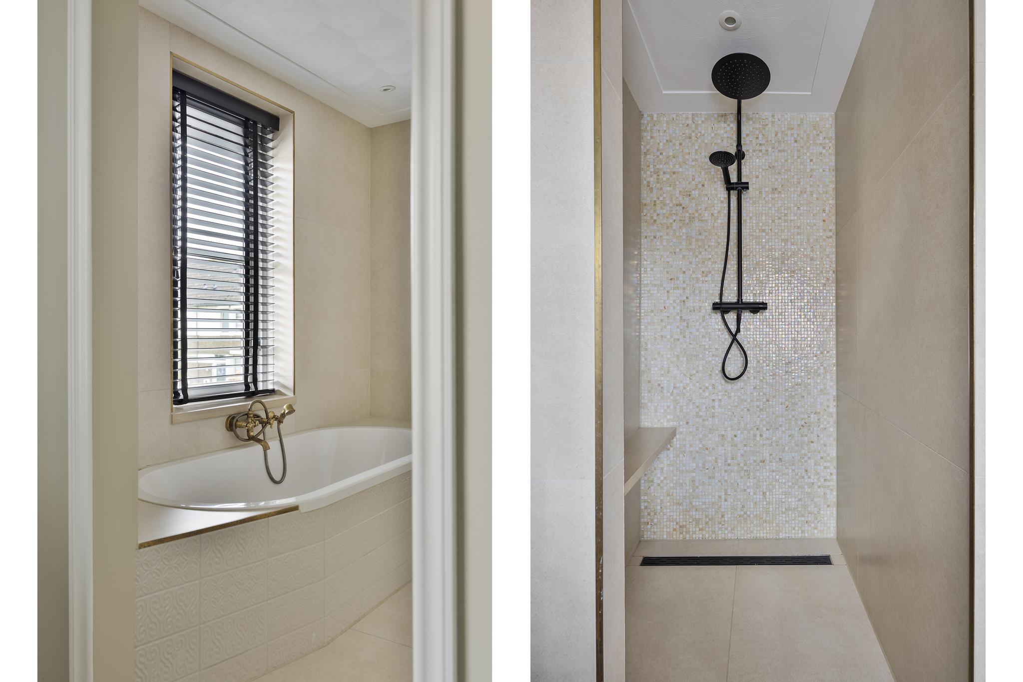 Via de trap in de hal bereik je de eerste verdieping waar je uitkomt op een overzichtelijke overloop. Vanuit de overloop heb je toegang tot twee royale slaapkamers, een moderne badkamer en een praktische berging met aansluitingen voor wasmachine en wasdroger, goed weggewerkt maar altijd binnen handbereik. beide slaapkamers zijn opvallend ruim en slim ingedeeld met ingebouwde kasten die zorgen voor een strakke en opgeruimde uitstraling. Hier heb je alle vrijheid om het naar eigen wens in te richten. De badkamer is modern en stijlvol afgewerkt met vloerverwarming voor dat extra beetje comfort. Je vindt hier een ligbad, ruime inloopdouche met regendouche en een wastafel met wastafelmeubel.