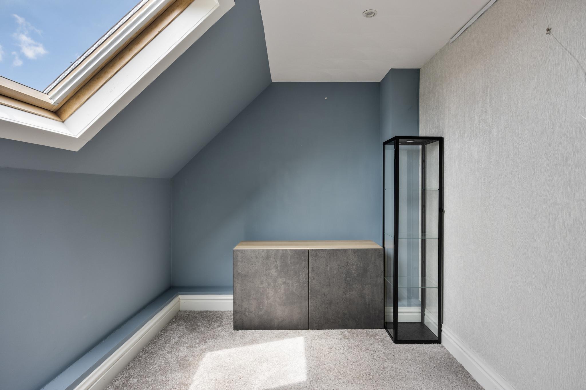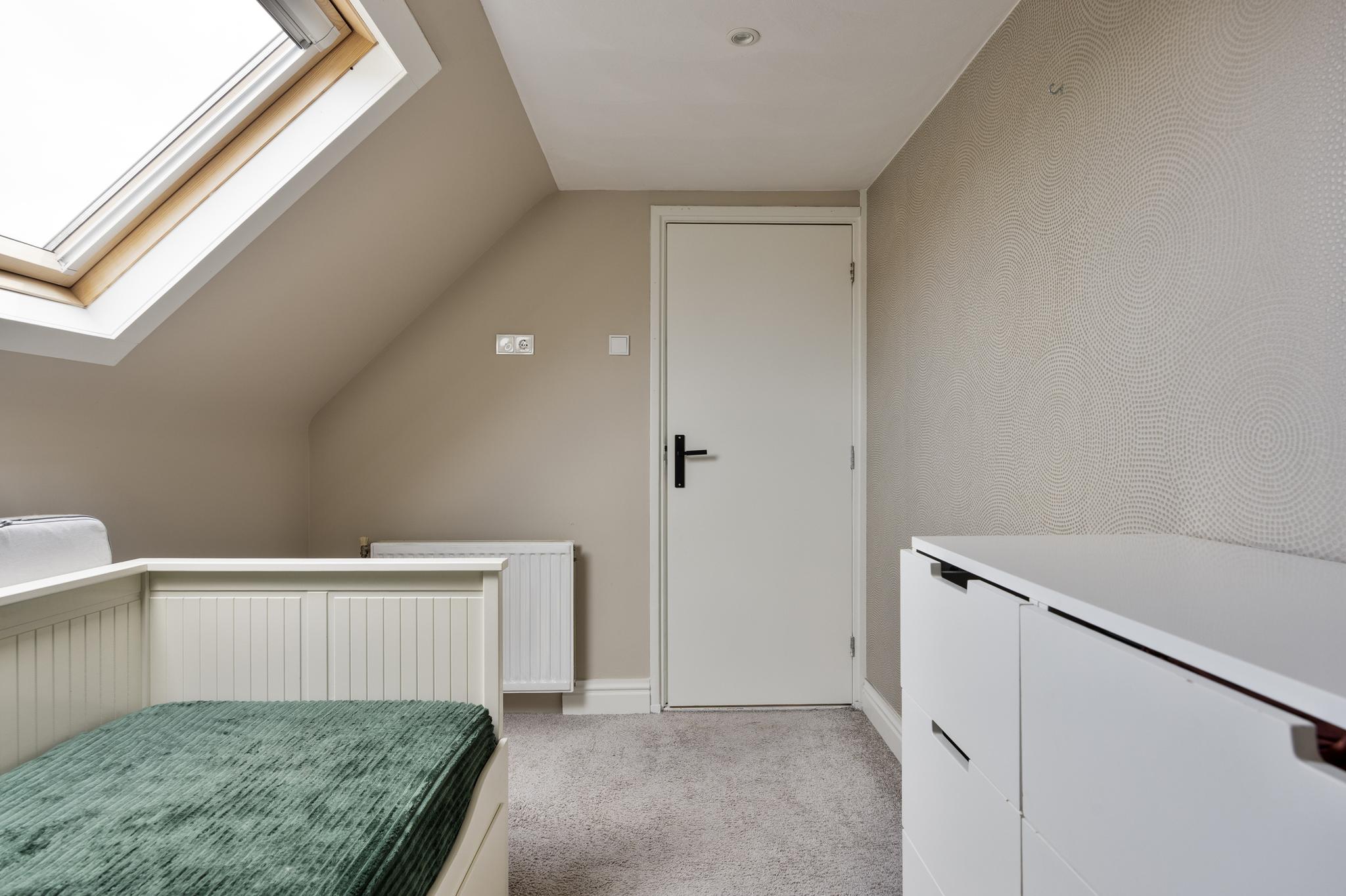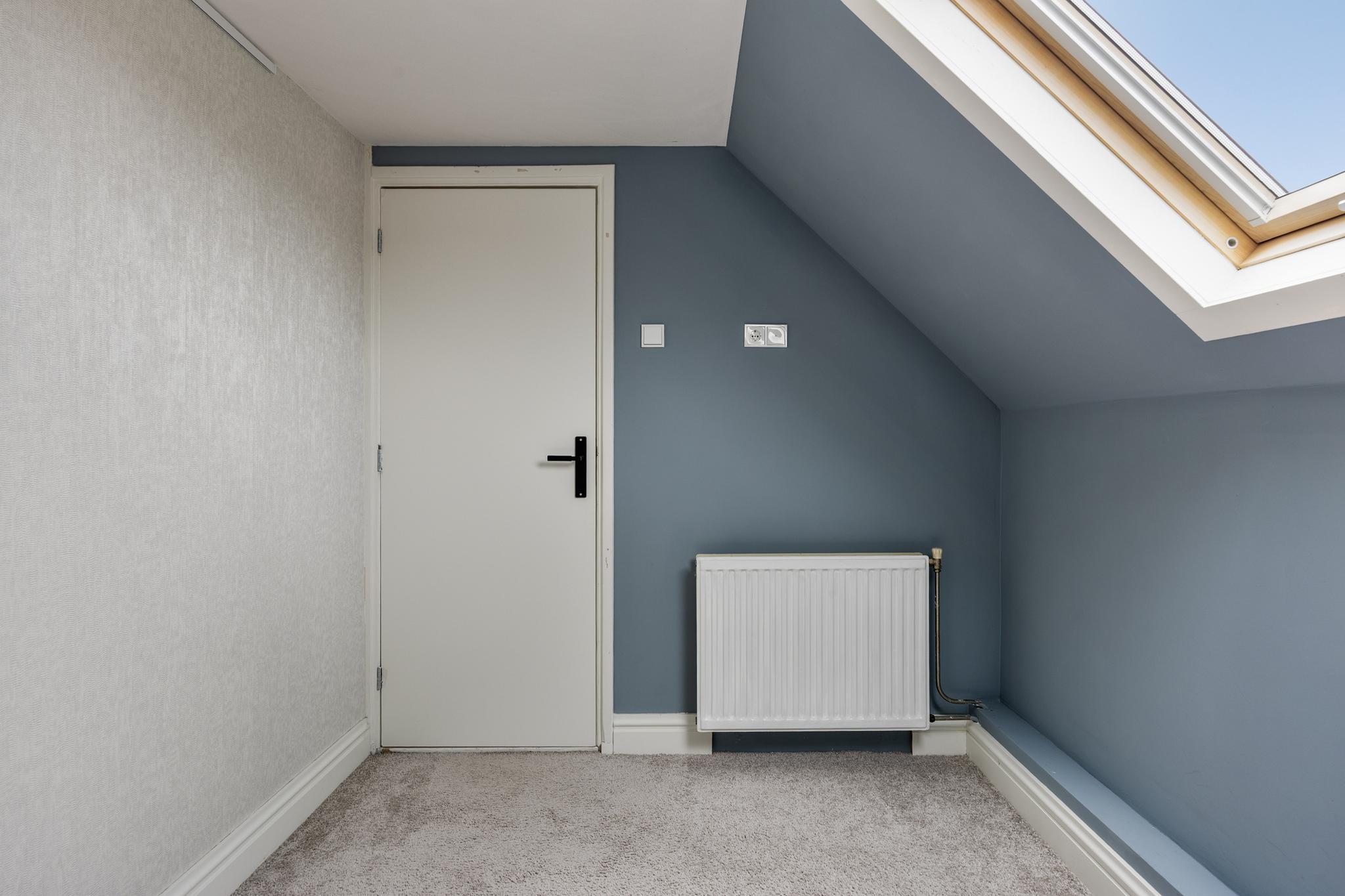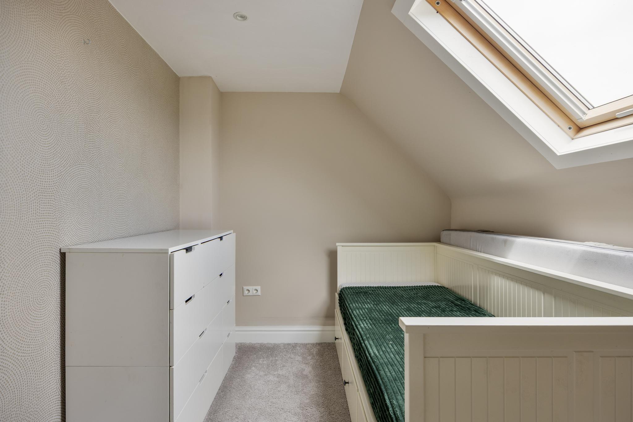 De tweede verdieping bereik je via een vaste trap die je brengt naar de overloop. Vanaf de overloop heb je toegang tot twee slaapkamers en twee ingebouwde kasten, perfect voor het opbergen van spullen die je niet dagelijks nodig hebt. Beide slaapkamers zijn voorzien van een dakraam dat zorgt voor natuurlijk licht en een prettige sfeer. Deze kamers zijn ideaal als kinderkamer, logeerkamer, rustige thuiswerkplek of creatieve hobbyruimte. De mogelijkheden zijn eindeloos.