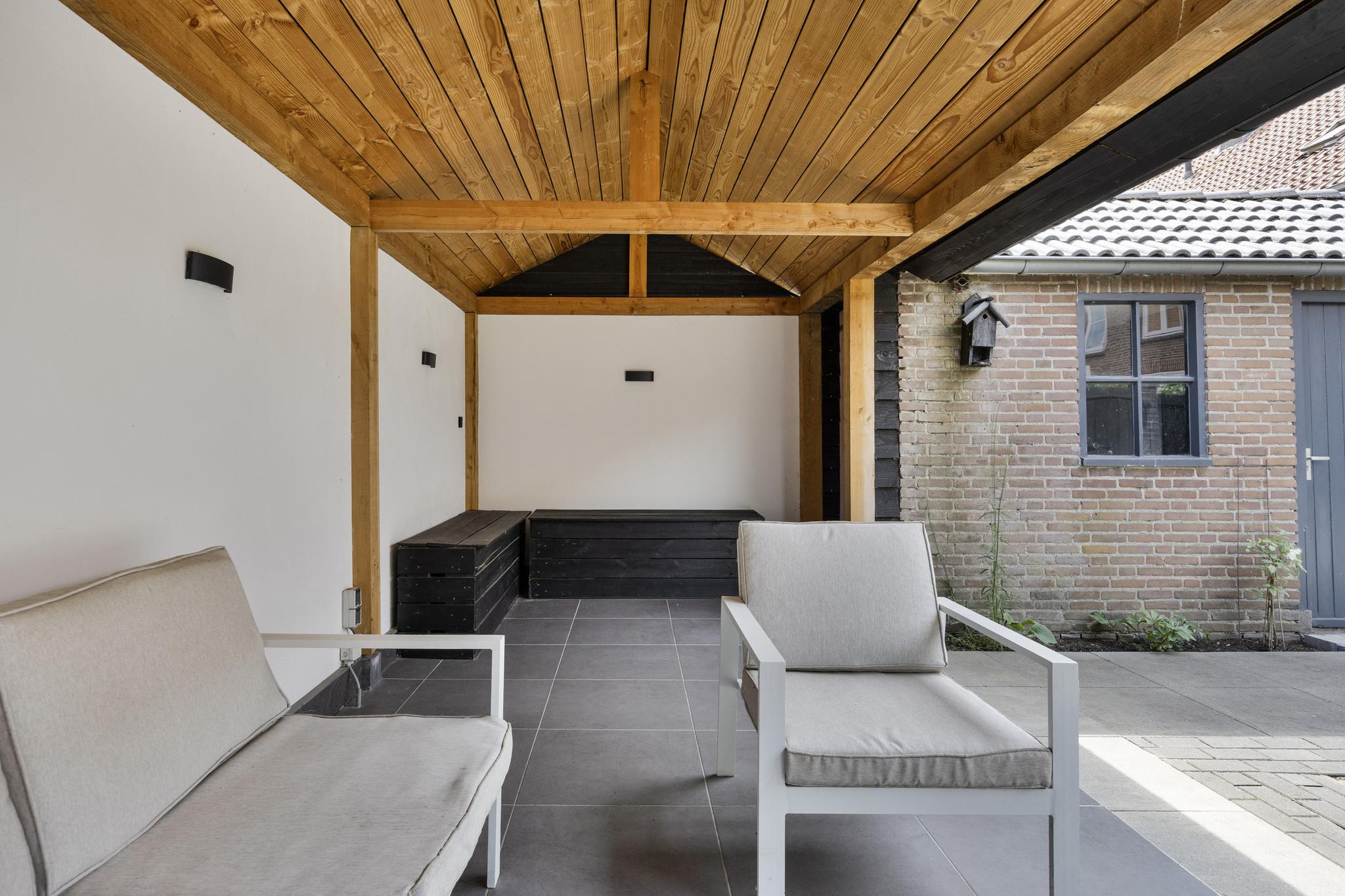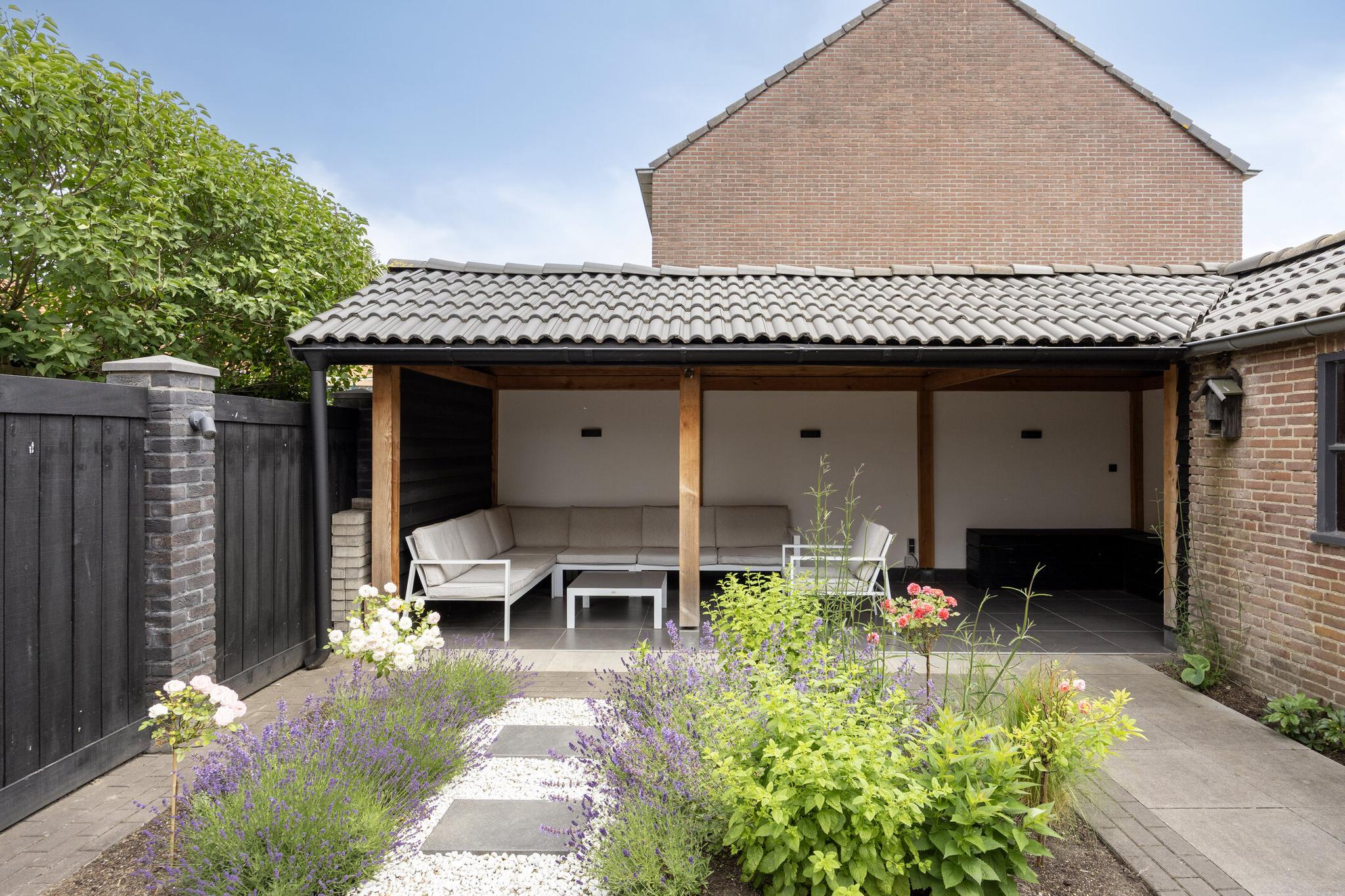 Stap via de schuifpui zo de achtertuin in, een fijne en onderhoudsvriendelijke buitenruimte waar je het gehele jaar door van kunt genieten. De tuin is gelegen op het noordoosten wat betekent dat je 's ochtends al heerlijk in het zonnetje zit. In de tuin staat een bijgebouw met een brede overkapping die zich uitstrekt over de volledige breedte van de tuin. Zelfs als het weer even niet meewerkt zit je hier comfortabel en droog. Het bijgebouw is ruim en beschikt over een eigen toilet wat het geschikt maakt voor allerlei doeleinden. Of je nu droomt van een thuiskantoor, een plek voor de kinderen of een hobbyruimte, deze ruimte past zich moeiteloos aan jouw wensen aan.