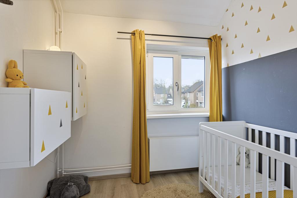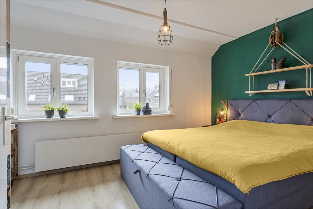 Vanuit de overloop is er toegang tot de drie slaapkamers, de vernieuwde badkamer en de trapopgang naar de tweede verdieping. Twee slaapkamers zijn gelegen aan de achterzijde van de woning en een slaapkamer ligt aan de voorzijde van de woning. Alle kamers zijn verder voorzien van nieuwe kunststof kozijnen met horren, HR++ glas en rolluiken. De luxe badkamer met ligbad, hangtoilet, designradiator en dubbel wastafelmeubel met twee praktische lades.
