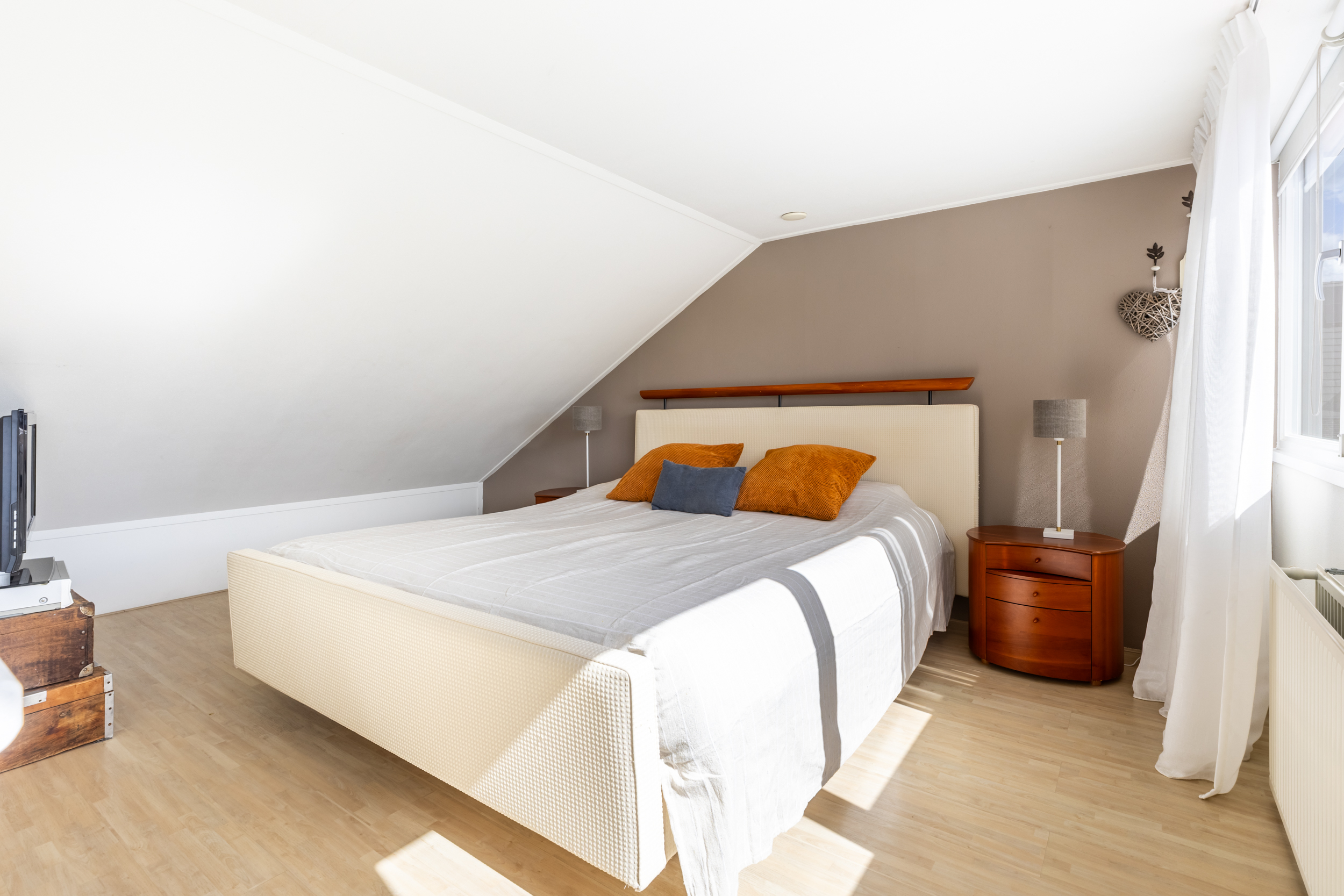 De kamer is afgewerkt met een laminaatvloer. Daarnaast is er volop bergruimte aanwezig in de kasten en in de afgesloten berging met opstelling van de cv-installatie. Deze verdieping is veelzijdig in gebruik en kan eenvoudig dienen als extra slaapkamer, hobbyruimte of thuiskantoor.