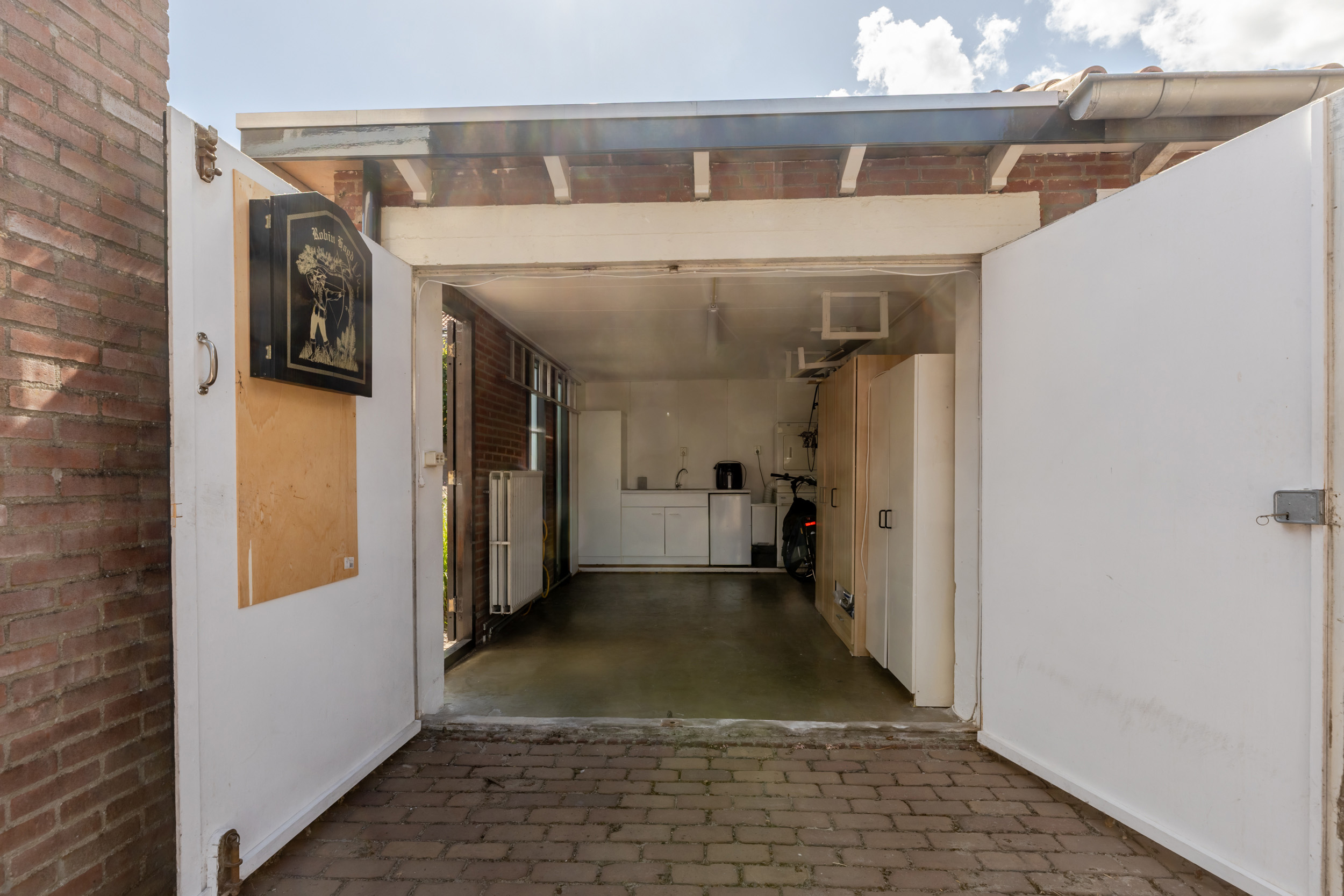 De woning beschikt over een vrijstaande garage die is voorzien van elektra, verwarming en water. Dit maakt de garage niet alleen geschikt voor het stallen van een auto of fietsen, maar ook ideaal als klus- of hobbyruimte. In deze keurige ruimte is ook de opstelling/aansluiting aanwezig van de wasmachine en de droger.