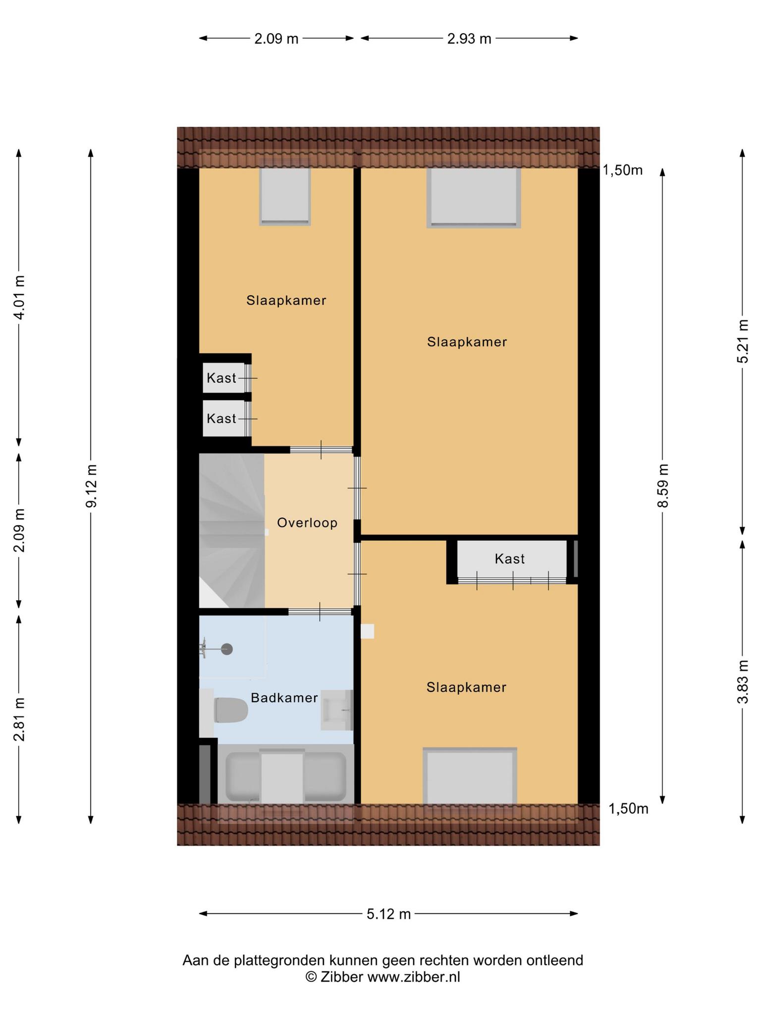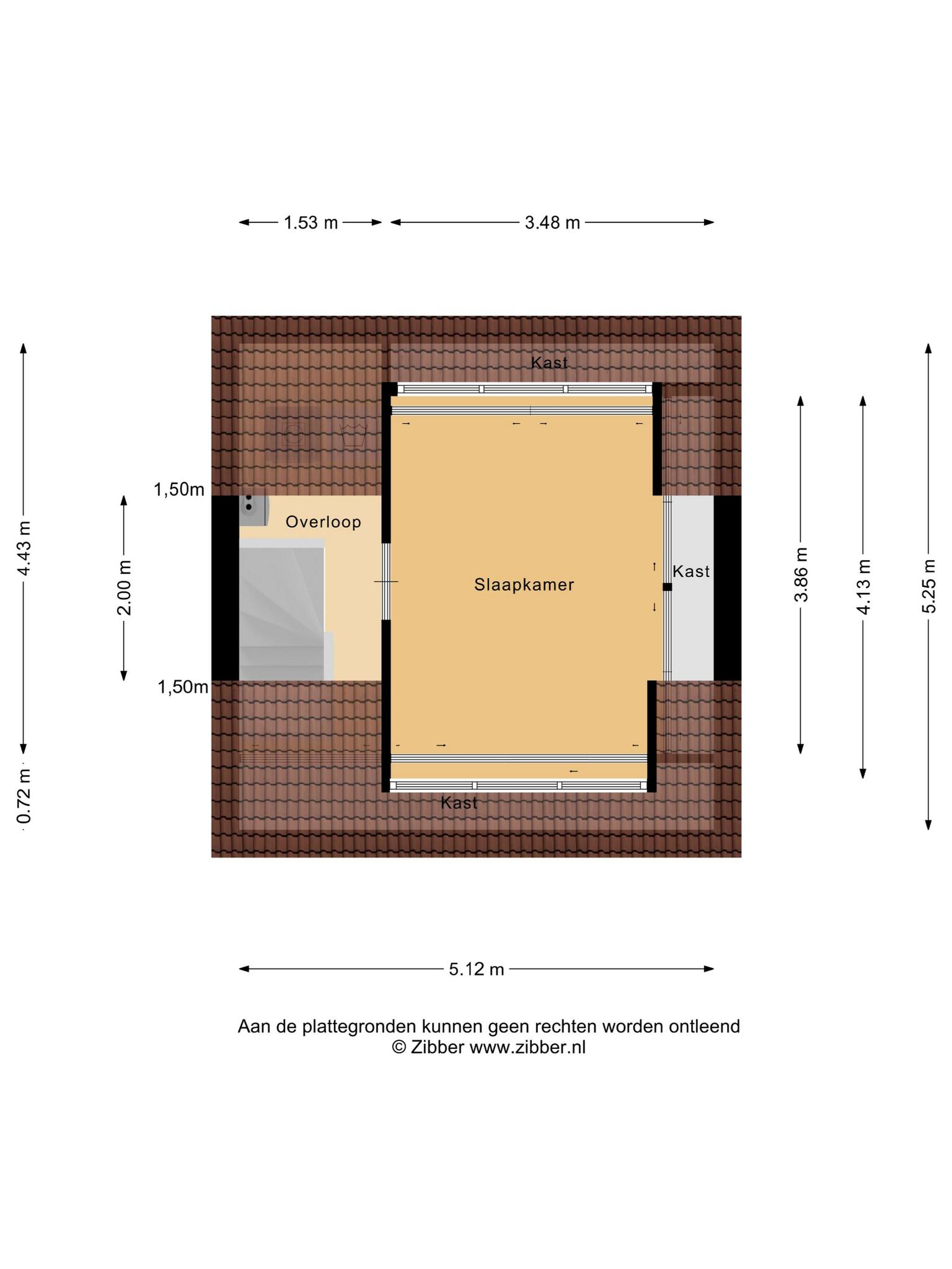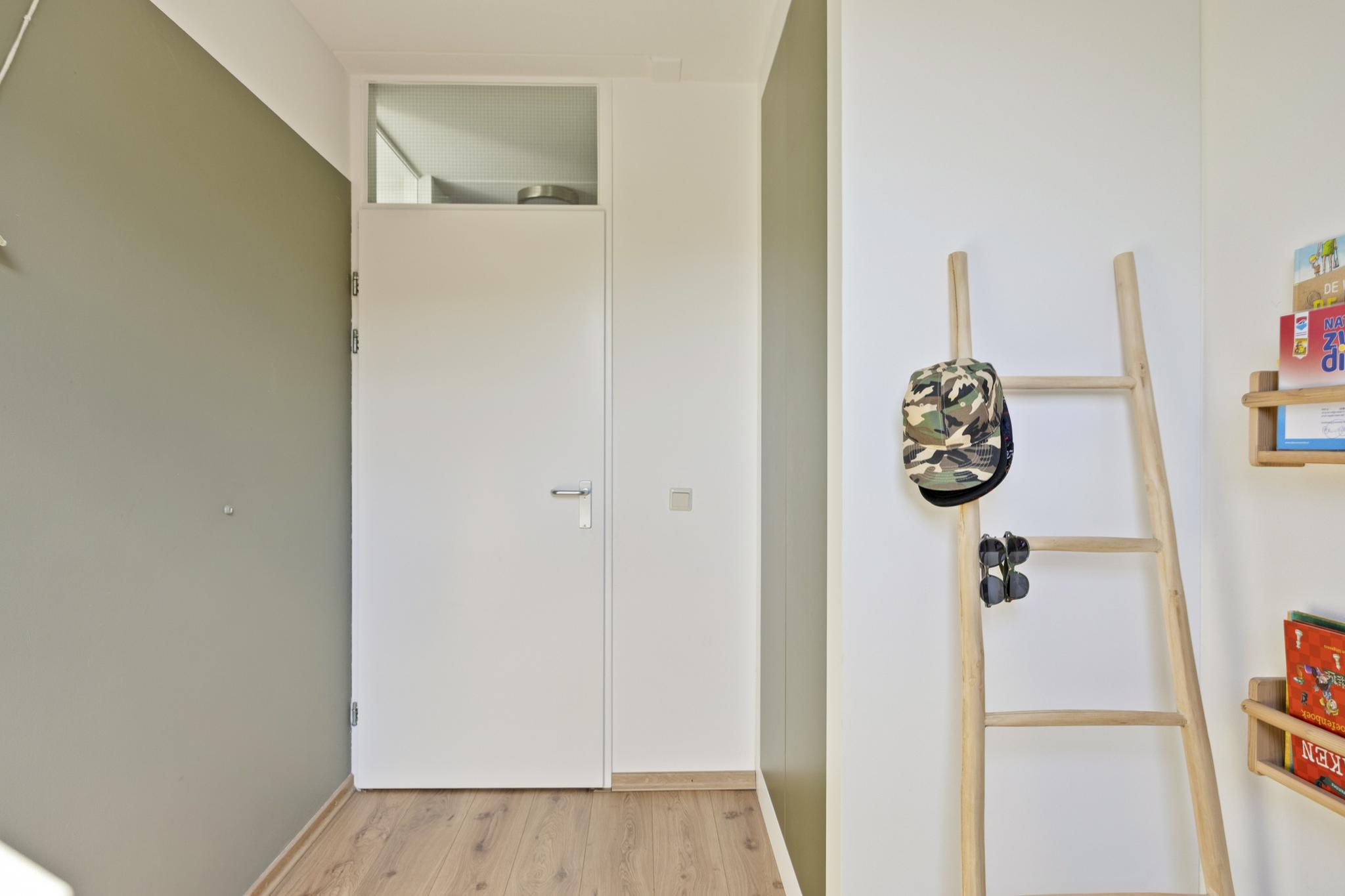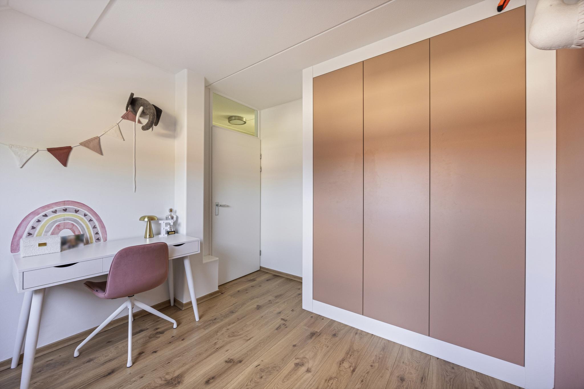 Een vaste trap brengt je naar de verrassend ruime tweede verdieping. Hier bevindt zich een grote slaapkamer, verruimd door twee brede dakkapellen die niet alleen licht en ruimte creëren, maar ook zijn uitgerust met rolluiken. De kamer biedt voldoende plek voor een tweepersoonsbed én extra kastruimte dankzij de inbouwkast. Op de overloop vind je daarnaast de cv-ketel uit 2019 en de aansluitingen voor de wasmachine en droger. Deze verdieping is perfect als ouderslaapkamer, logeerkamer of tienerkamer.
