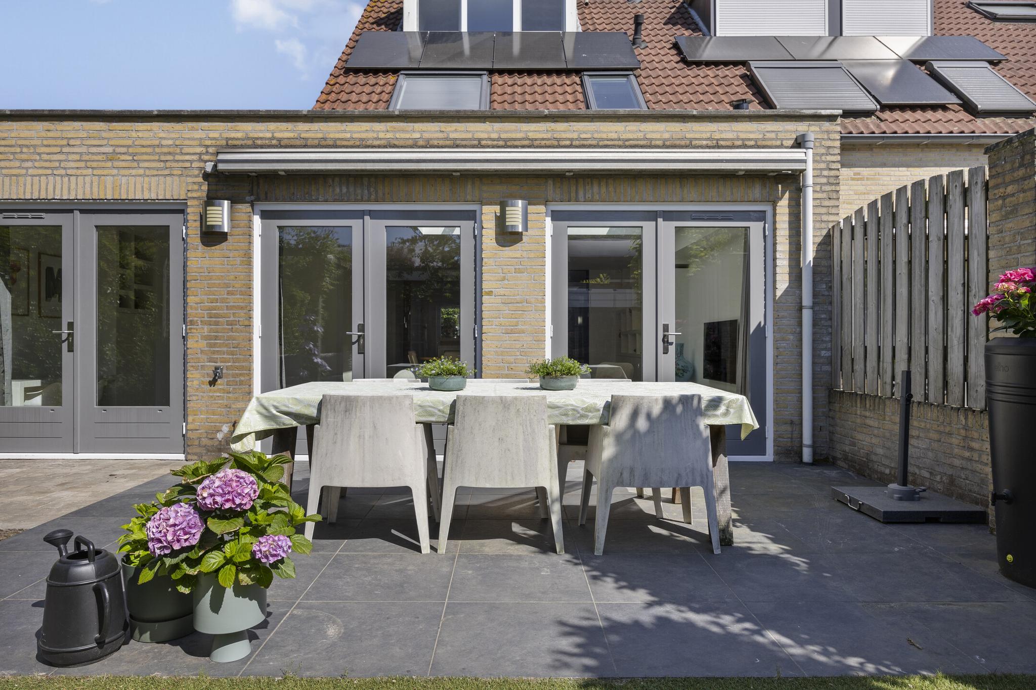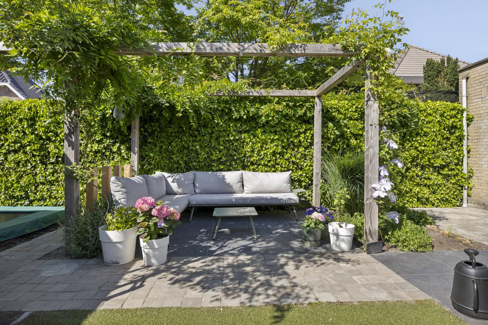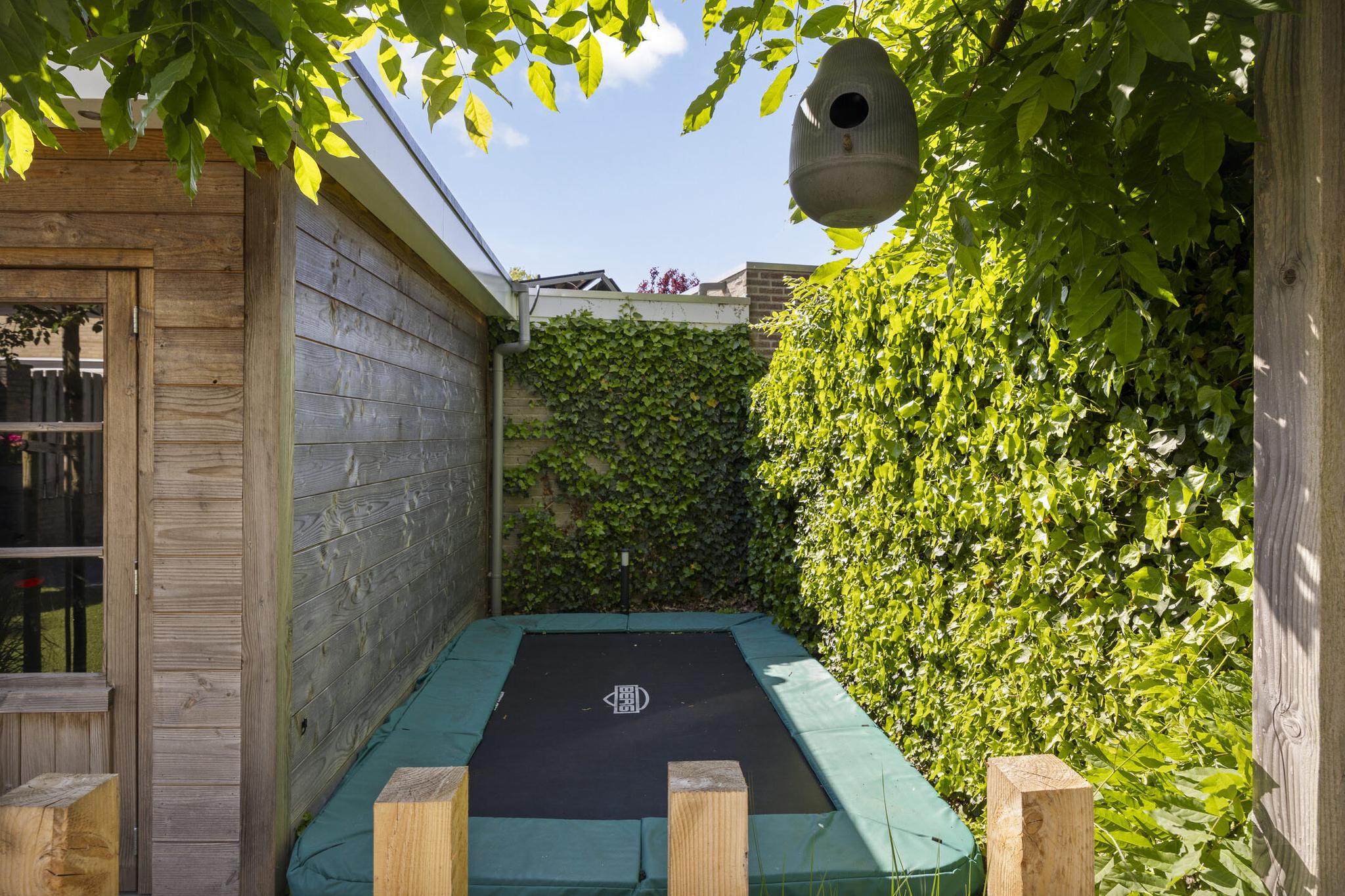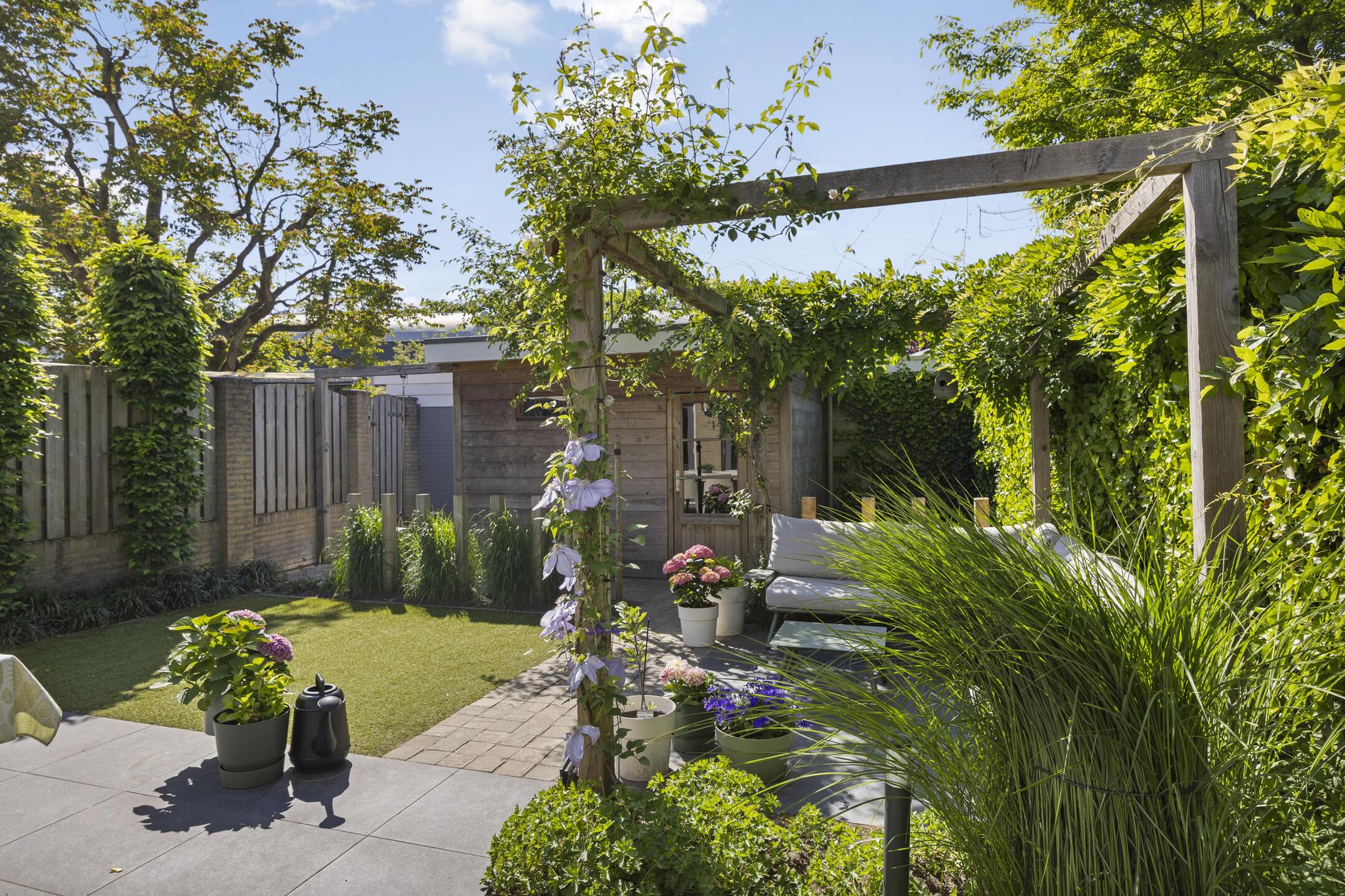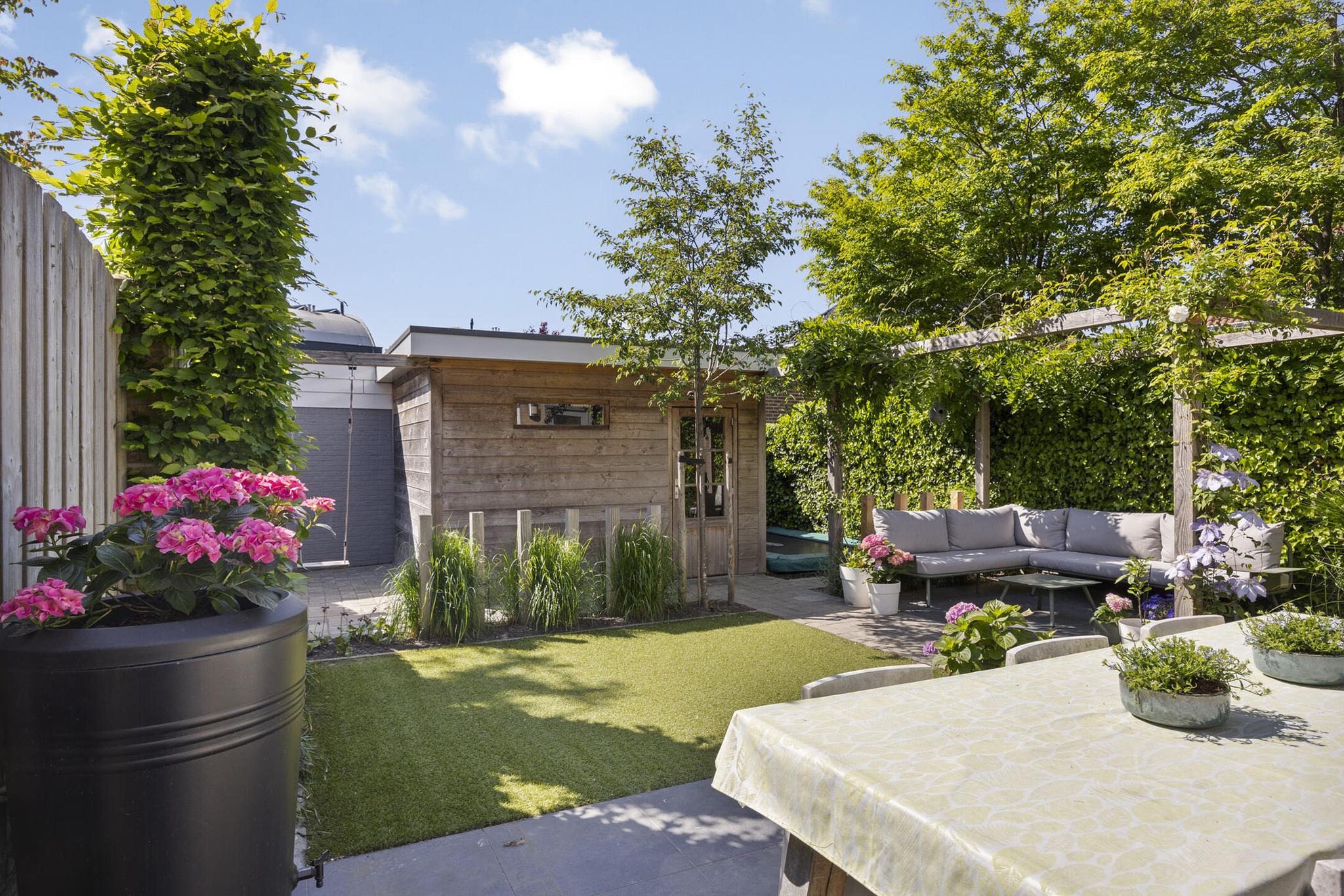 De fraai aangelegde achtertuin ligt op het westen en biedt veel privacy en zon. Er is ruimte genoeg voor meerdere zithoeken, zoals een gezellige eethoek of een comfortabele loungeset. Dankzij de achterom is de tuin ook gemakkelijk bereikbaar met de fiets. In de berging kun je al je tuingereedschap en fietsen netjes opbergen in de berging. Langs de berging is voldoende ruimte voor een schommel, trampoline of andere speeltoestellen – ideaal voor jonge kinderen. Een heerlijke tuin om lange zomerdagen door te brengen met familie en vrienden.