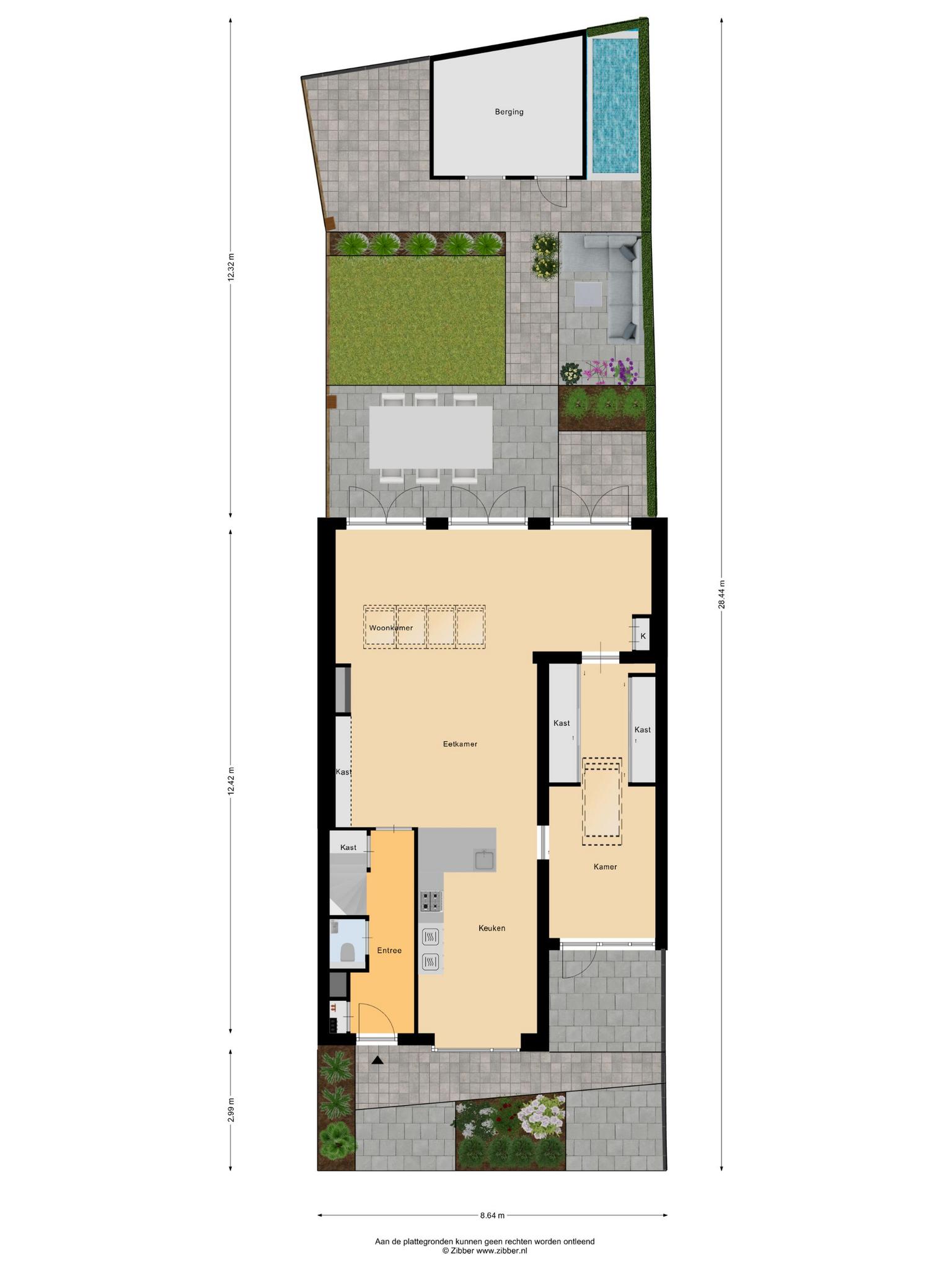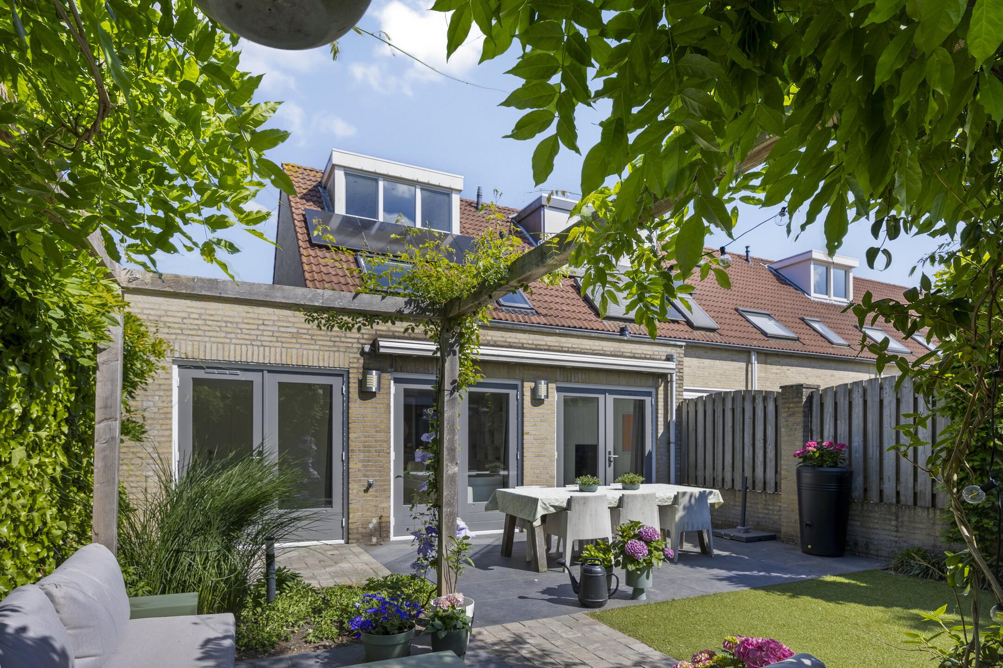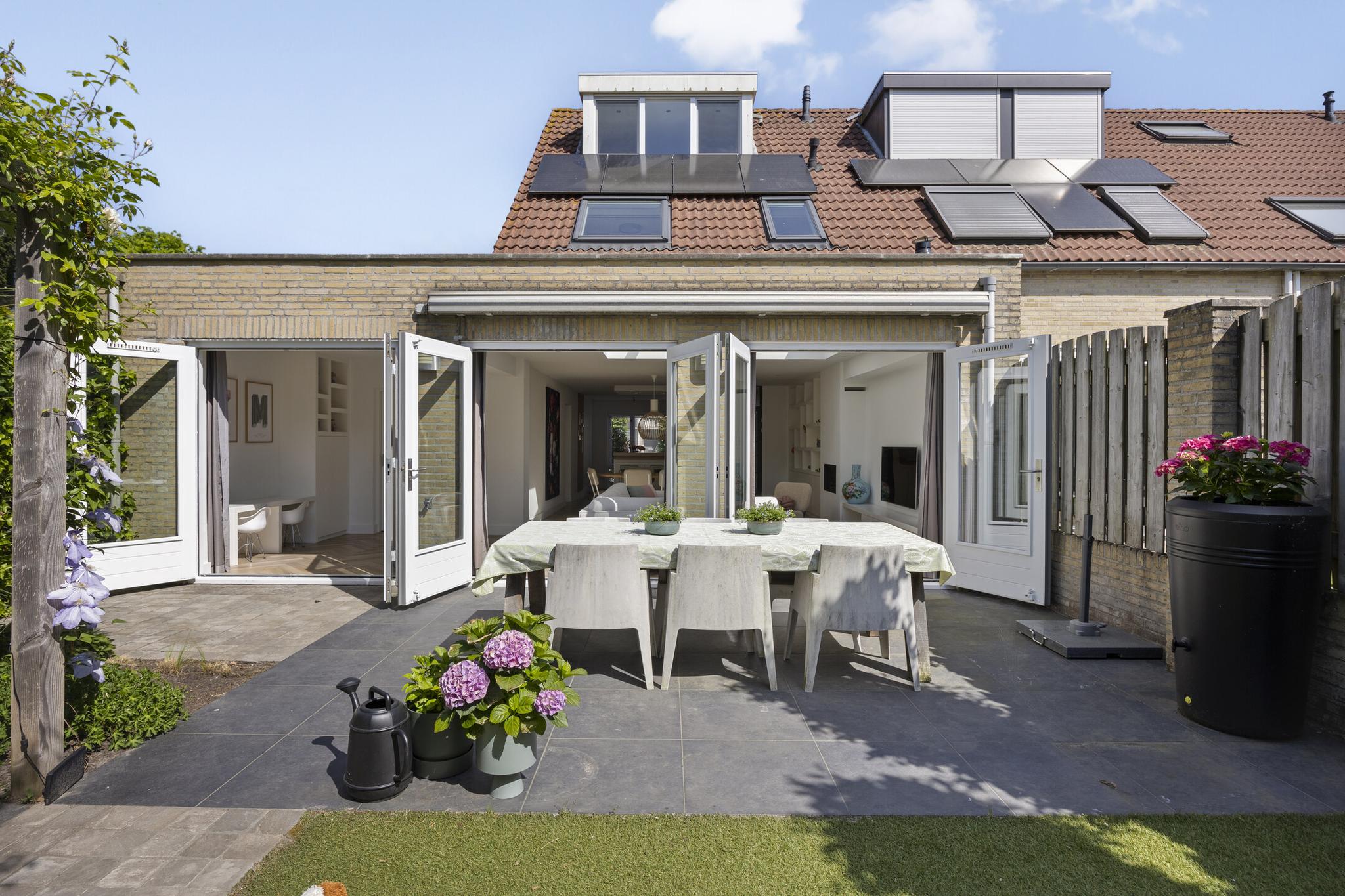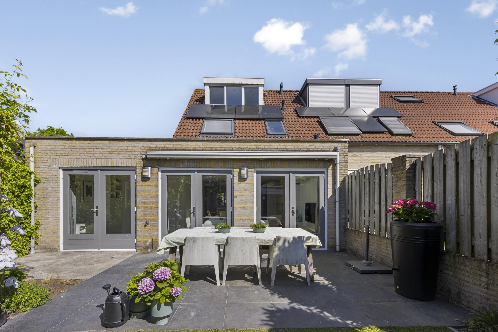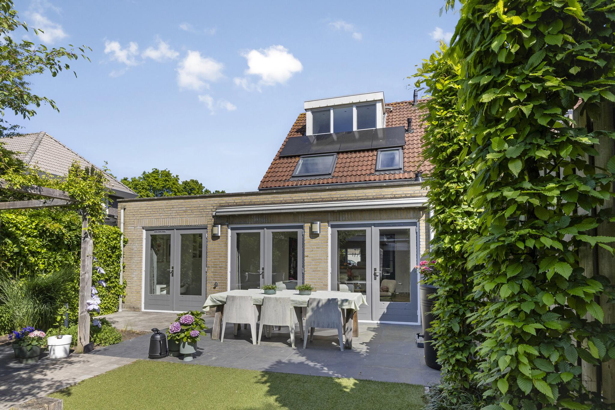 De fraai aangelegde achtertuin ligt op het westen en biedt veel privacy en zon. Er is ruimte genoeg voor meerdere zithoeken, zoals een gezellige eethoek of een comfortabele loungeset. Dankzij de achterom is de tuin ook gemakkelijk bereikbaar met de fiets. In de berging kun je al je tuingereedschap en fietsen netjes opbergen in de berging. Langs de berging is voldoende ruimte voor een schommel, trampoline of andere speeltoestellen – ideaal voor jonge kinderen. Een heerlijke tuin om lange zomerdagen door te brengen met familie en vrienden.