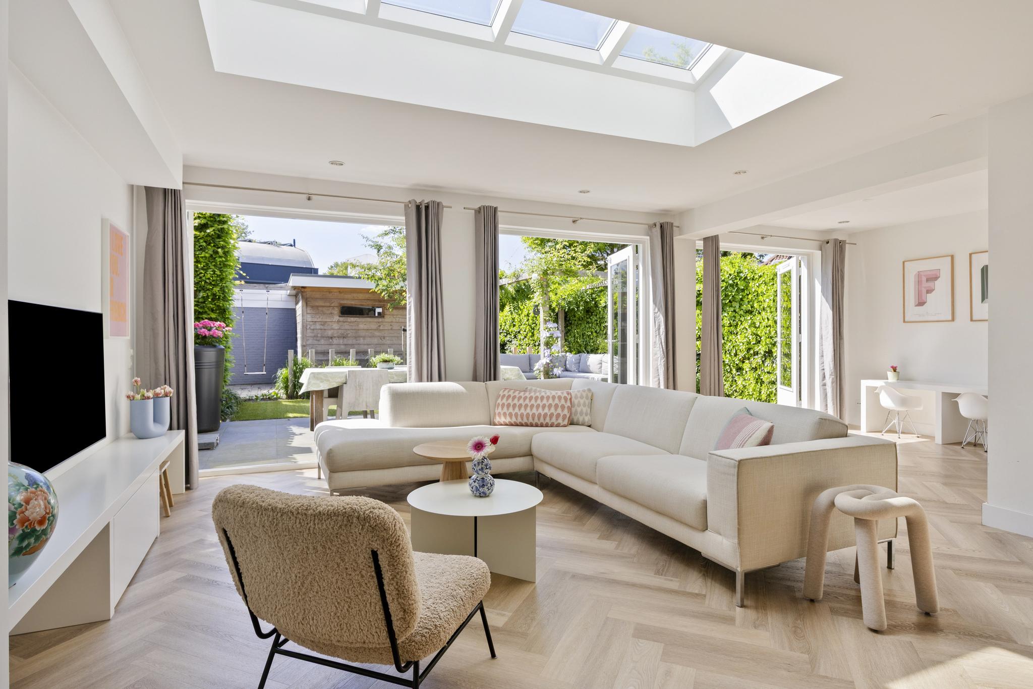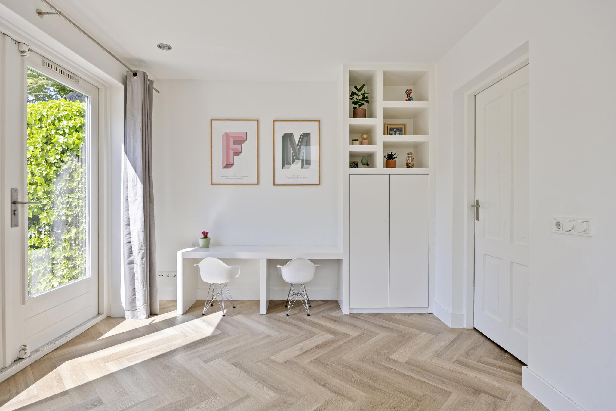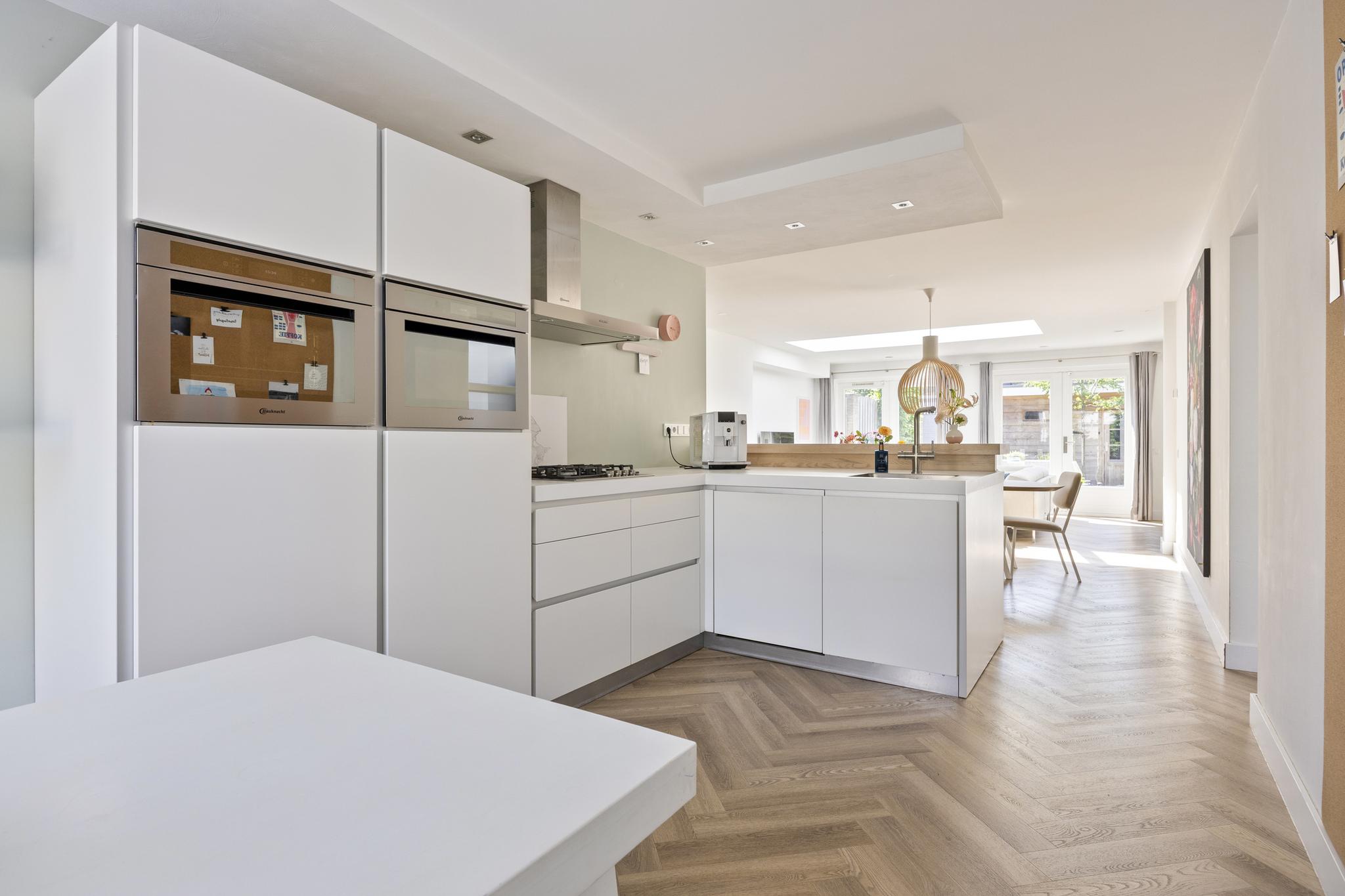 Parkeer je auto op de eigen oprit en betreed de woning via de voordeur. In de entreehal vind je het toilet, de meterkast, trap naar boven, trapkast en toegang tot de lichte woonkamer. De woonkamer is een echte eyecatcher met grote raampartijen en een stijlvolle lichtstraat in het dak. Dankzij de drie dubbele tuindeuren loopt binnen naadloos over in buiten – perfect voor zomerse dagen. De gezellige gashaard uit 2019 zorgt voor extra sfeer tijdens de koudere maanden. Aan de voorzijde van de woning vind je de moderne open keuken, compleet met oven, combimagnetron, koelkast, vaatwasser, Quooker en gaskookplaat. De keuken is ook ruim genoeg voor het plaatsen van een eettafel. Tot slot treffen we op de begane grond nog een multifunctionele ruimte, momenteel in gebruik als bijkeuken. Deze ruimte is voorzien van inbouwkasten en ruimte voor een extra koelkast en vriezer, maar kan ook dienen als slaapkamer, kantoor, praktijk of speelkamer. Deze ruimte heeft ook een eigen voordeur.