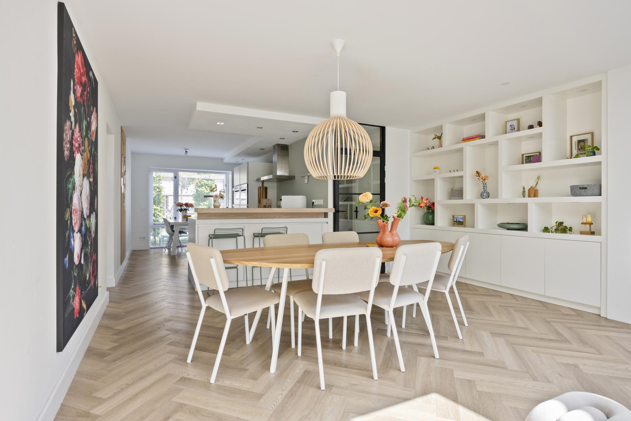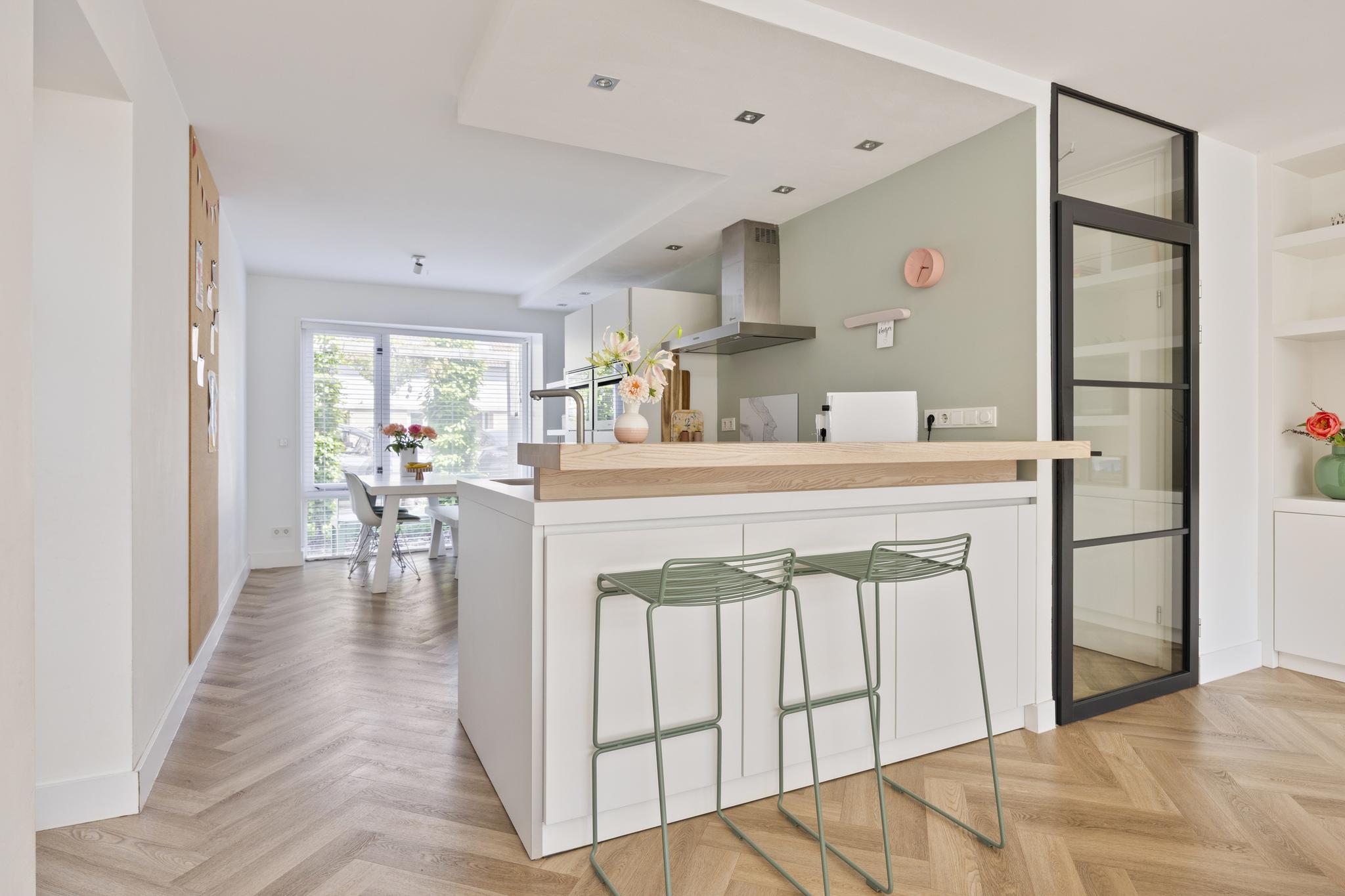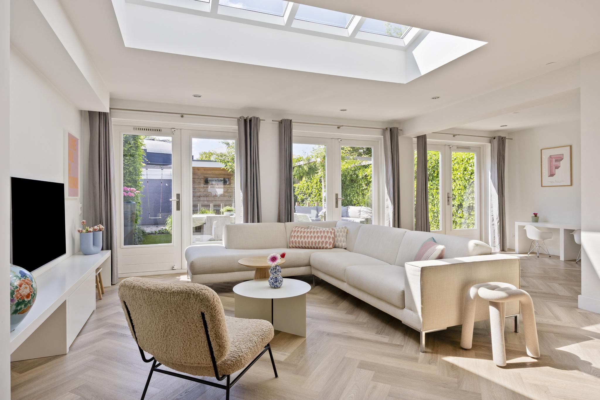 Parkeer je auto op de eigen oprit en betreed de woning via de voordeur. In de entreehal vind je het toilet, de meterkast, trap naar boven, trapkast en toegang tot de lichte woonkamer. De woonkamer is een echte eyecatcher met grote raampartijen en een stijlvolle lichtstraat in het dak. Dankzij de drie dubbele tuindeuren loopt binnen naadloos over in buiten – perfect voor zomerse dagen. De gezellige gashaard uit 2019 zorgt voor extra sfeer tijdens de koudere maanden. Aan de voorzijde van de woning vind je de moderne open keuken, compleet met oven, combimagnetron, koelkast, vaatwasser, Quooker en gaskookplaat. De keuken is ook ruim genoeg voor het plaatsen van een eettafel. Tot slot treffen we op de begane grond nog een multifunctionele ruimte, momenteel in gebruik als bijkeuken. Deze ruimte is voorzien van inbouwkasten en ruimte voor een extra koelkast en vriezer, maar kan ook dienen als slaapkamer, kantoor, praktijk of speelkamer. Deze ruimte heeft ook een eigen voordeur.