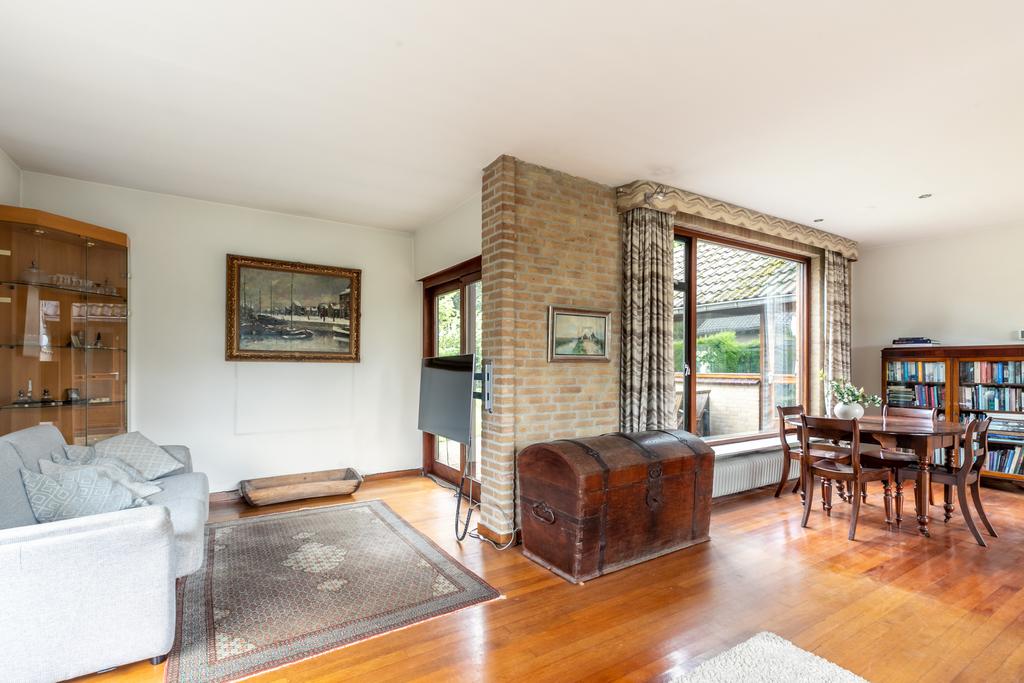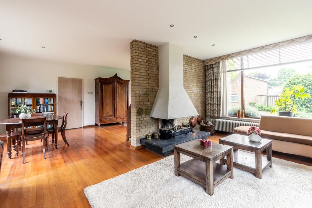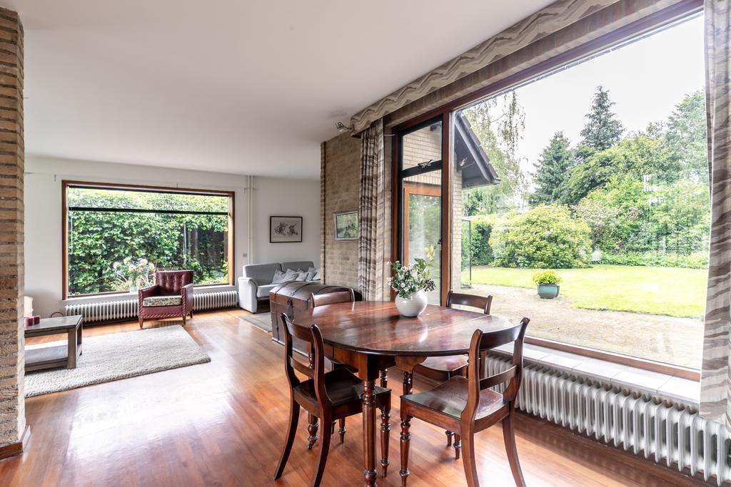 •De ruimte is nu in drie zitgedeelten ingedeeld, een tv-hoek, een zithoek en ruimte voor de eettafel met uitzicht op de prachtige tuin.