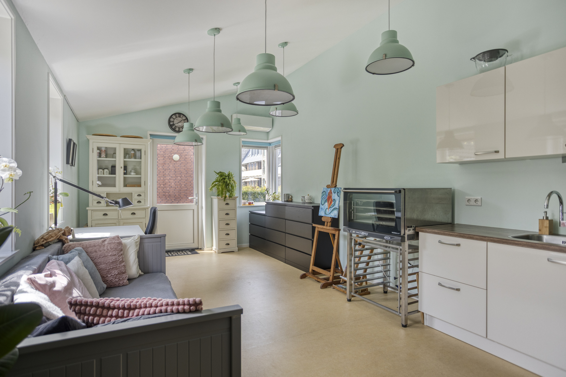 In de tuin staat een groot bijgebouw dat is voorzien van een eigen keuken en een toilet, perfect voor een thuiswonend kind, kantoor aan huis of creatieve werkruimte. Zelfs de ruimte gebruiken als mantelzorg behoort hier tot de mogelijkheden. Tevens is de ruimte voorzien van een airco die zowel kan verkoelen als verwarmen. Tot slot heeft dit gebouw een 3 fase aansluiting (krachtstroom).