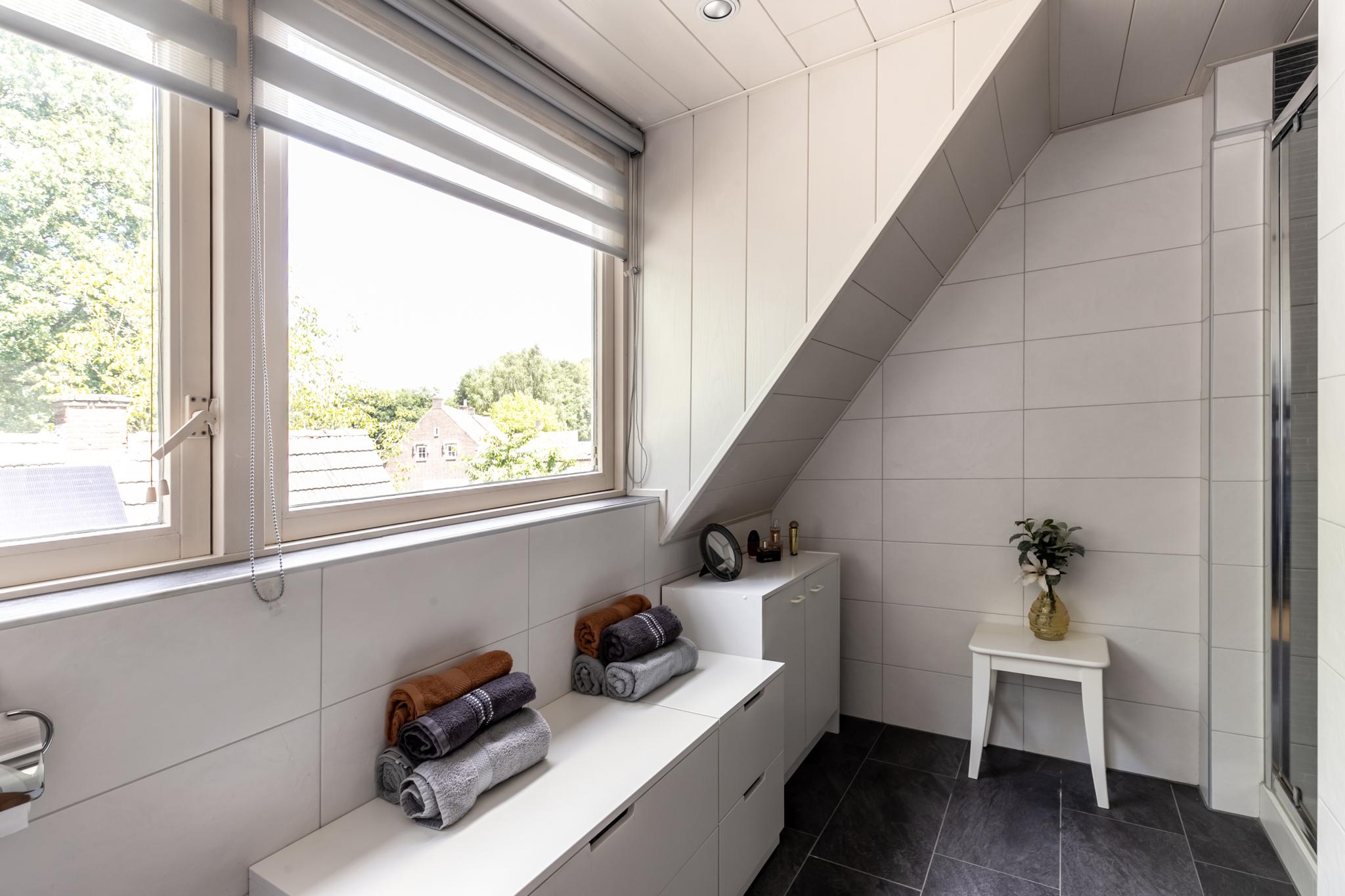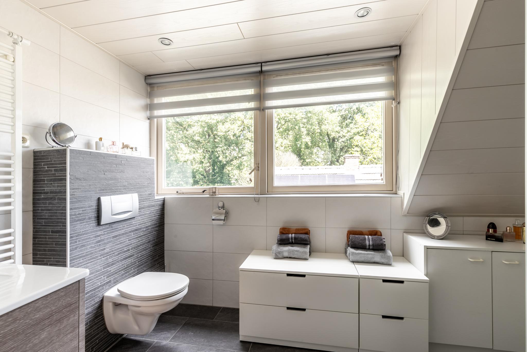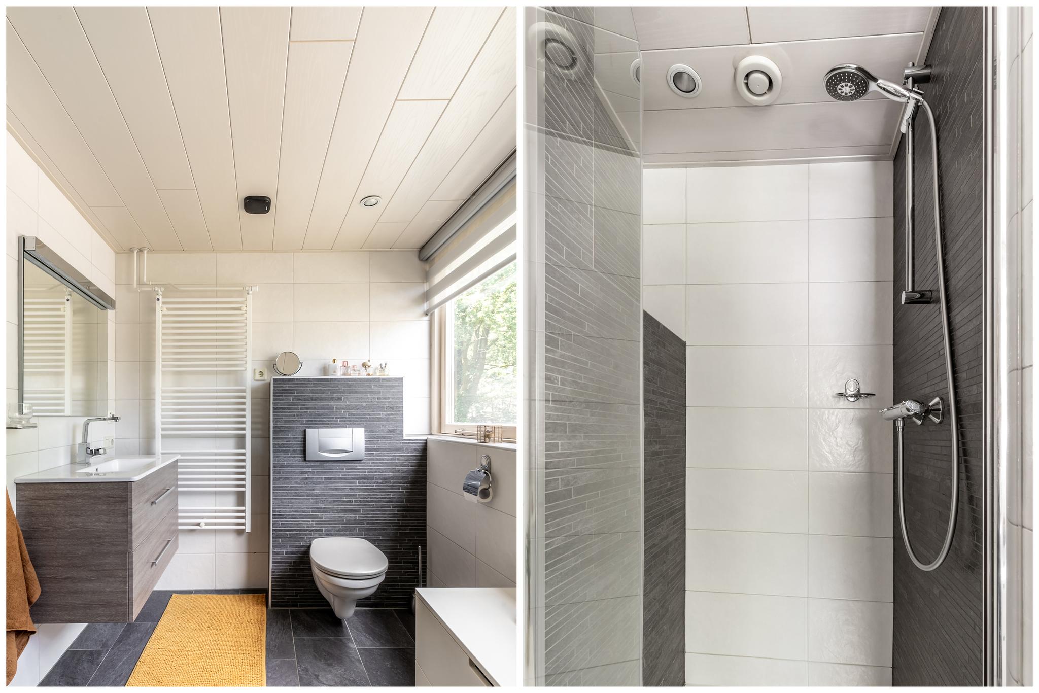 •De moderne badkamer is voorzien van een douche, een wandtoilet en een wastafelmeubel. De ruimte is ruim en licht door de brede dakkapel en heeft een elektrische vloerverwarming.